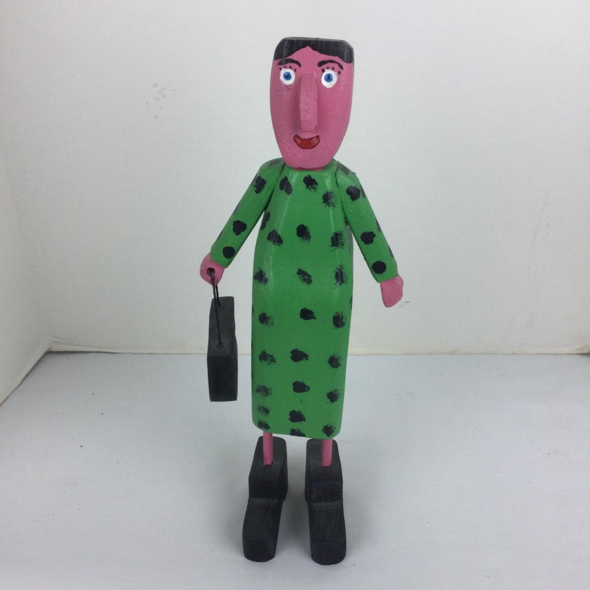 815 Folk Art Bag Lady J.M. POIRIER Woodcarver, sculpture from Quebec
