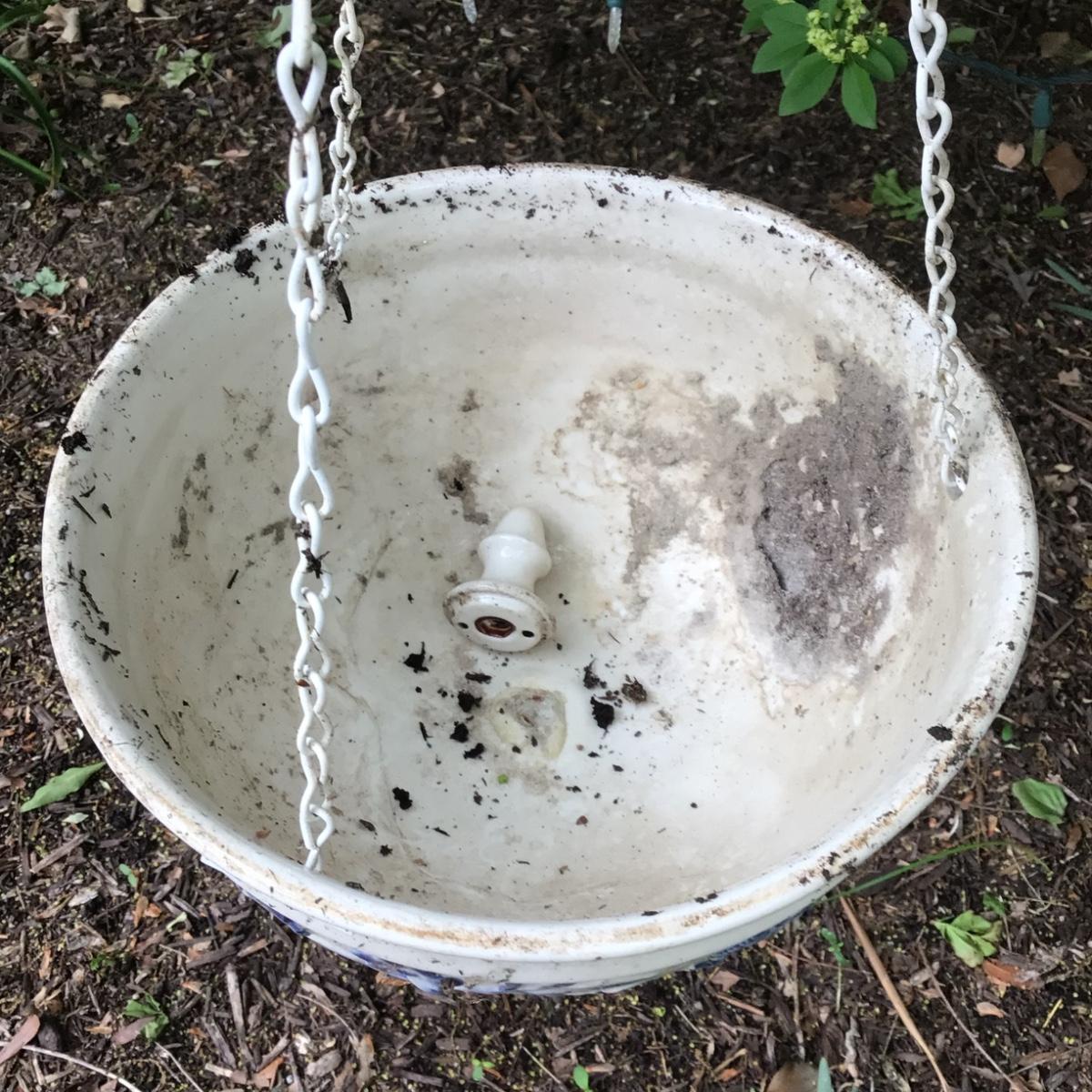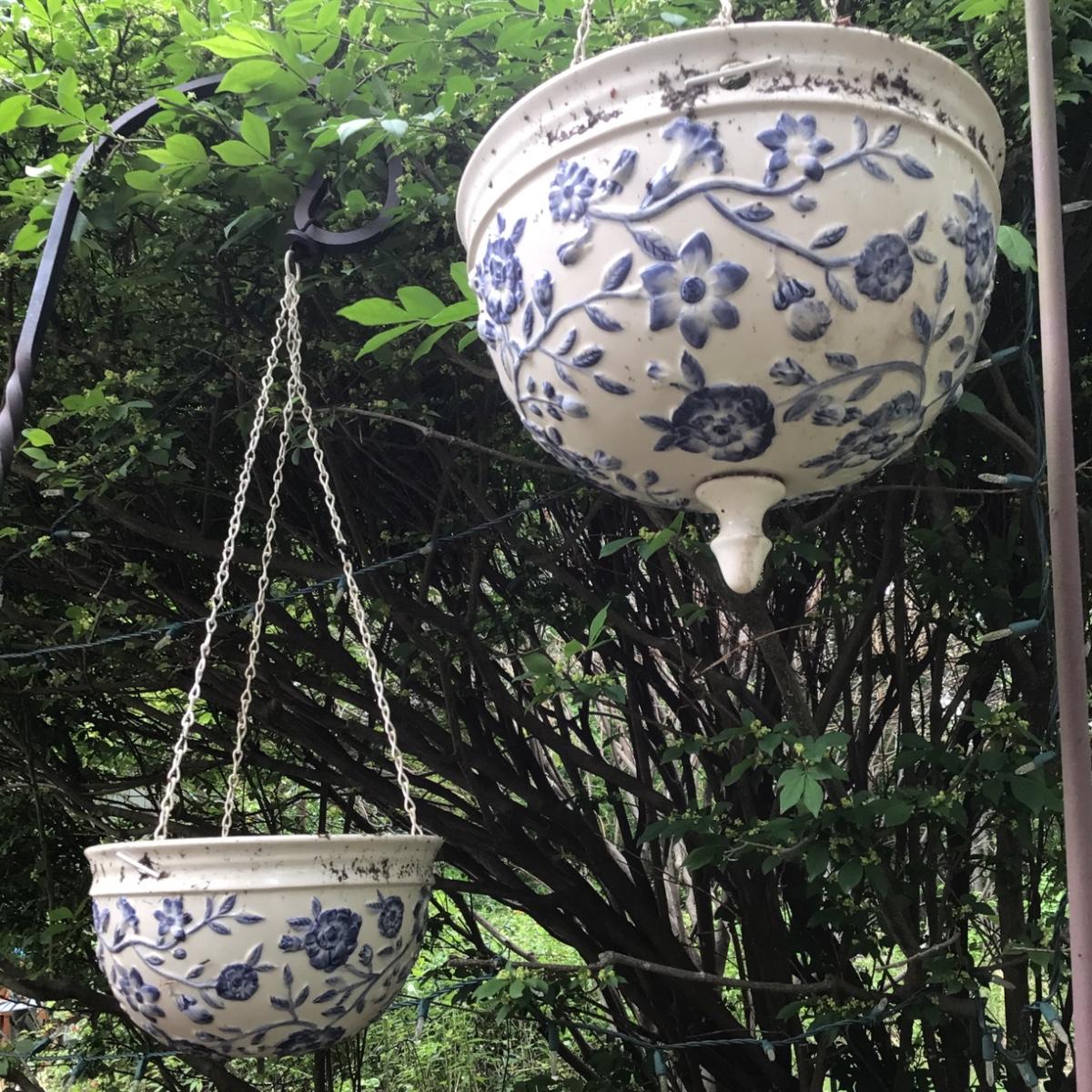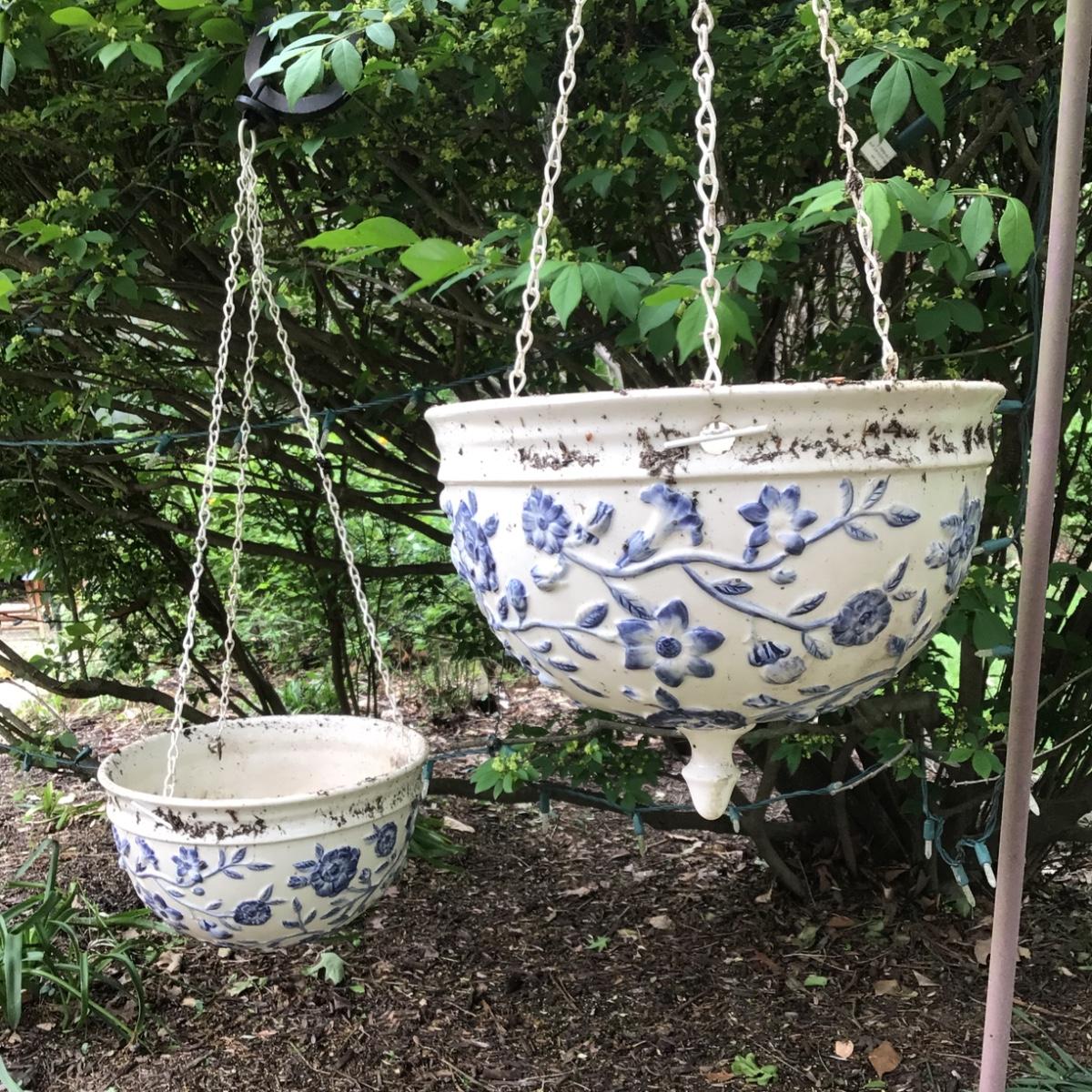815 Pair of Blue and White Floral Pottery Hanging Planters
