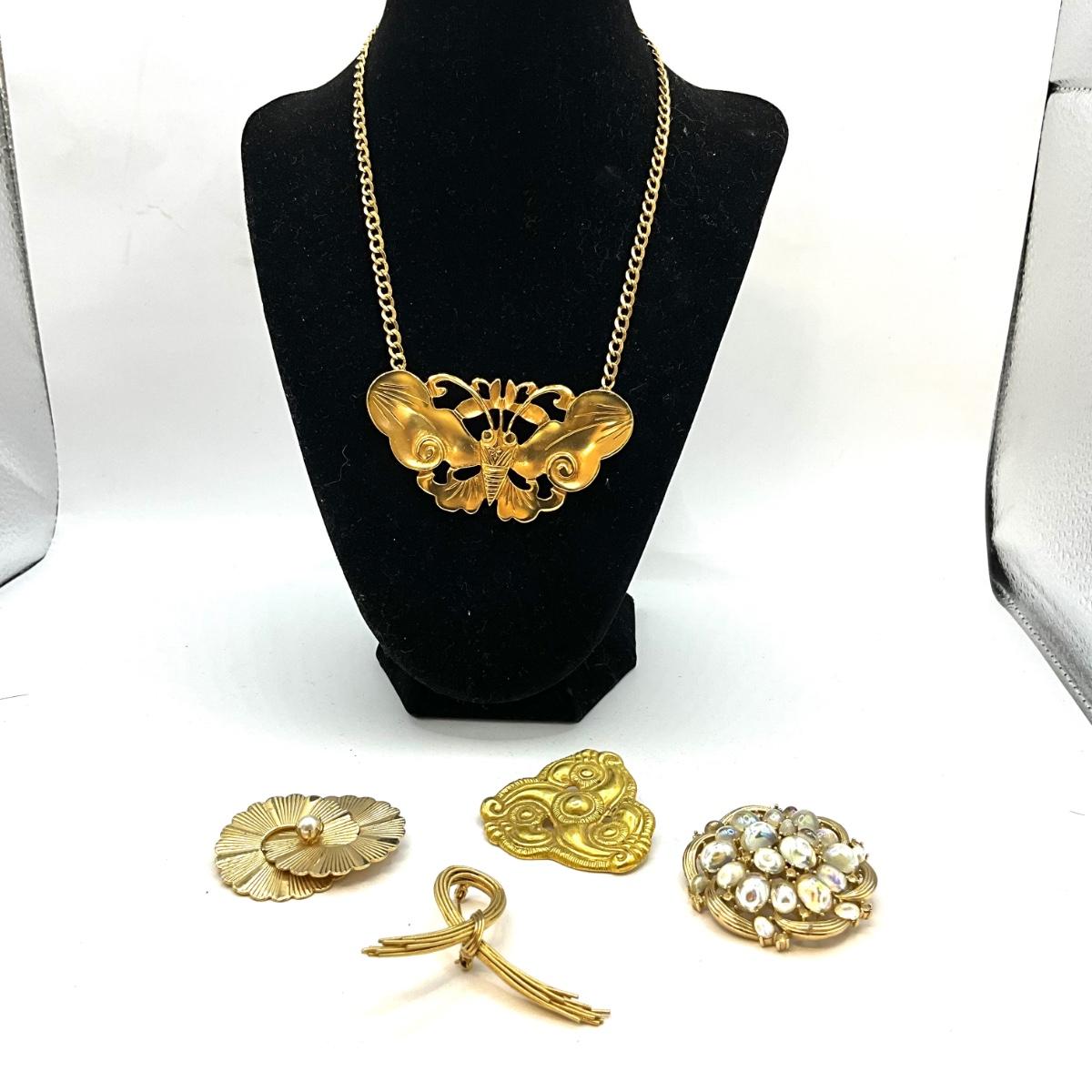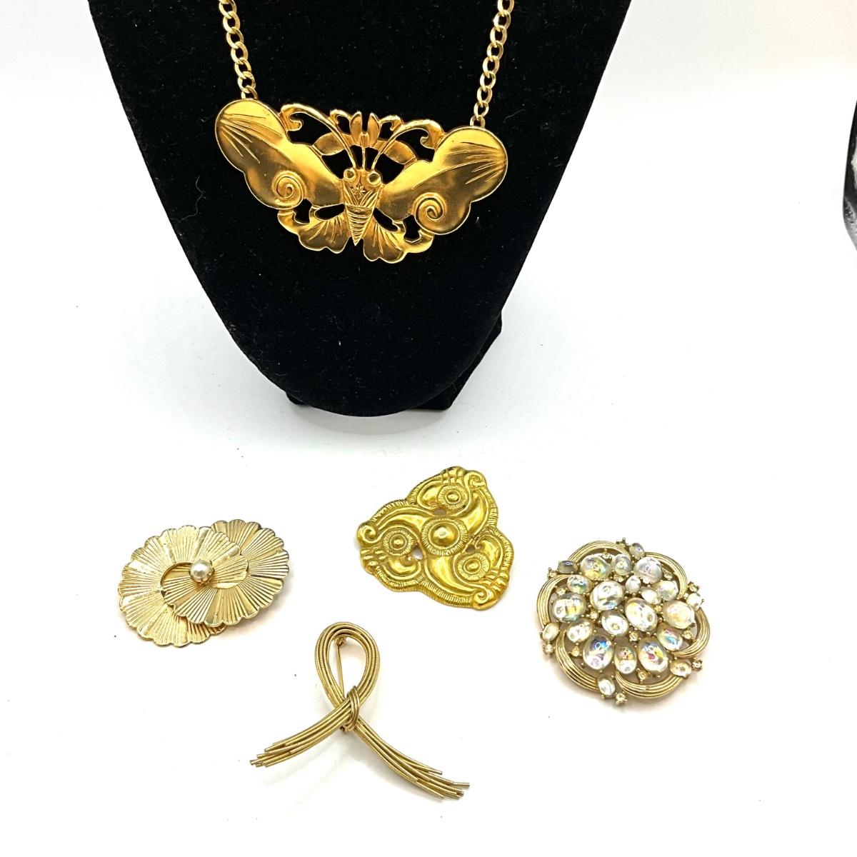 Vintage Moth necklace by the Alva Museum Replica measuring 17" with 1977 Metropolitan Museum of Art Brooch
