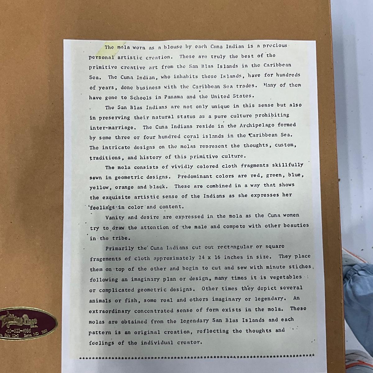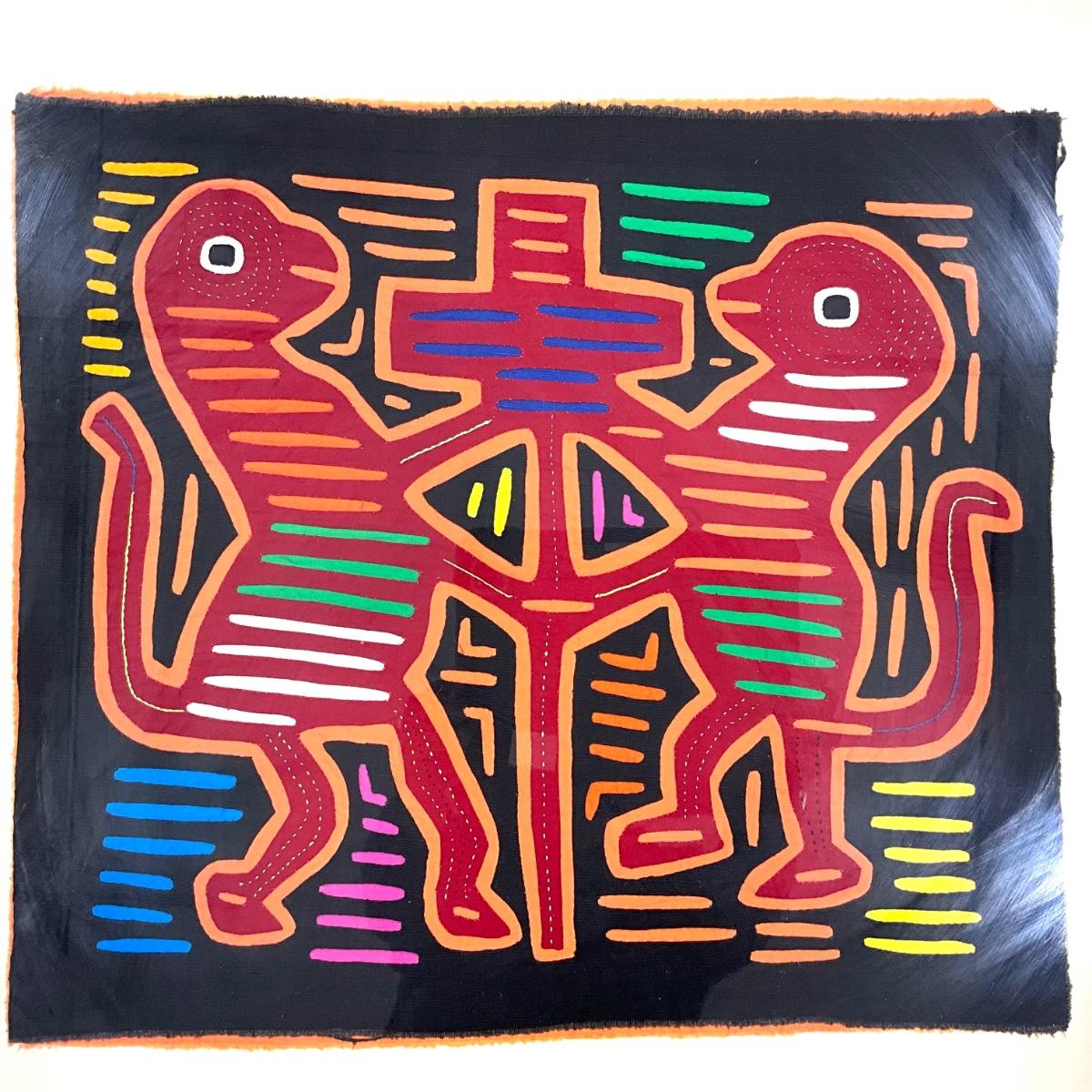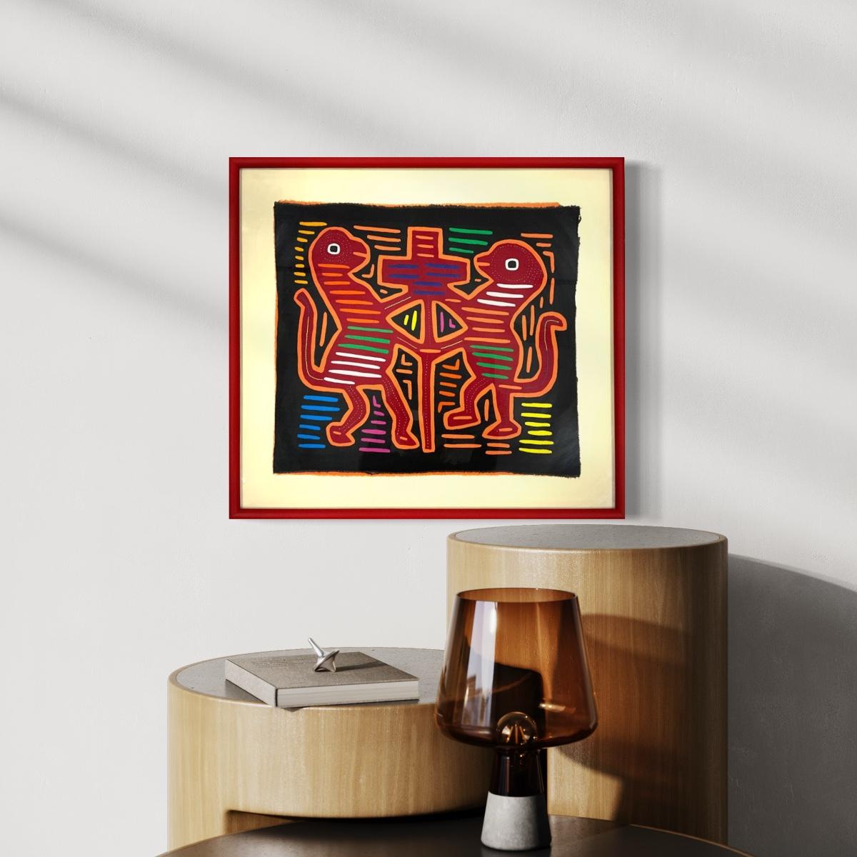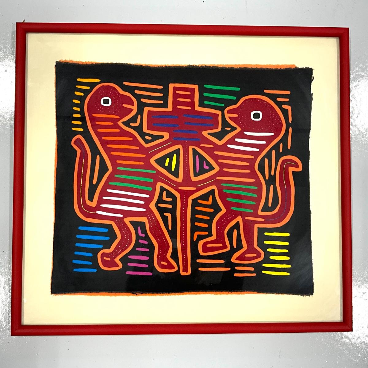 816 Vintage Mid Century Multicolored Mola Framed behind Glass