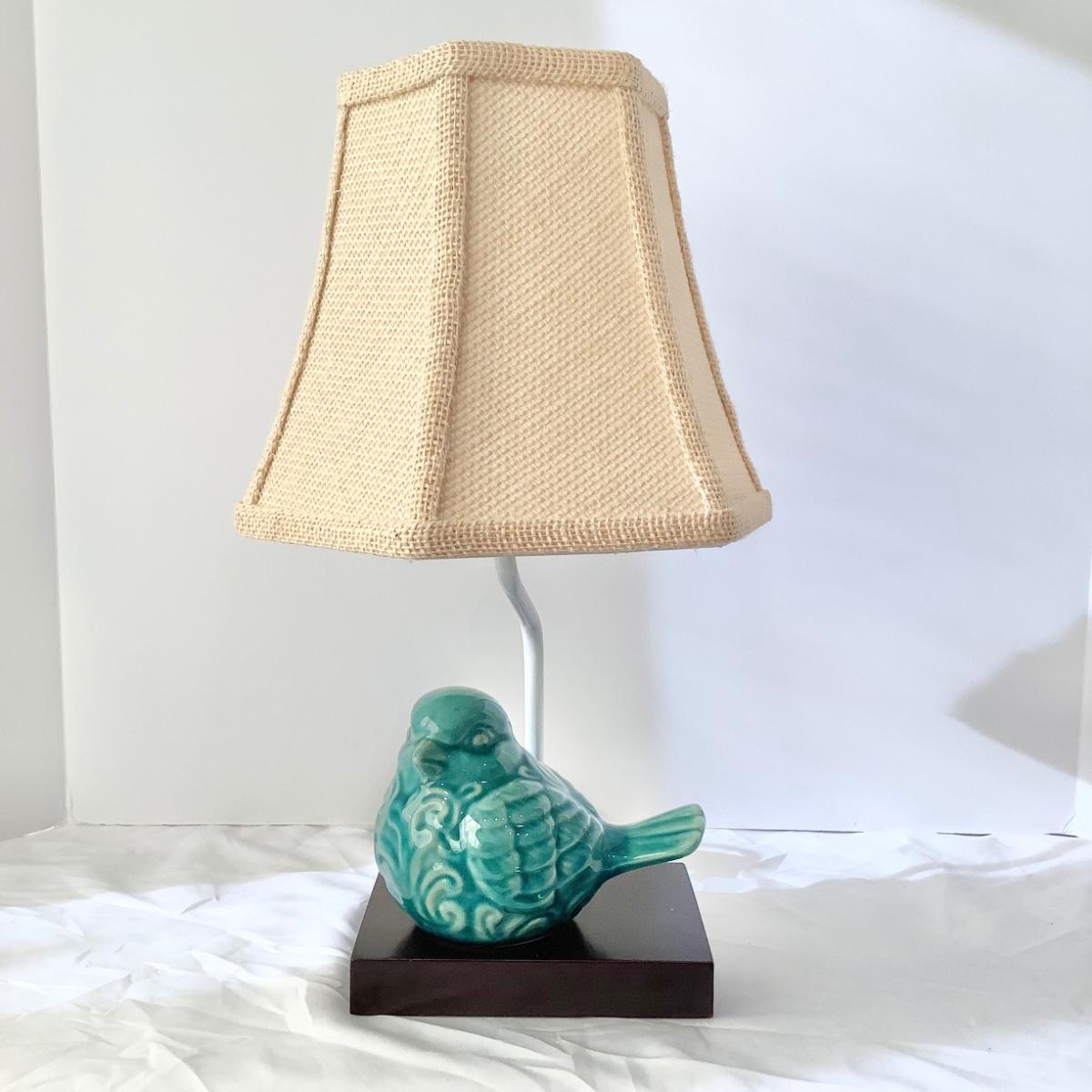 8162 Aqua Blue Pottery Bird Lamp with Shade