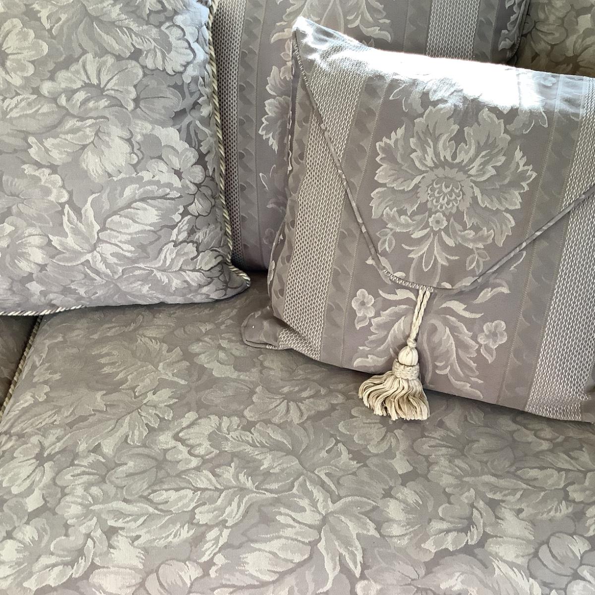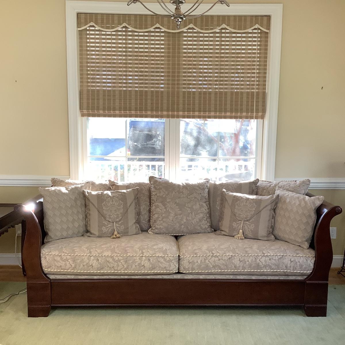 With decorative cushion measuring 90” wide x 37.25” deep x 20.5” seat height , x 22” deat depth