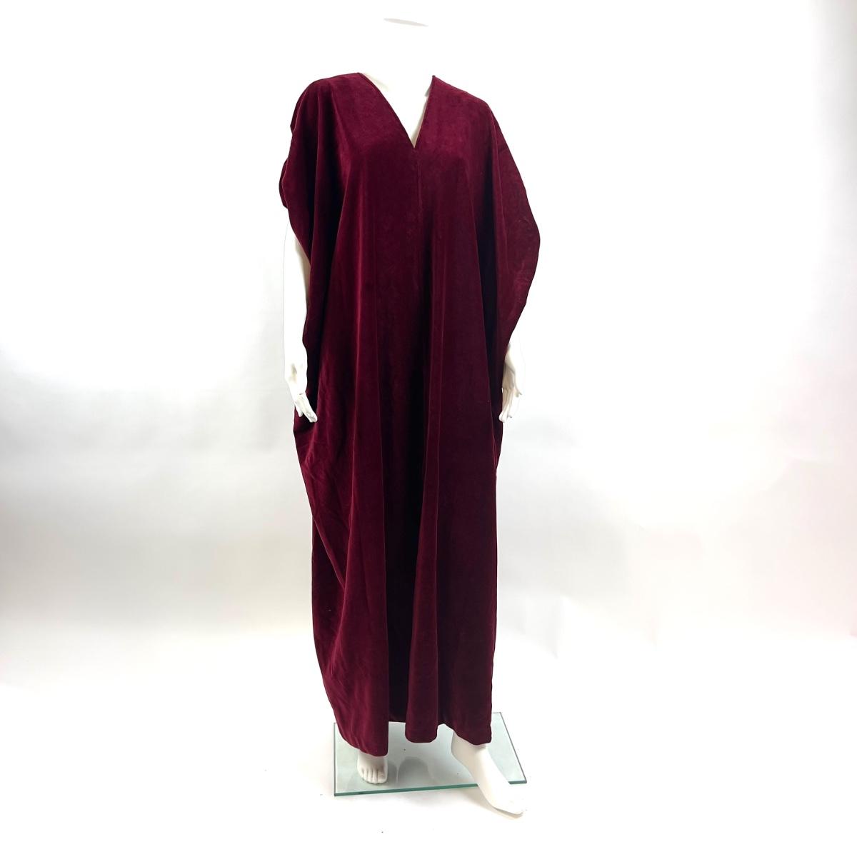 817 Vintage HALSTON IV Burgundy Velour House Dress