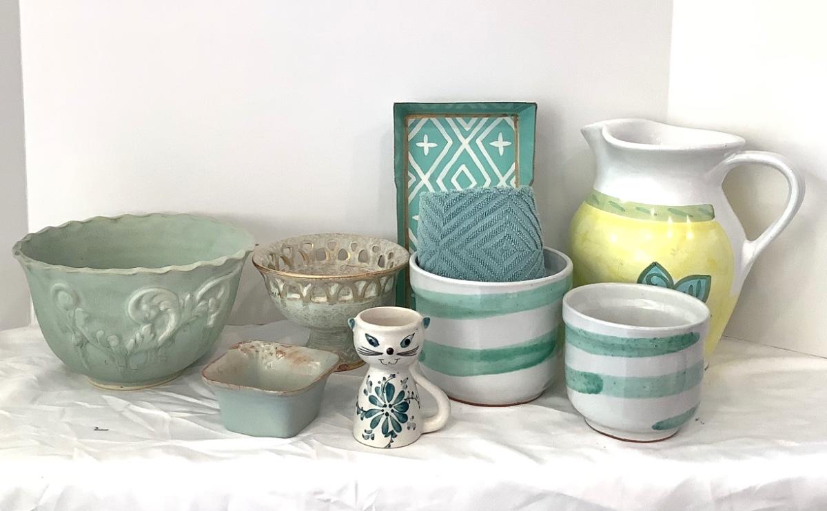 Stangl , signed pottery bowl, italian water pitcher, tray and more
