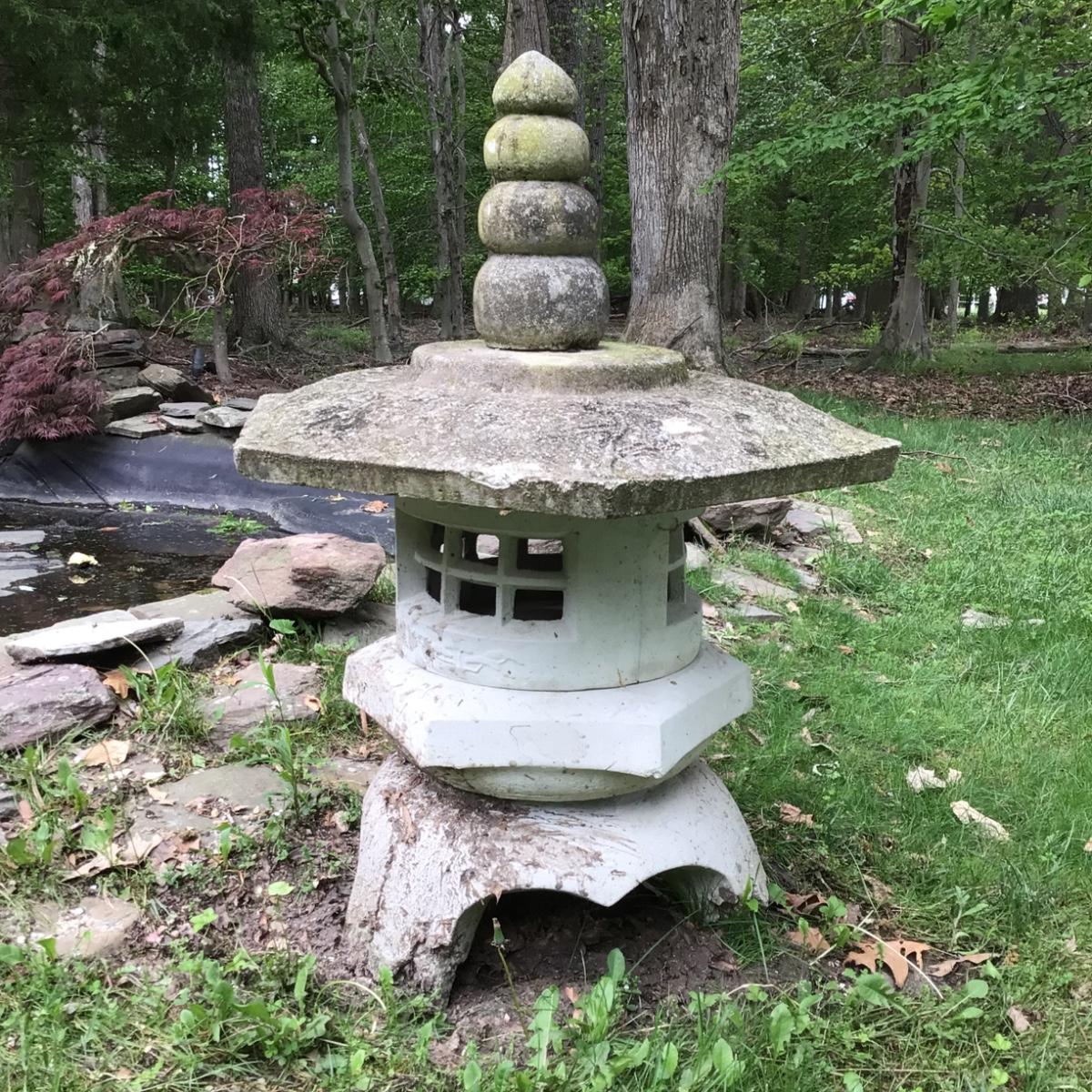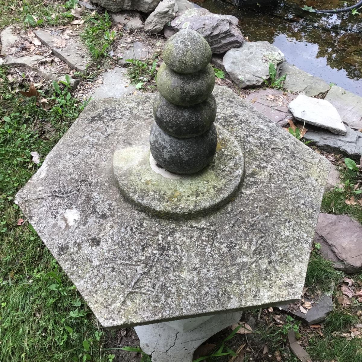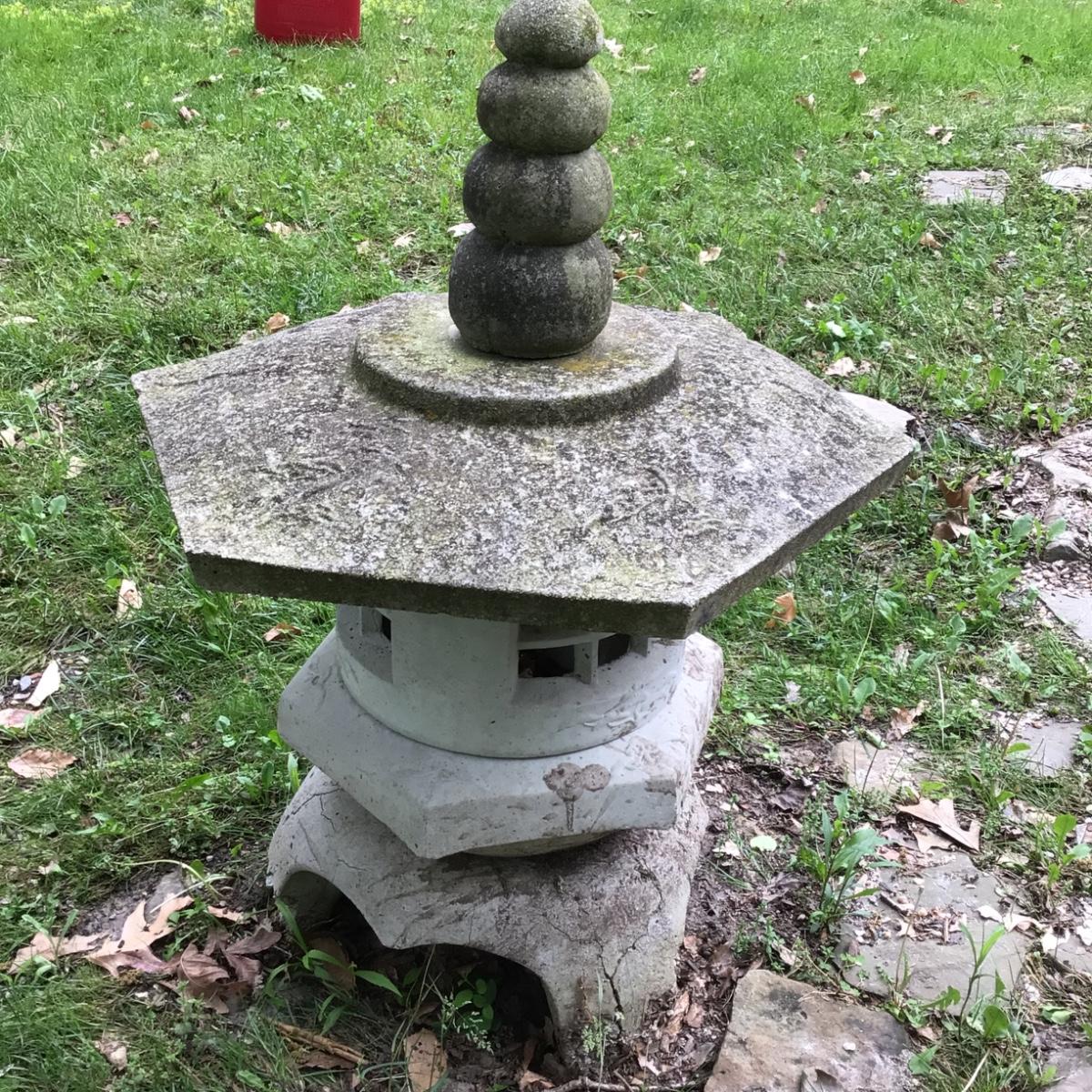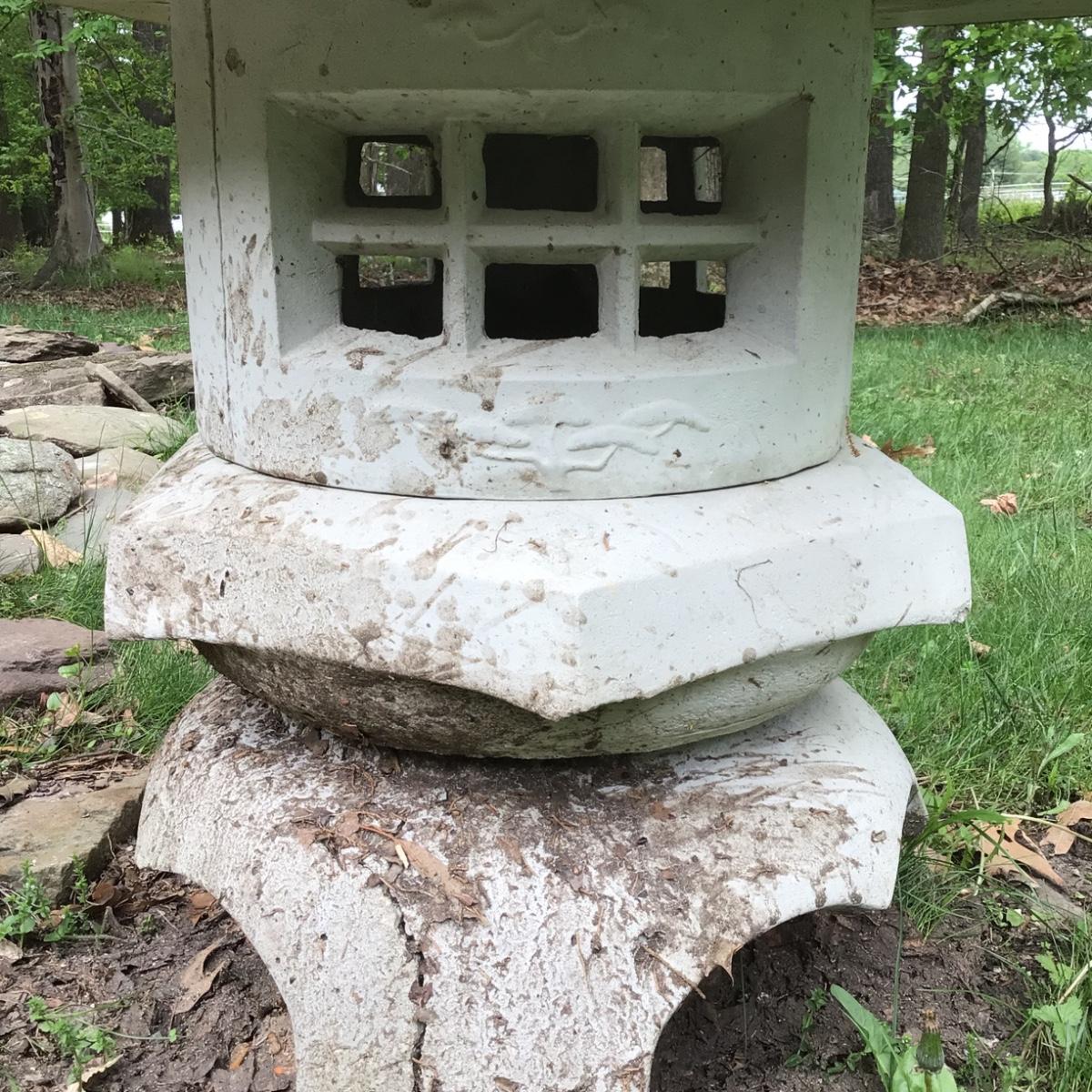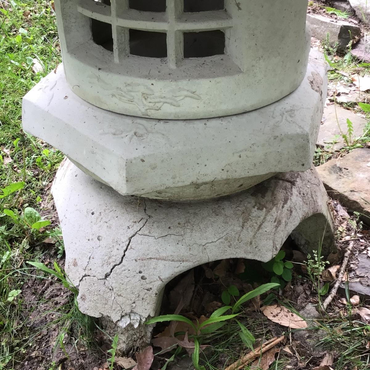 all three feet are damaged at bottom of base, comes apart in sections.measuring 40" high x 27" diameter