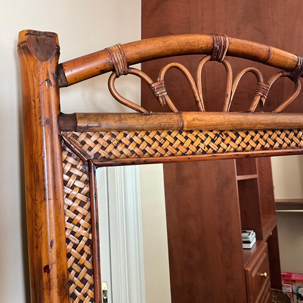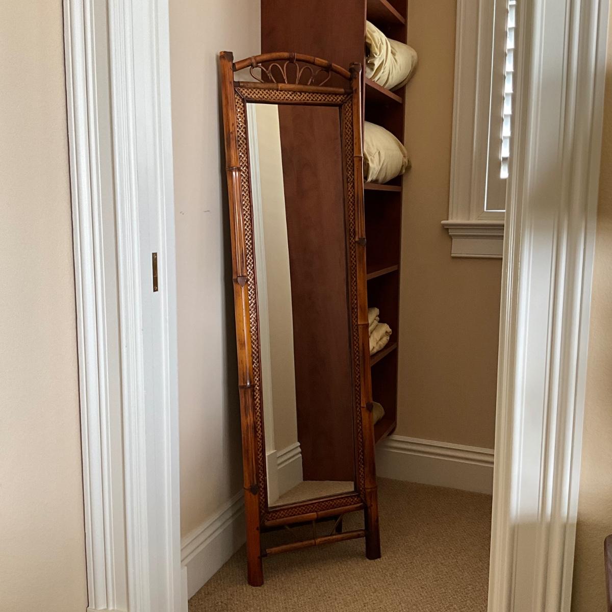 818 Rattan Standing Cheval Dressing Mirror