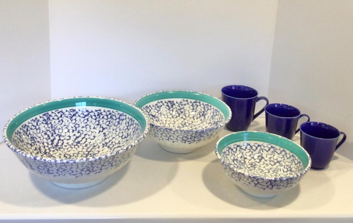 8182 Set of Three Spongware Italian Mixing Bowls with Mugs