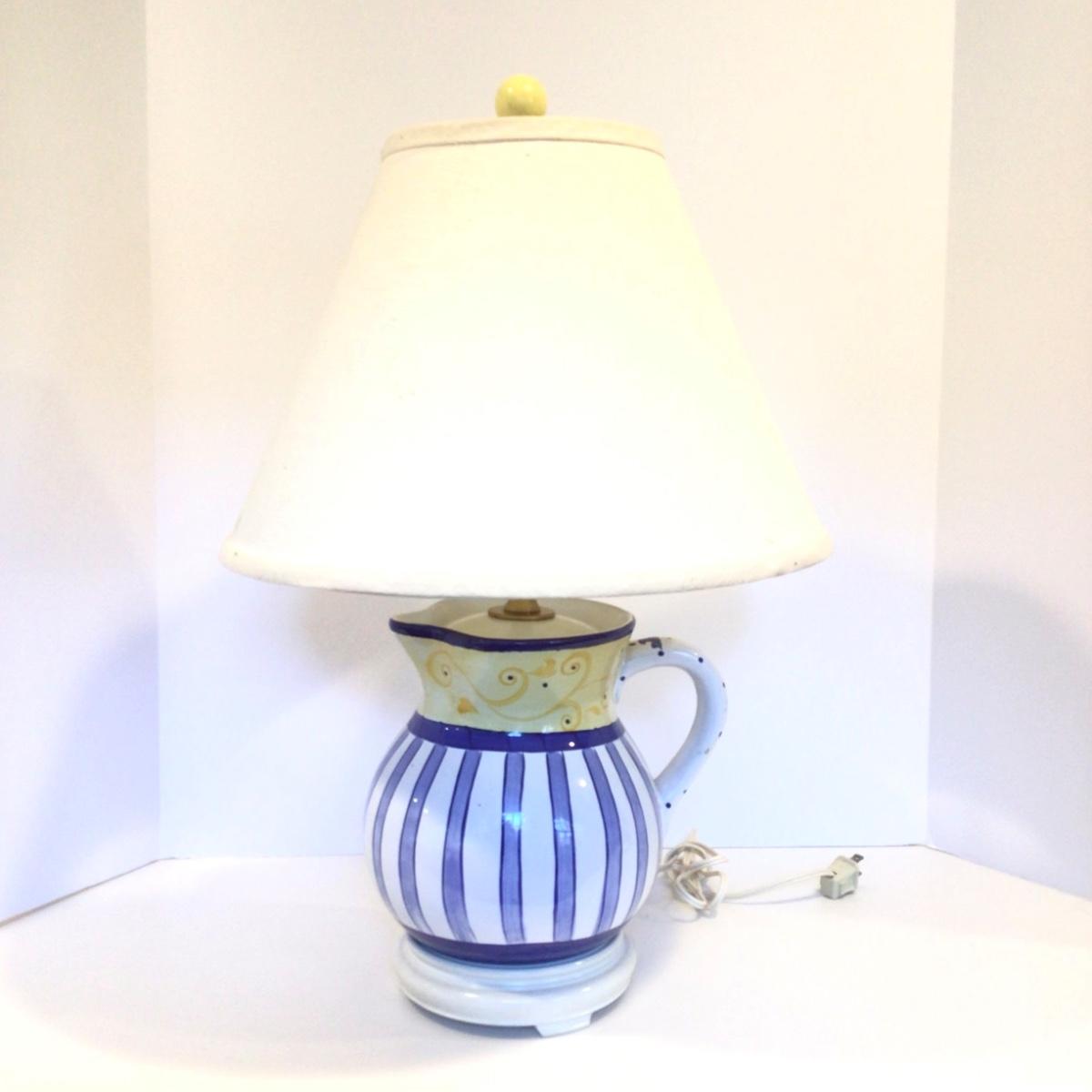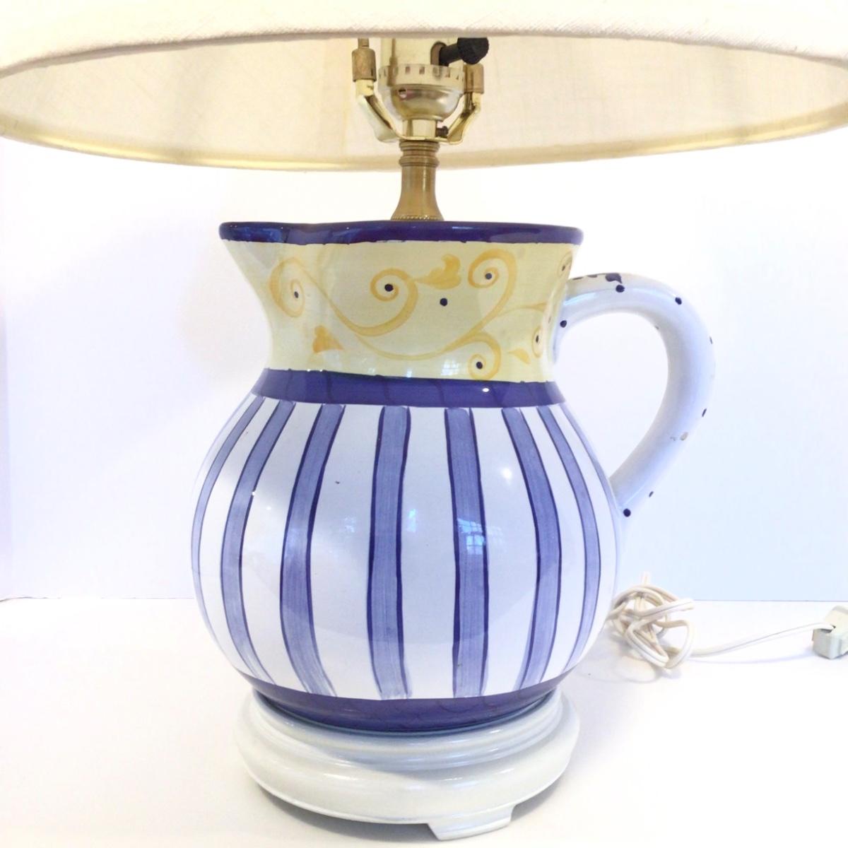 8186 Yellow White Blue Italian Pottery Pitcher Lamp