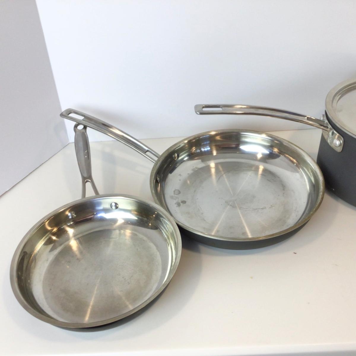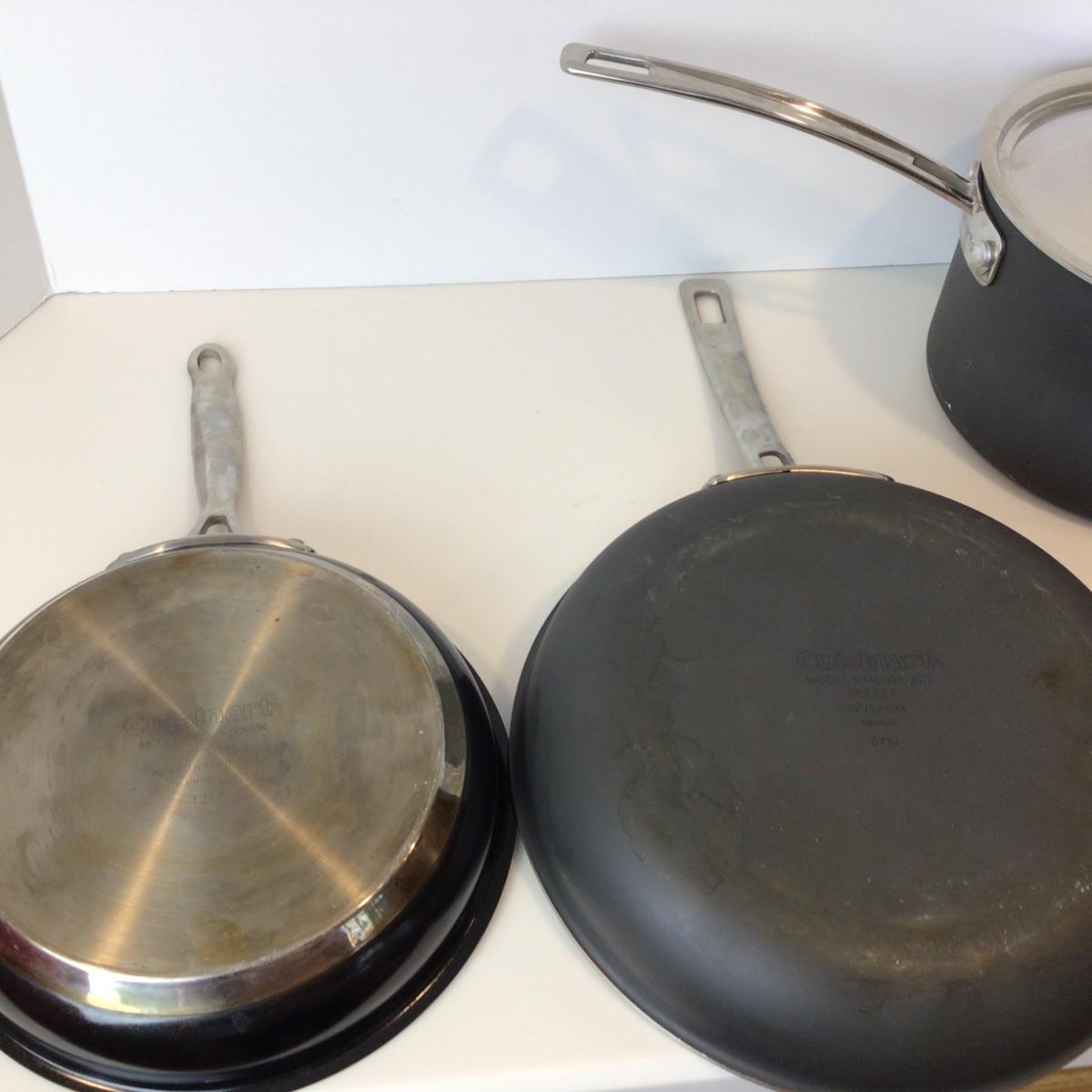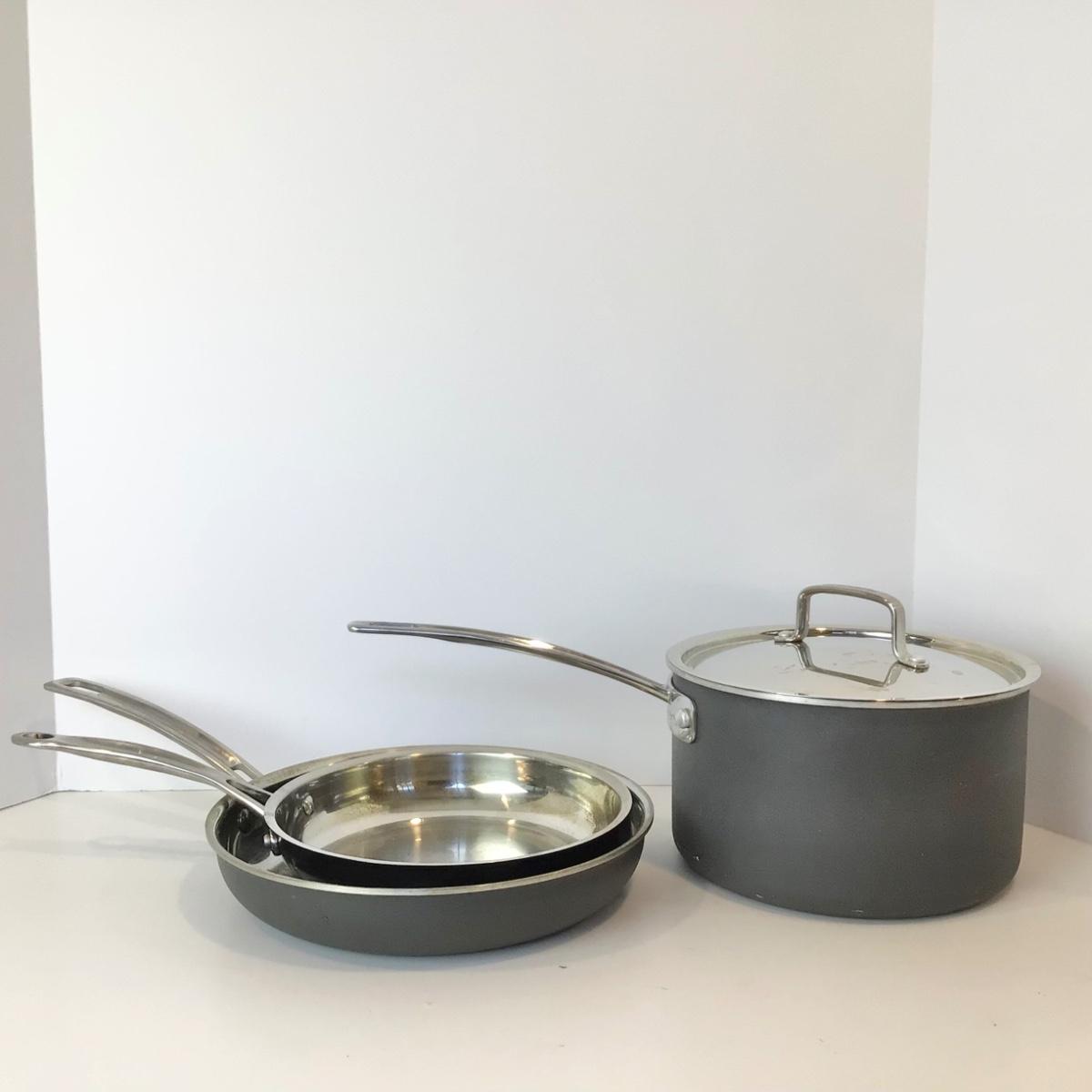 One 10” skillet, one 8” skillet , and one covered 4 quart saucepan