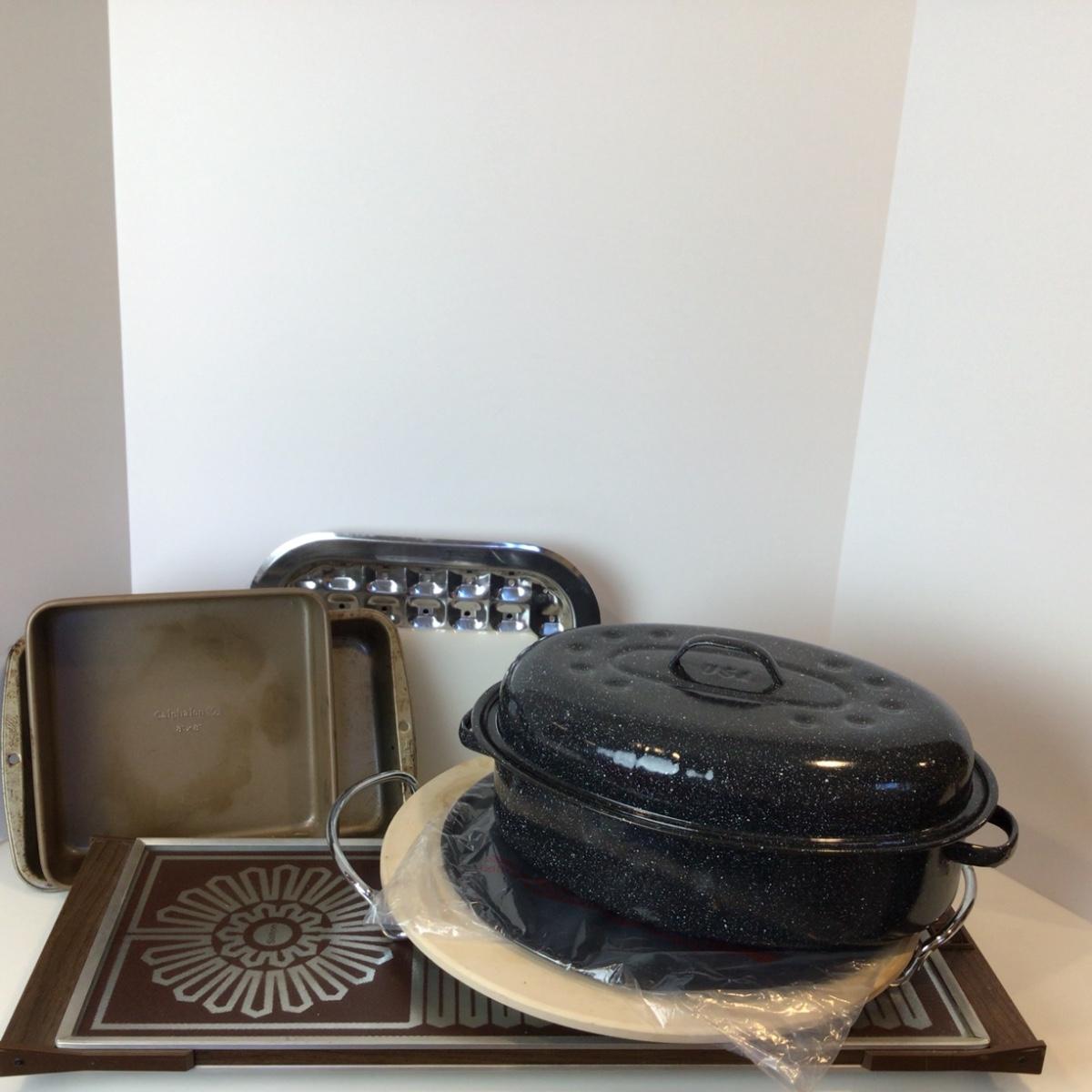 8198 Large lot of Baking Pans and Saltón Plate Warmer
