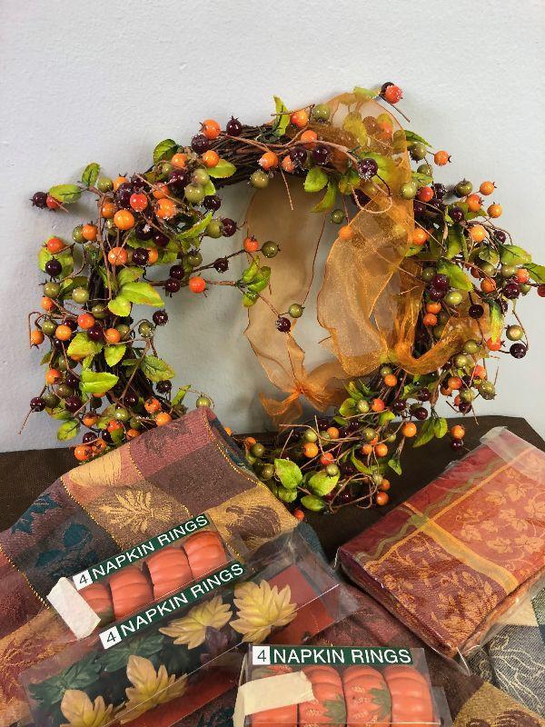 #82 Autumn Wreath, Napkins Table Cloth, Rings