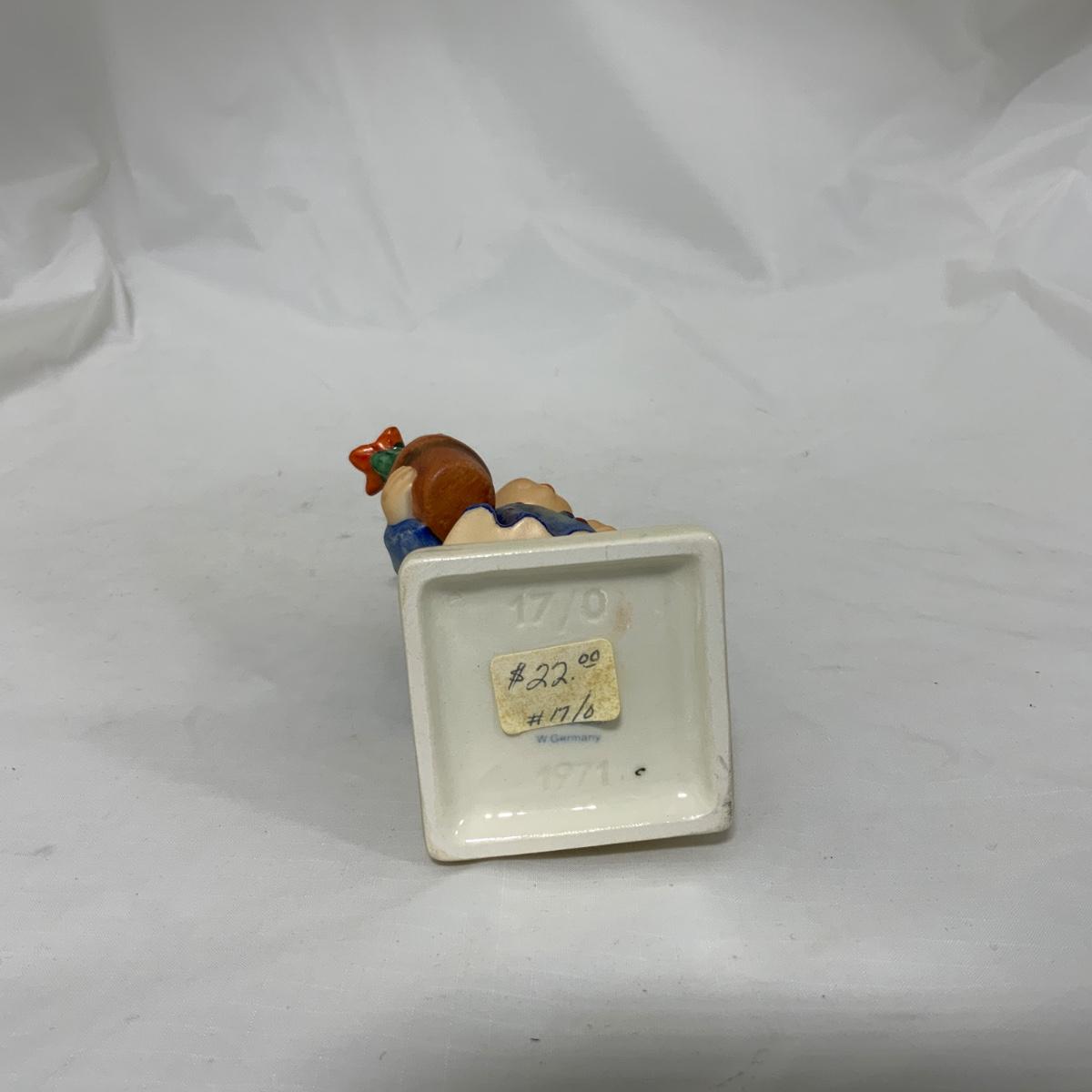 You’ve made it this far into the auction! Congratulations, Hum 17/0. TMK-5. Please see photos for details and condition. No Cracks, Chips or Crazing noted. ::: Shipping is available on this lot. If you require shipping you must let us know at the close of the auction. We will coordinate with you after the item has been won. Shipping fees will include insurance up to or exceeding the value of all items being mailed. If you have any questions regarding this lot please contact the auctioneer either via this website, by direct email or by phone. PICK UP TIMES and other important information can be found in the TERMS and DESCRIPTION of the auction. Please take a look for pertinent information. Thanks!