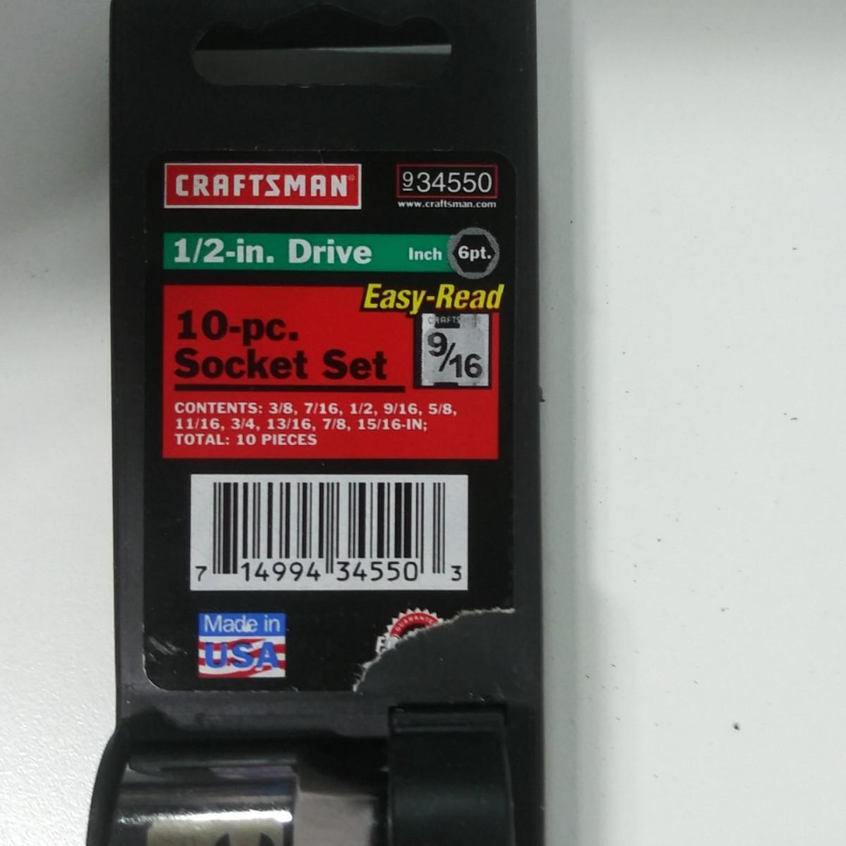 #82 Craftsman 1/2" drive 10pc SAE Socket Set