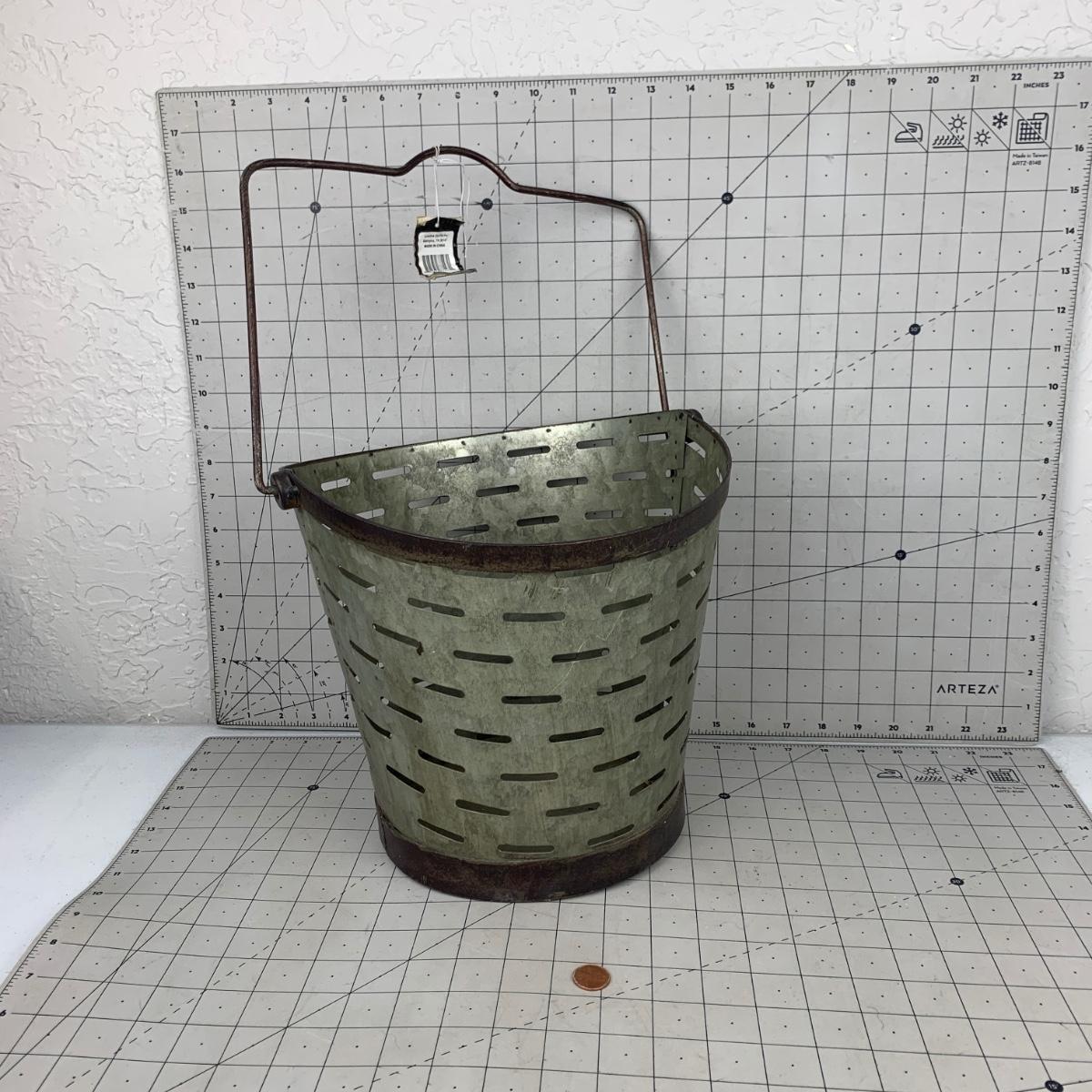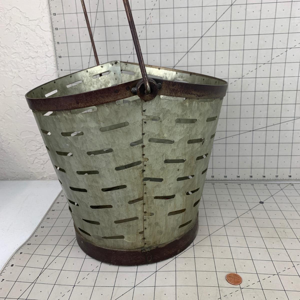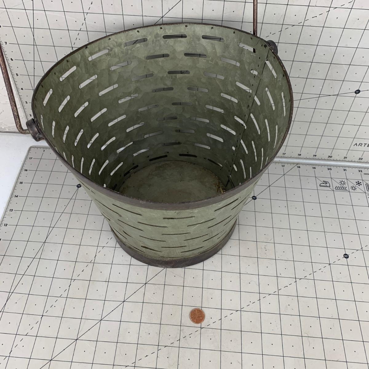 #1 Distressed Metal Olive Bucket With Handle (Medium)