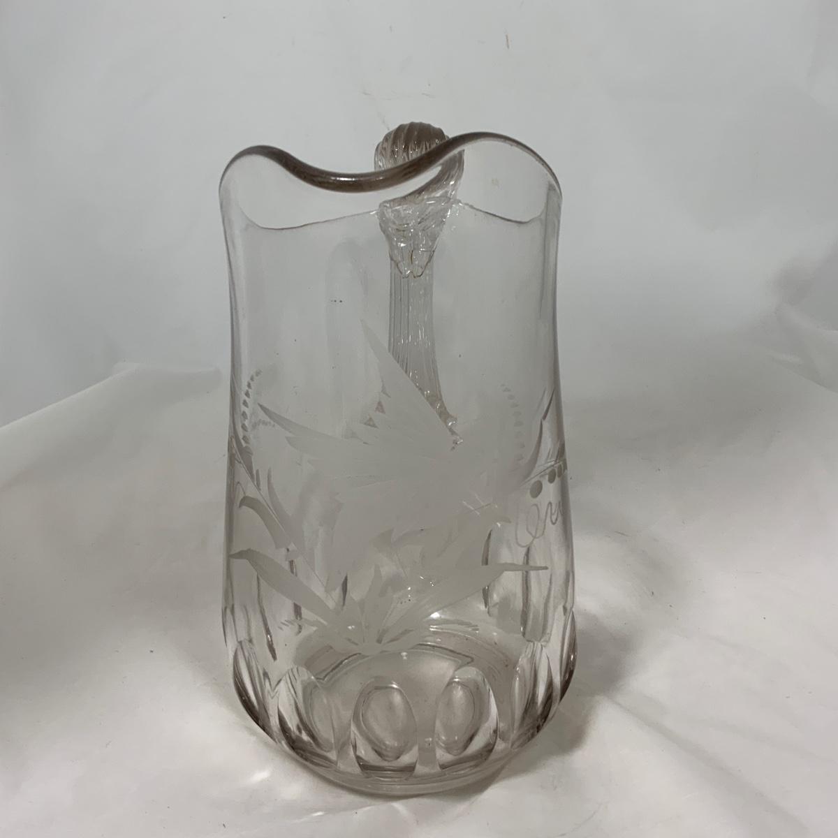 Elegant Engraved Bird Water Pitcher. Exceptional weight and design. The pictures don’t do it justice. The applied handle is substantial and the whole piece would really elevate your water game. Please see photos for details and condition. ::: Shipping is available on this lot. If you require shipping you must let us know at the close of the auction. We will coordinate with you after the item has been won. Shipping fees will include insurance up to or exceeding the value of all items being mailed. If you have any questions regarding this lot please contact the auctioneer either via this website, by direct email or by phone. PICK UP TIMES and other important information can be found in the TERMS and DESCRIPTION of the auction. Please take a look for pertinent information. Thanks!