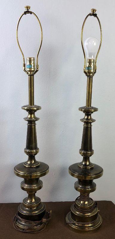 #82 Heavy Pair of Bronze Table Lamps