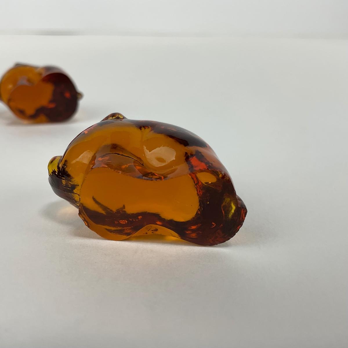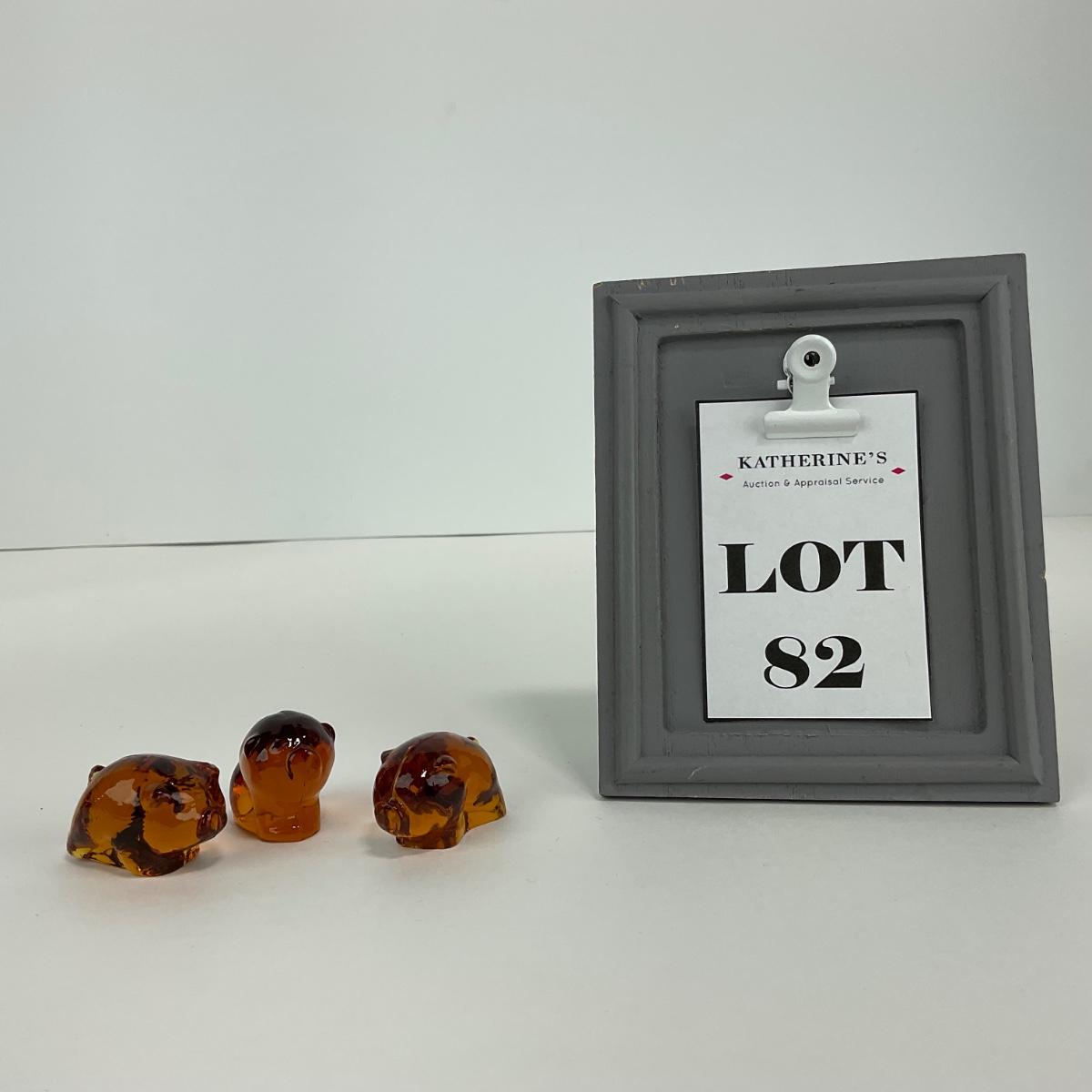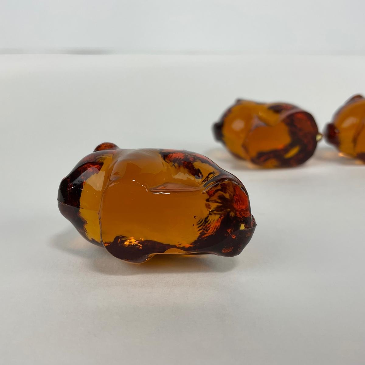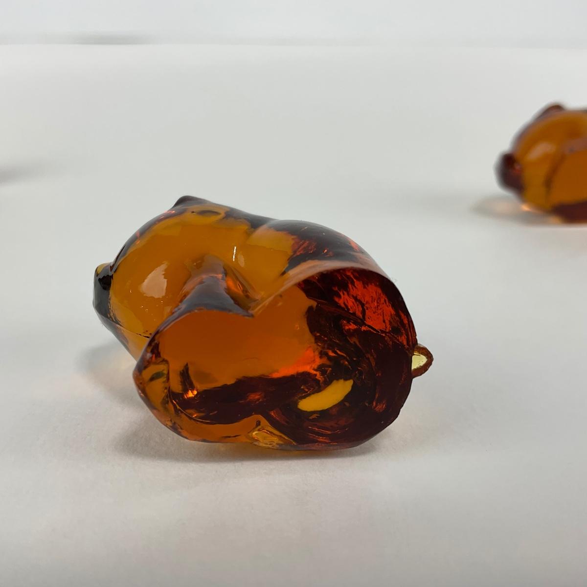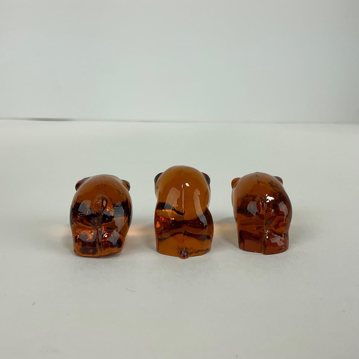 Three vintage Imperial amber piglet figures. Some small chip on the bottom rim. This piece does have some scuffs, scratches, marks, or slight damage, but otherwise appears to be in great shape. Please see photos for details and condition. Any condition statement is given as a courtesy to a client, is an opinion, and should not be treated as a statement of fact. Reference to condition written, oral or within a condition report shall not be regarded as a full account of condition and may not include all defects, alterations, or restorations. Absence of a condition report does not imply a lot is flawless or lacking imperfections or damage. Katherine’s Auction & Appraisal Service shall have no responsibility for any error or omission. Returns shall not be accepted on the basis of condition. ::: Shipping is available on this lot. If you require shipping you must let us know at the close of the auction. We will coordinate with you after the item has been won. Shipping fees will include insurance up to or exceeding the value of all items being mailed. If you have any questions regarding this lot please contact the auctioneer either via this website, by direct email or by phone. PICK UP TIMES and other important information can be found in the TERMS and DESCRIPTION of the auction. Please take a look for pertinent information. Thanks!