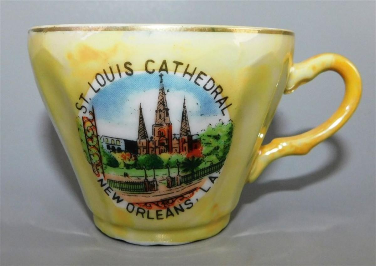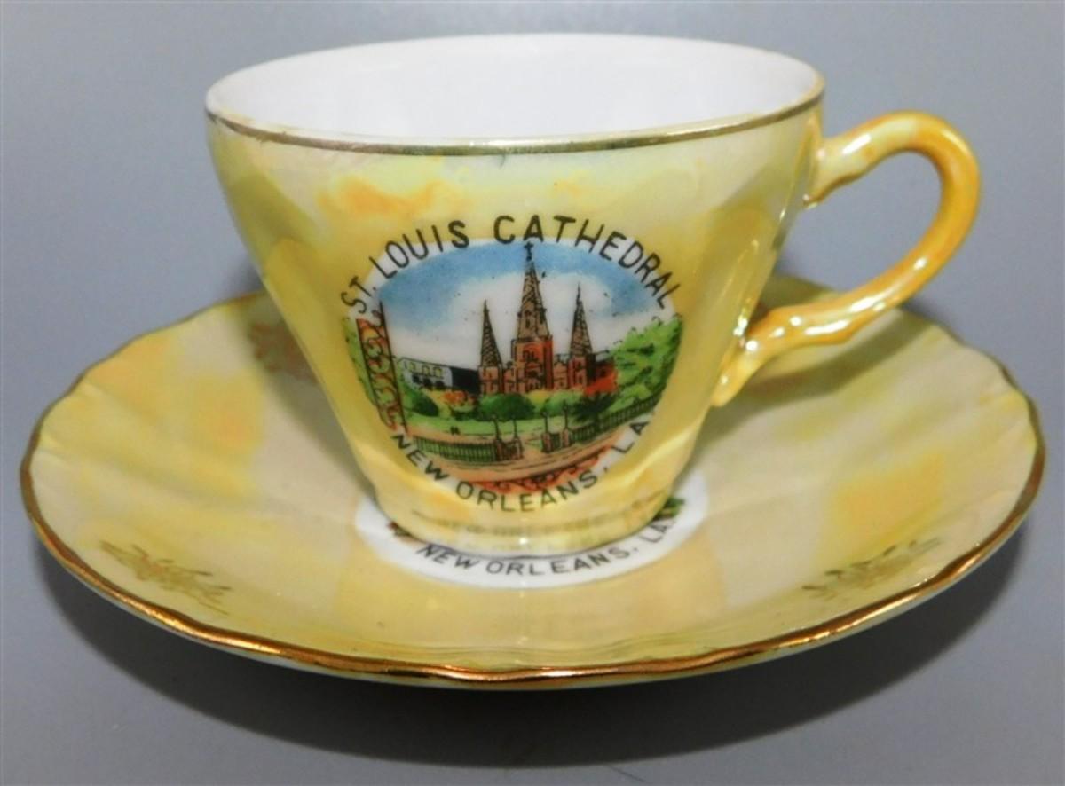 82 Lot of 4 Cups and Saucier with Stands- French Market New Orleans La / RC Japan 1259