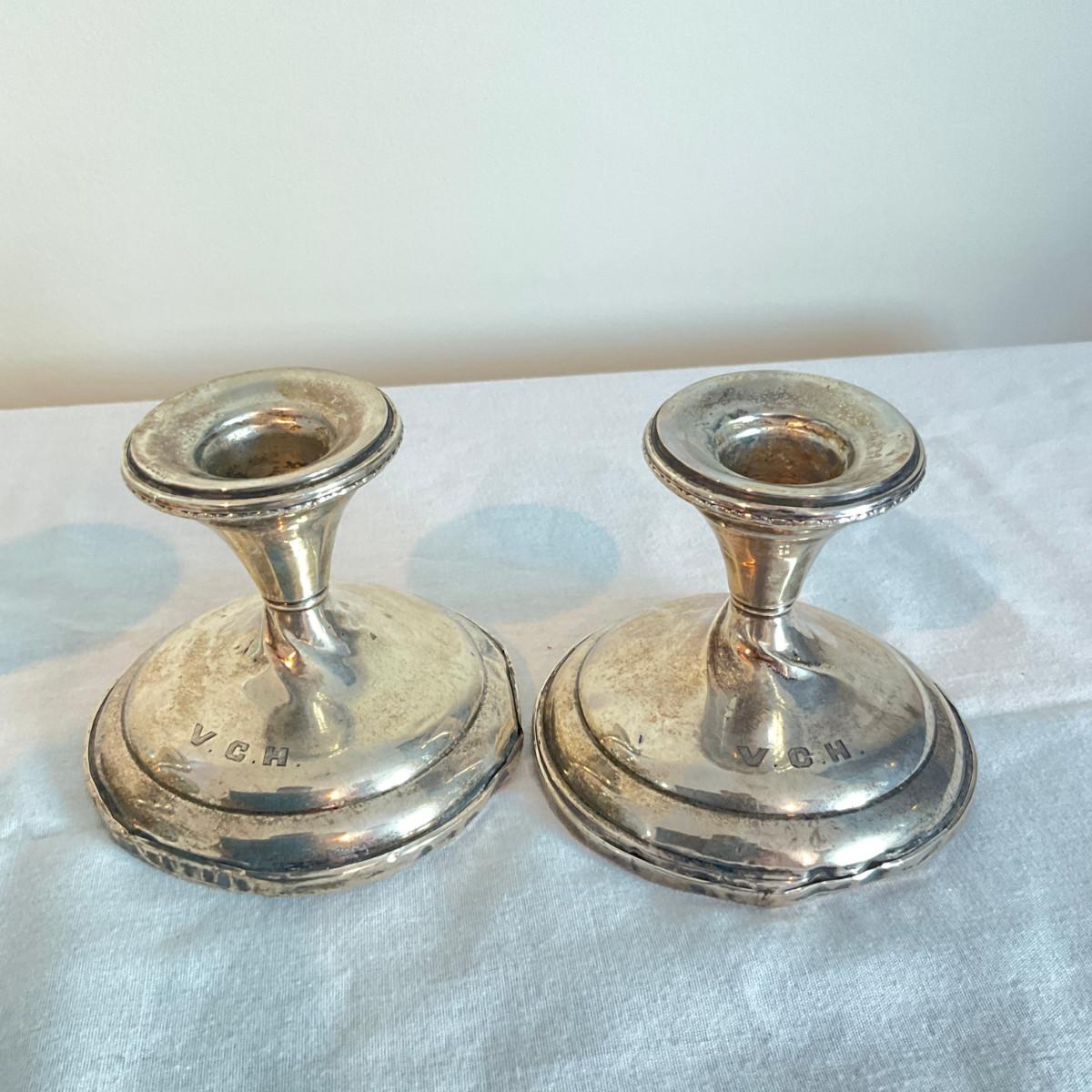 820 Two Pairs Of Weighted Silver Candlesticks