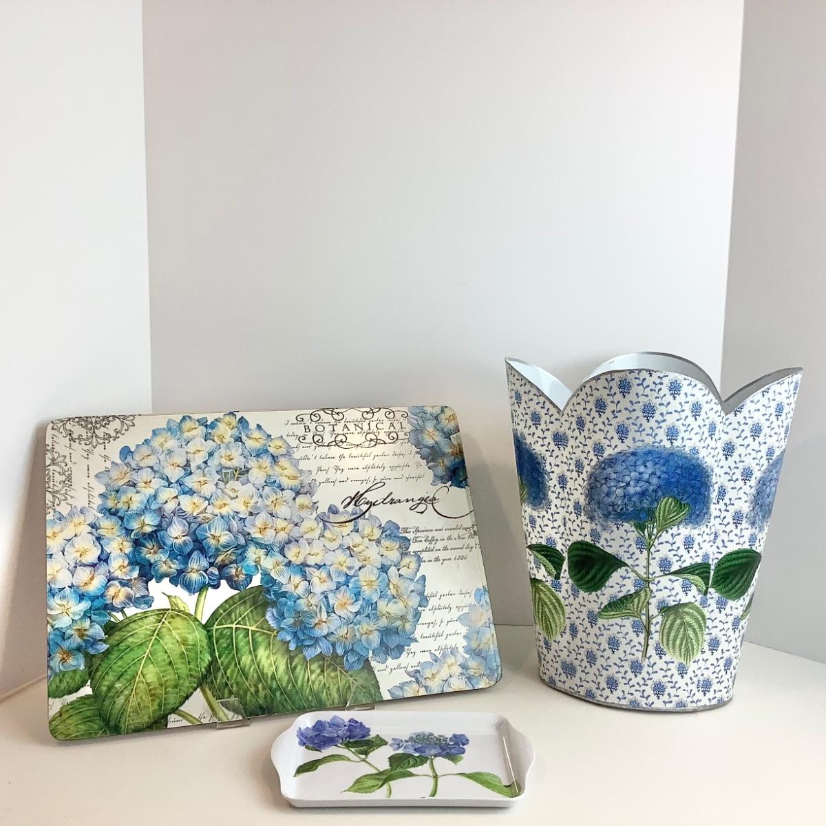 8209 Hydrangea Waste Can by Marye Kelley with Placemats