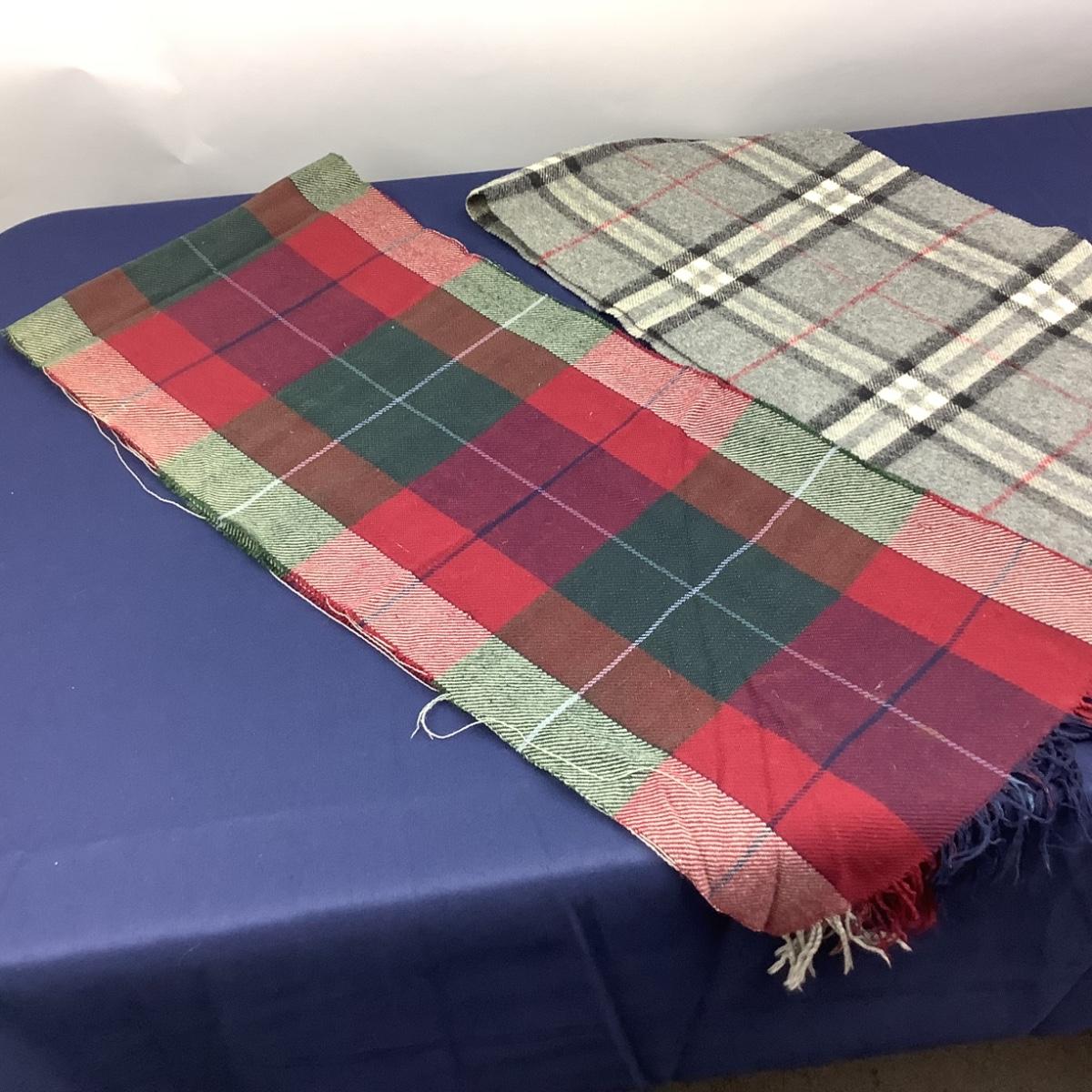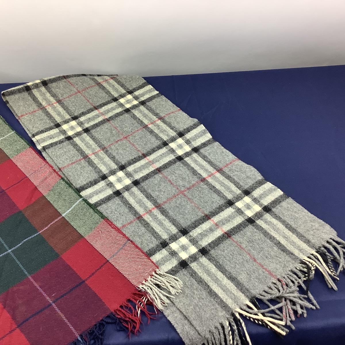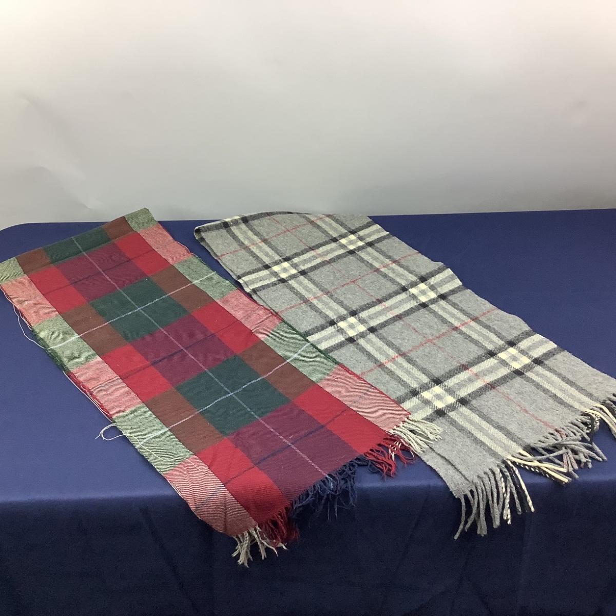 The scarf has no tags, it is 100% cashmere. the red and green plaid scarf is unraveling on the edge.