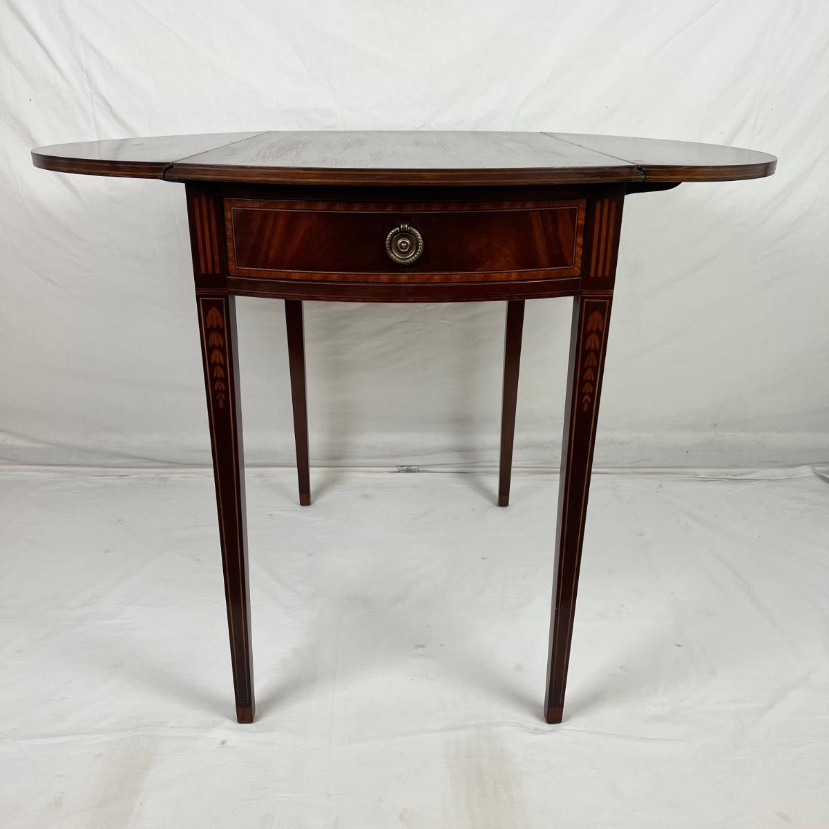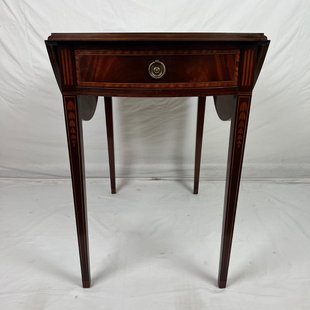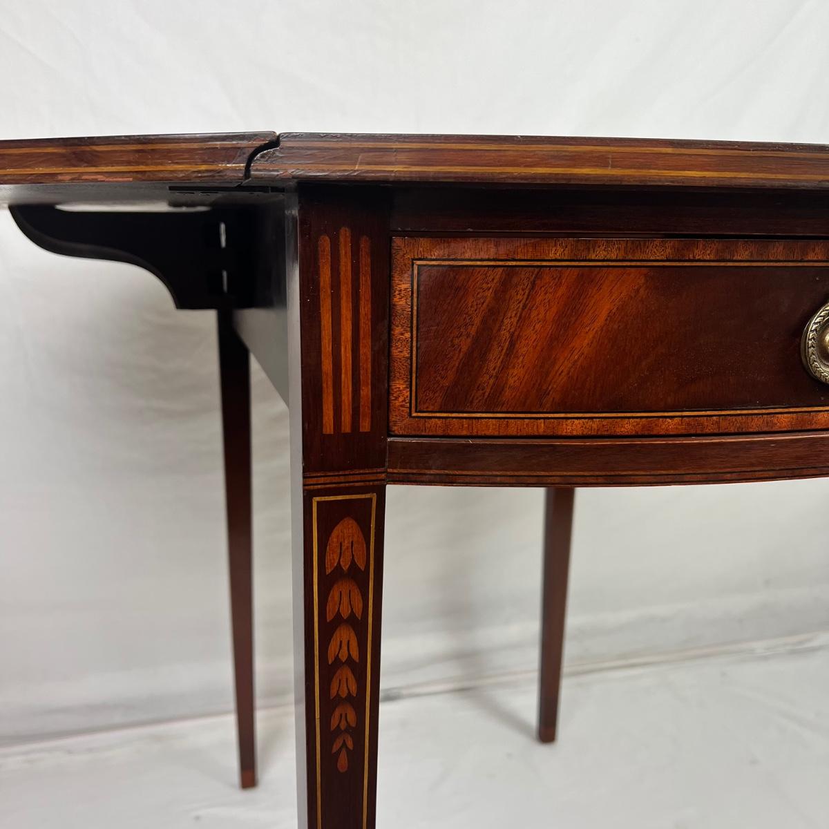 Genuine Mahogany 1-Drawer Drop Leaf Table w/Inlay.