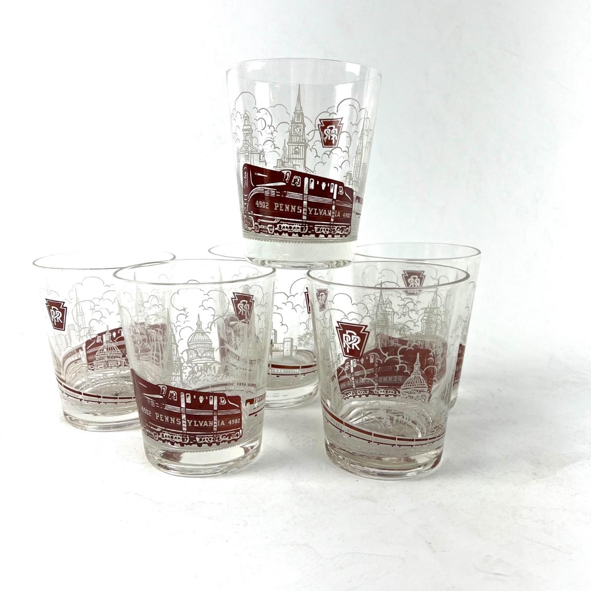 821 Set of 6 Vintage White Brown Pennsylvania Railroad Drinking Glasses