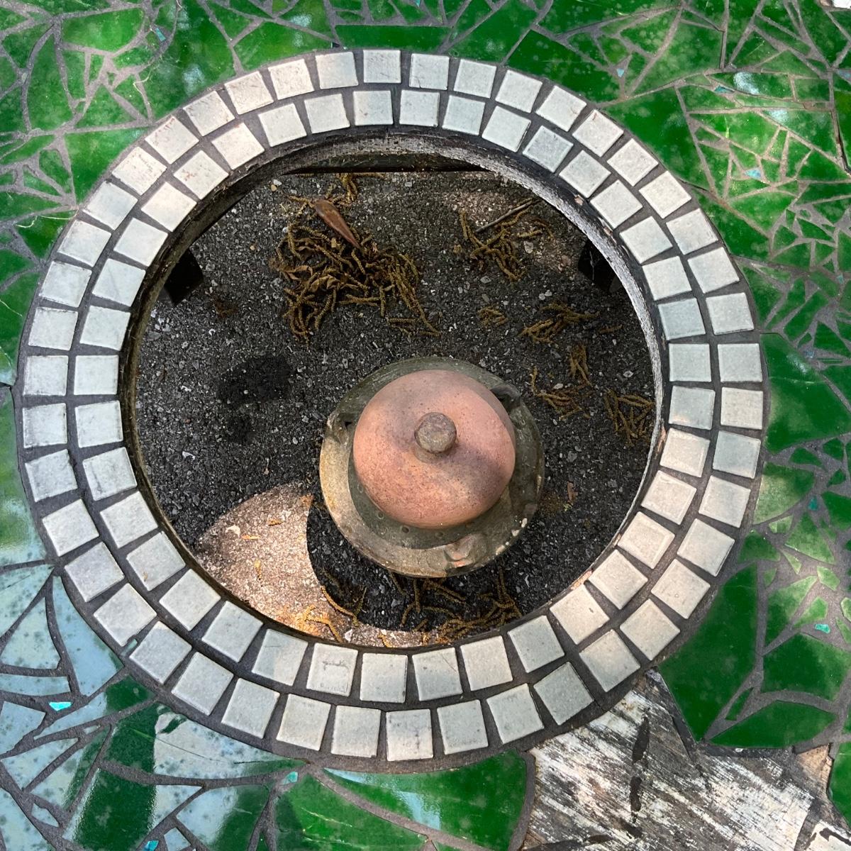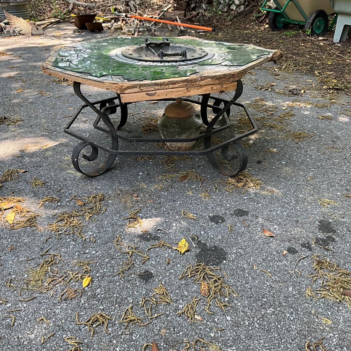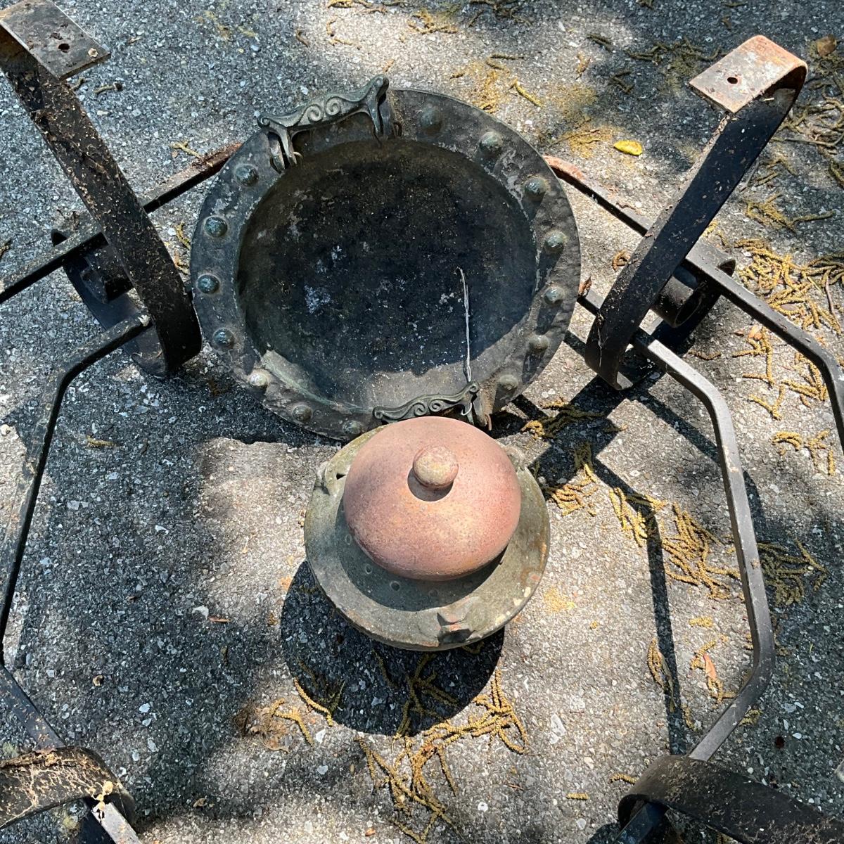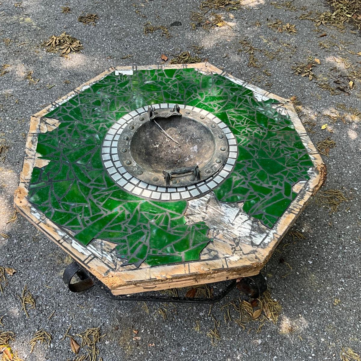 has wire base, substantial amount of glass has come off, could still use as a pattern for a new one