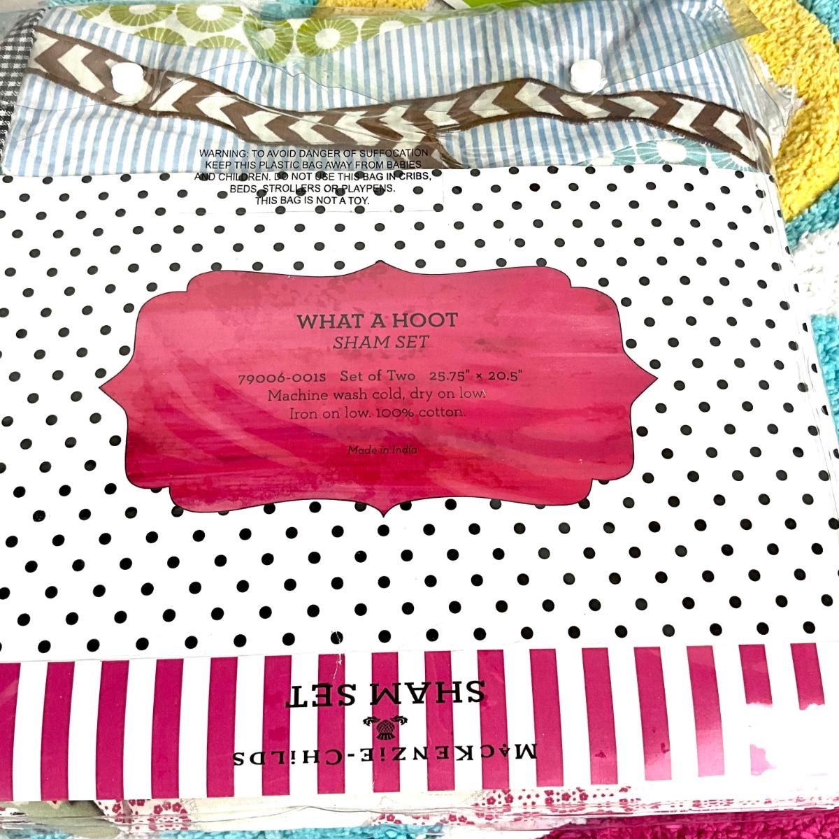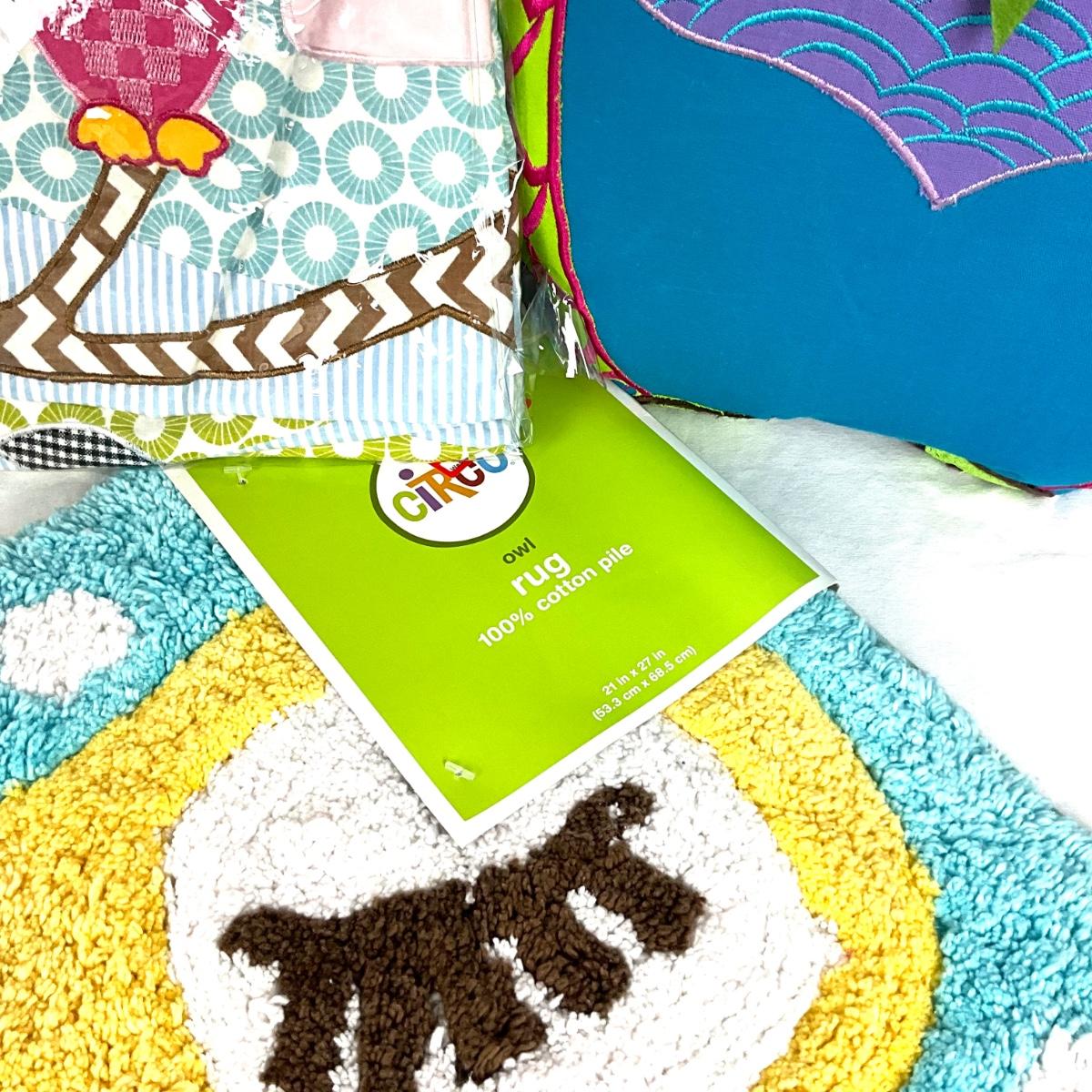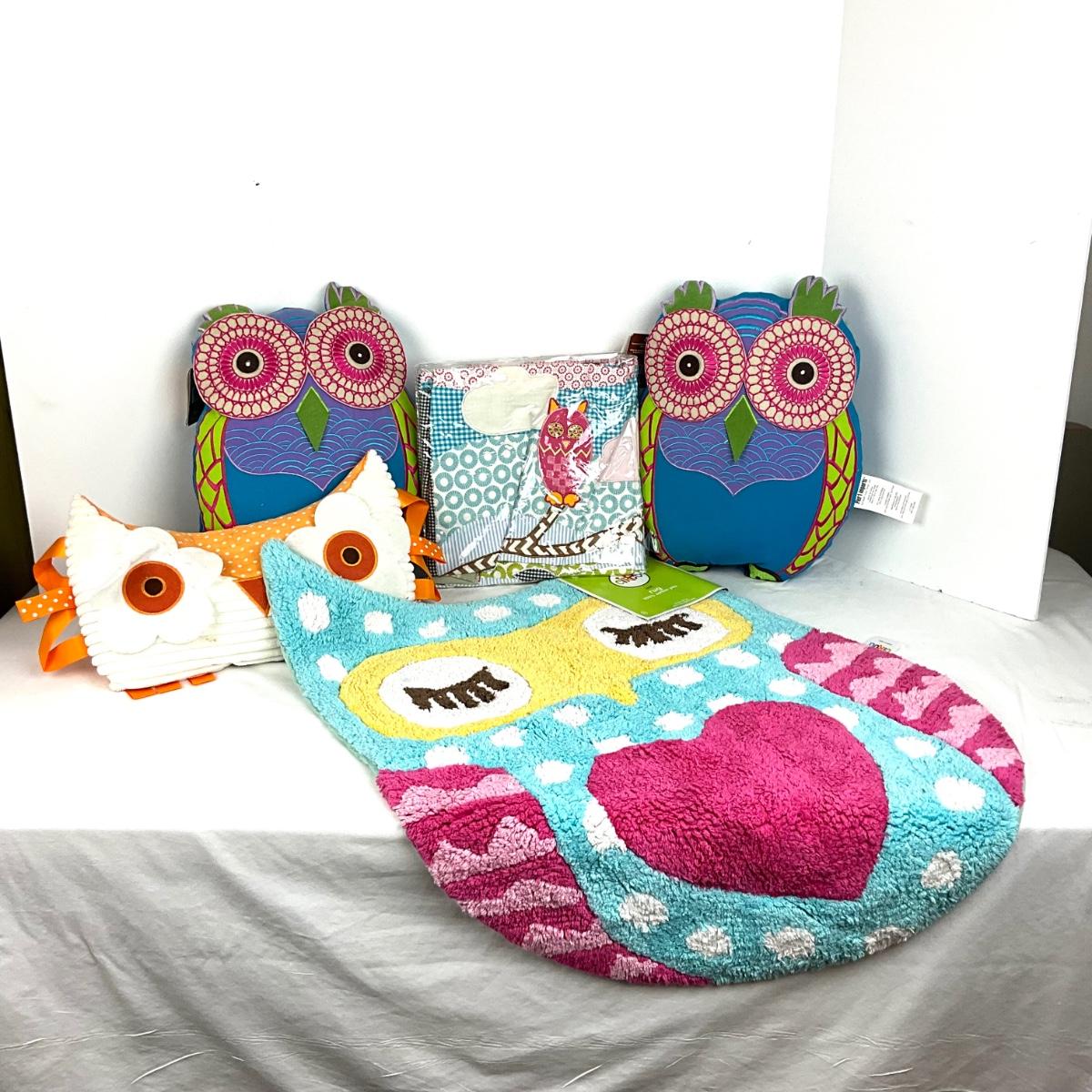 822 Mackenzie Childs "What a Hoot" sham set w/ Pier 1 Owl Pillows , Circa Rug