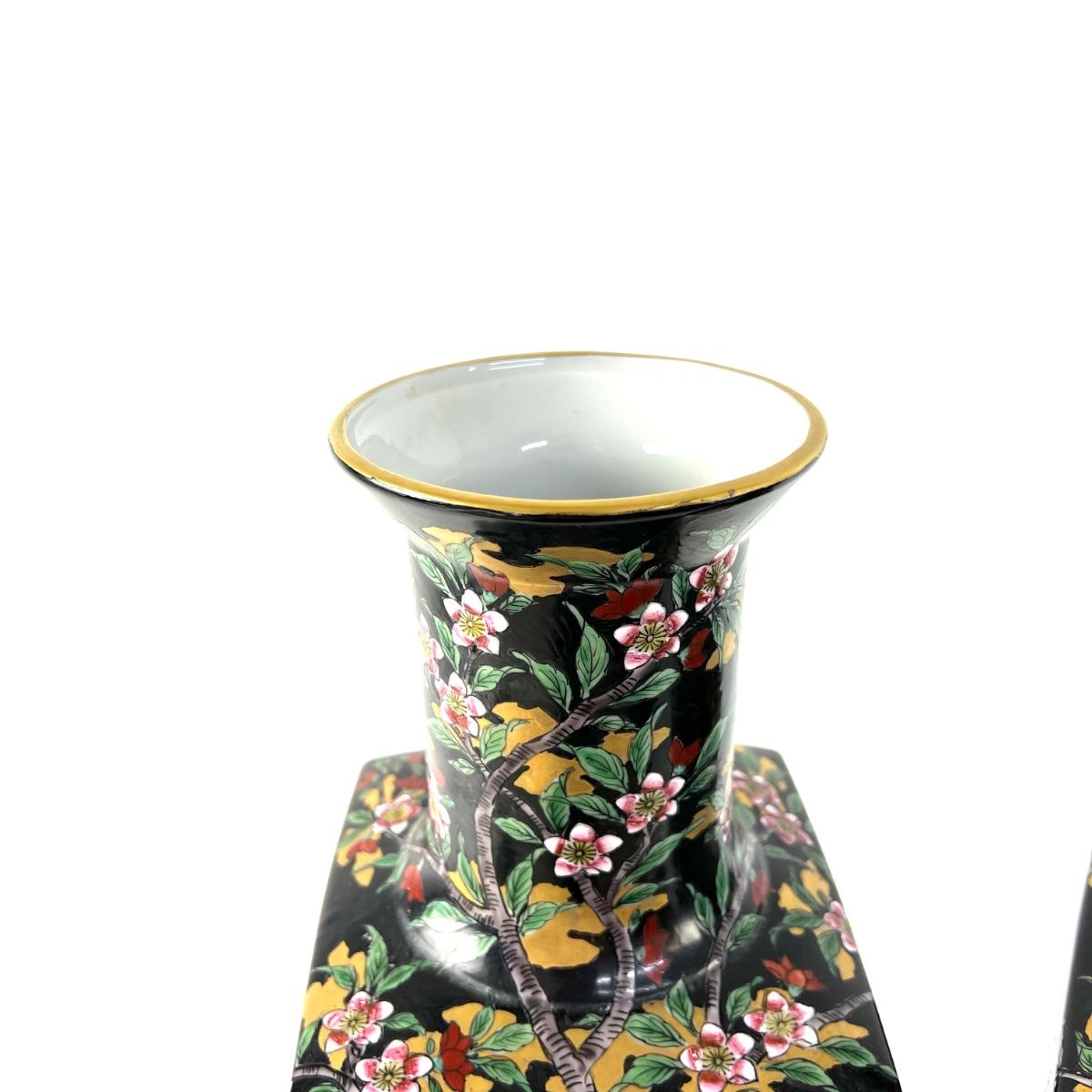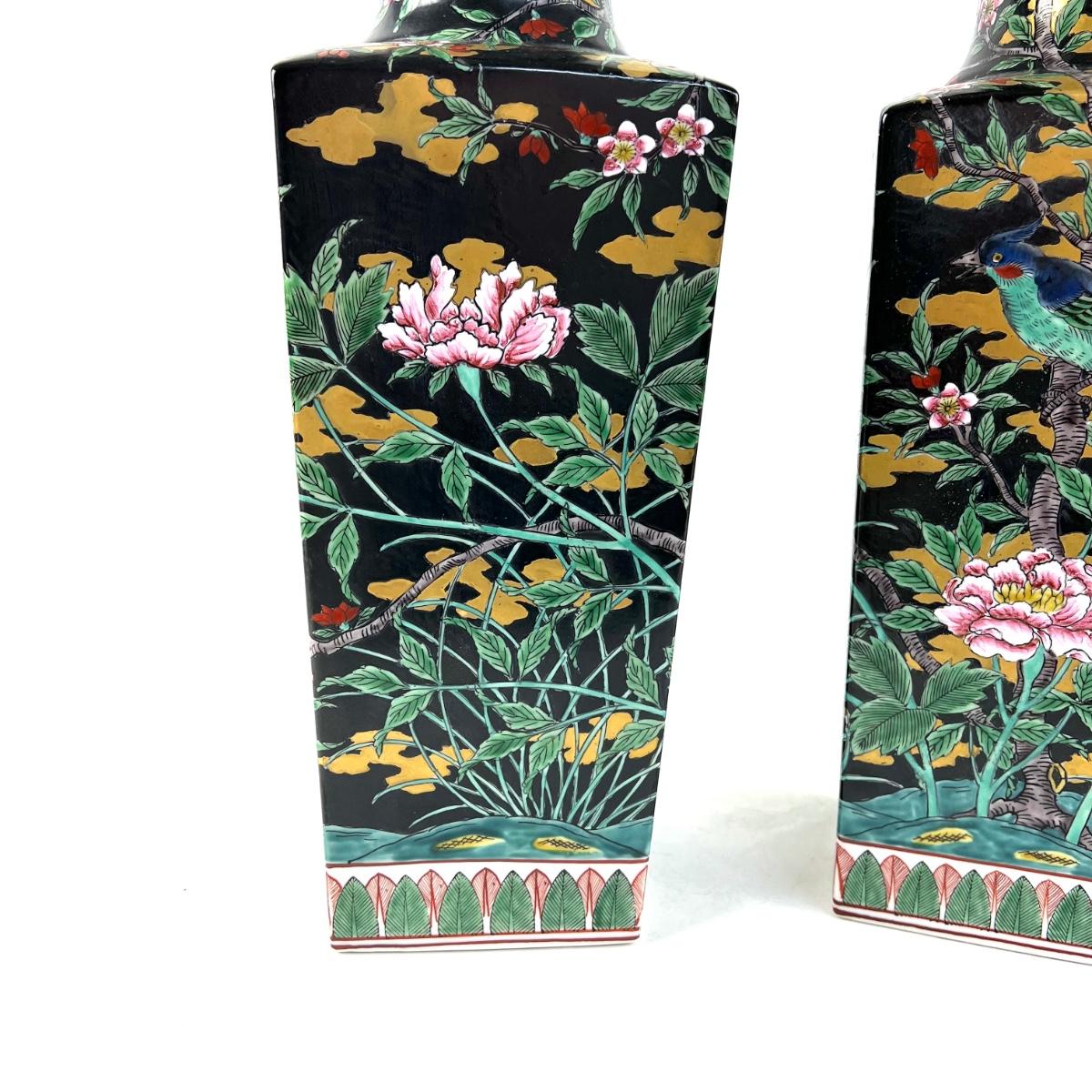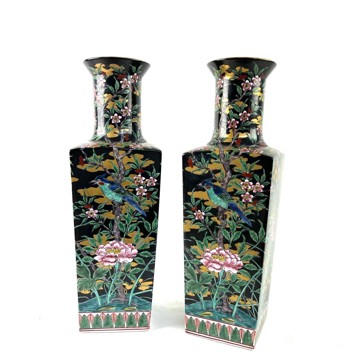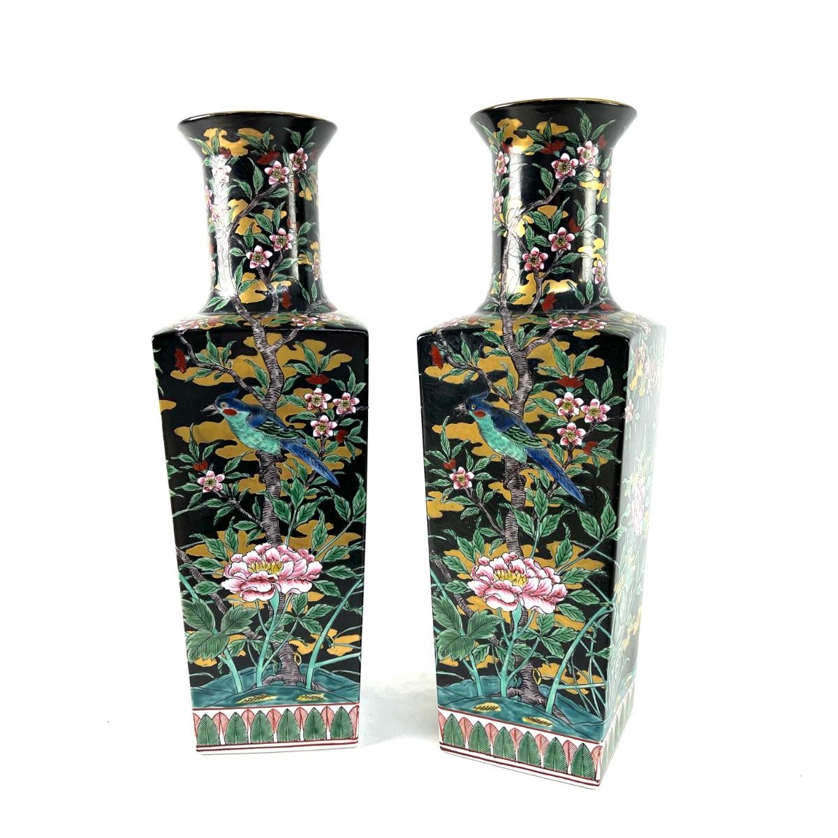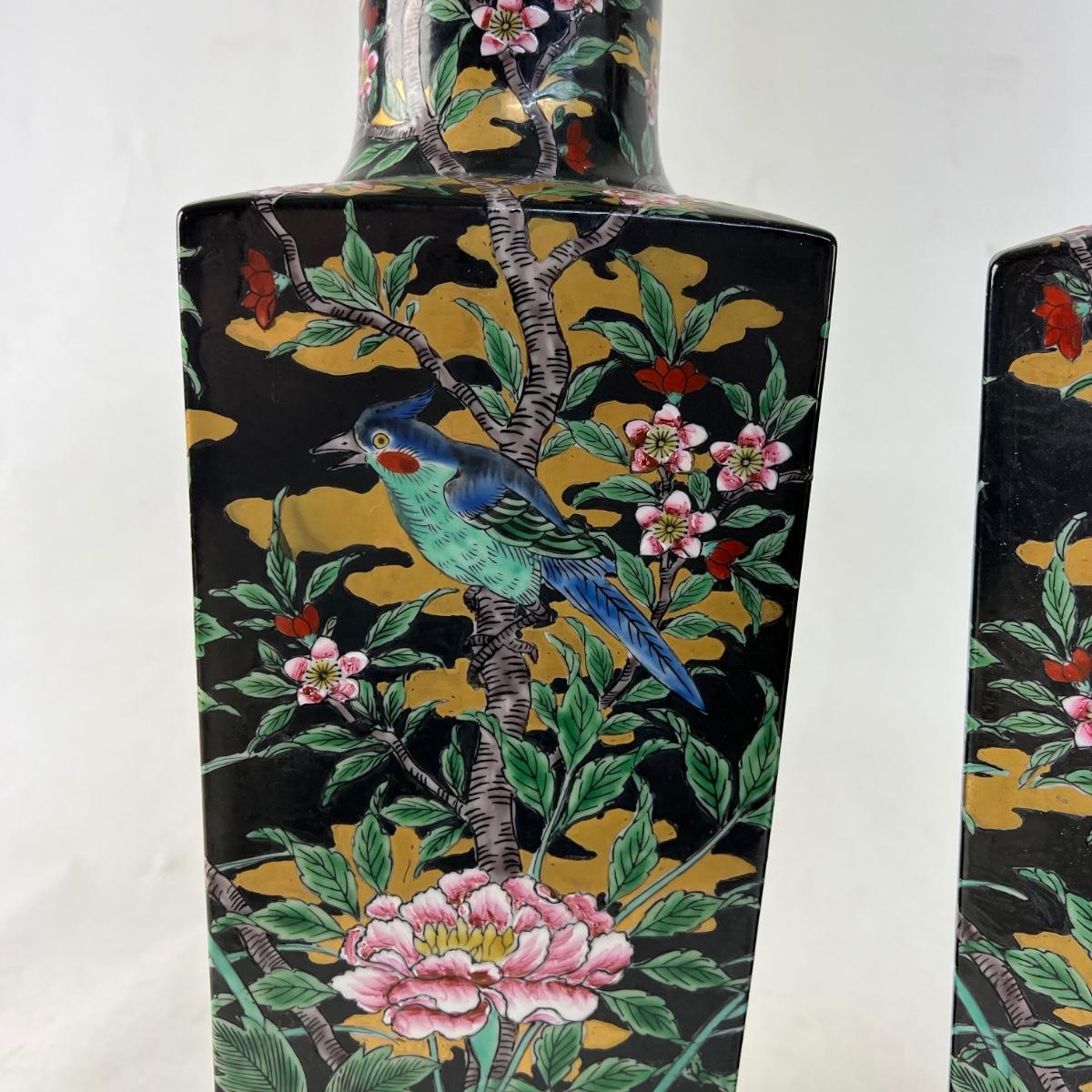 822 Pair of Chinese Bird/Floral Vases