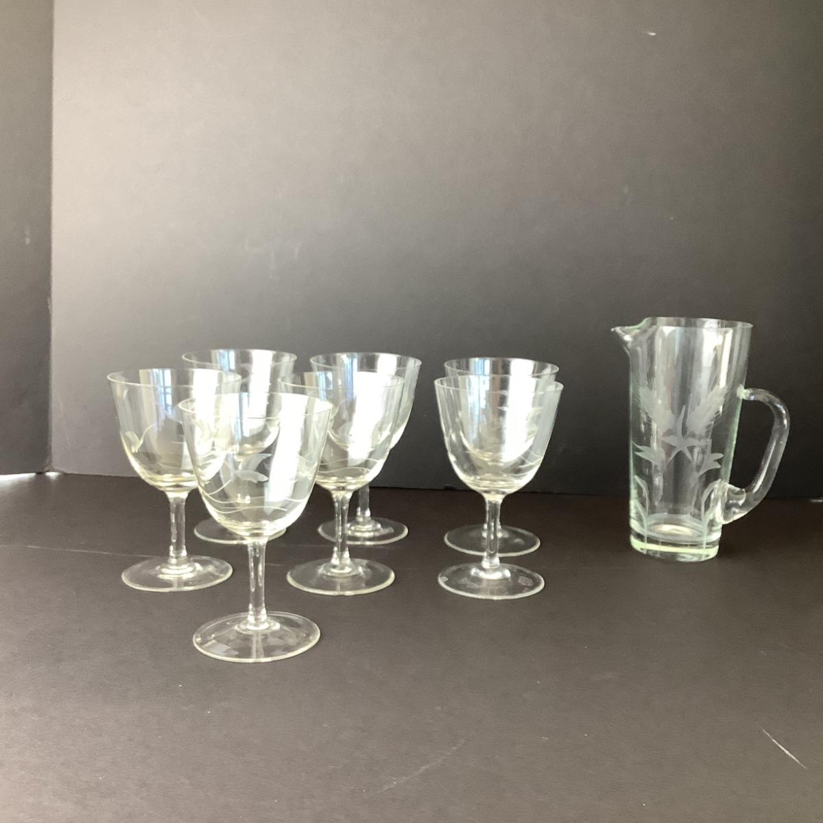 8227 Etched Glass Pitcher with Duck Etched Glasses