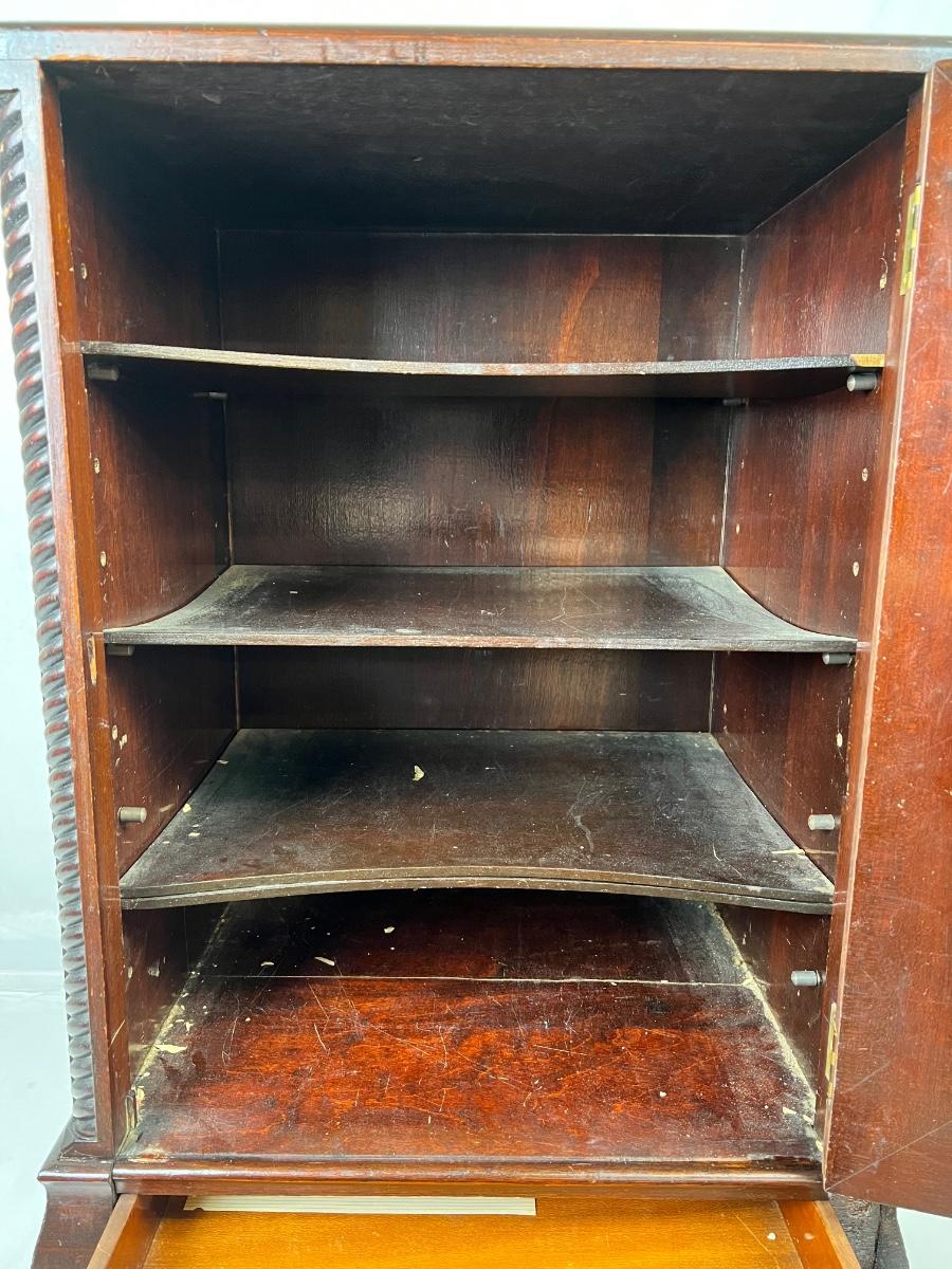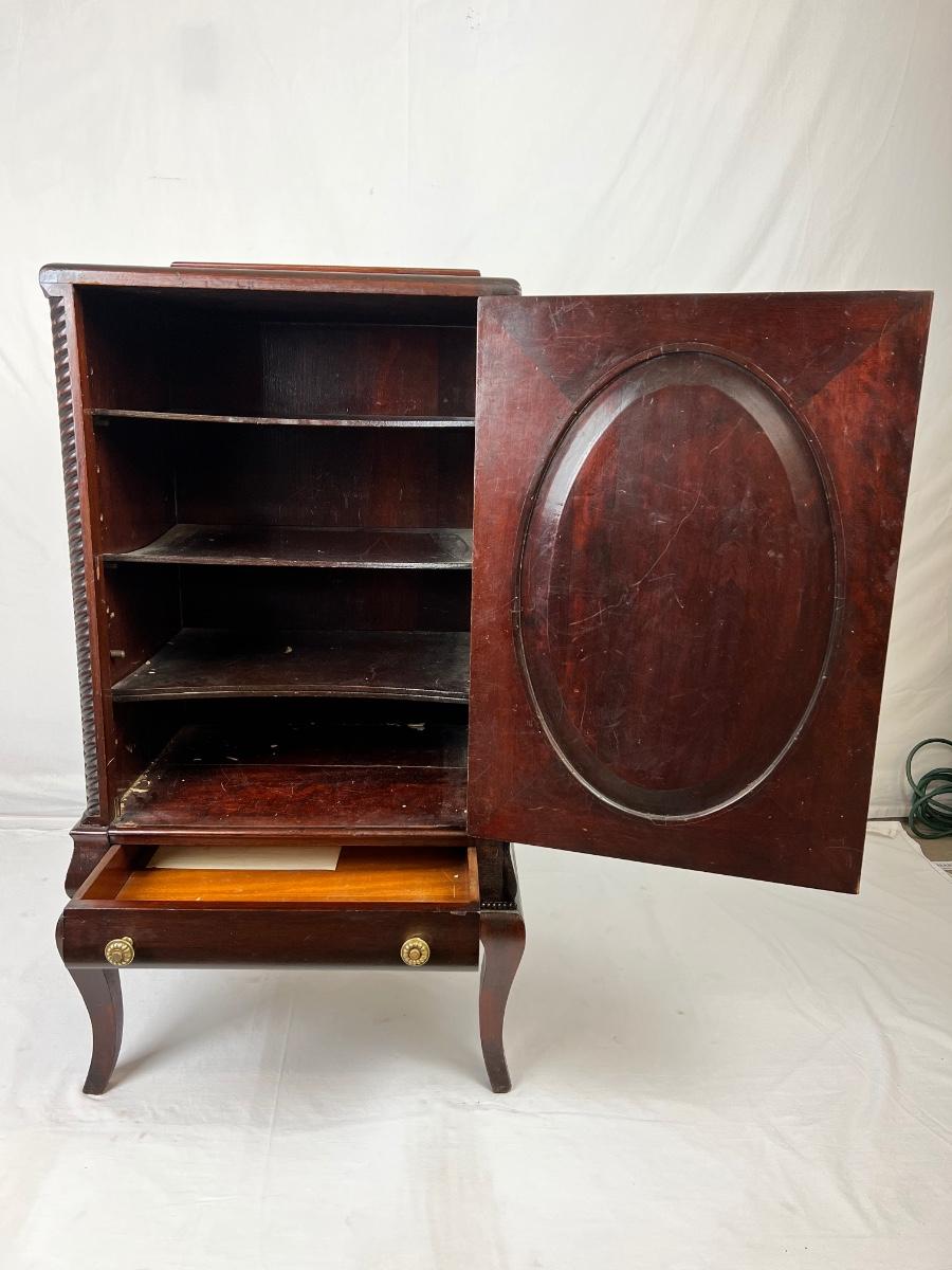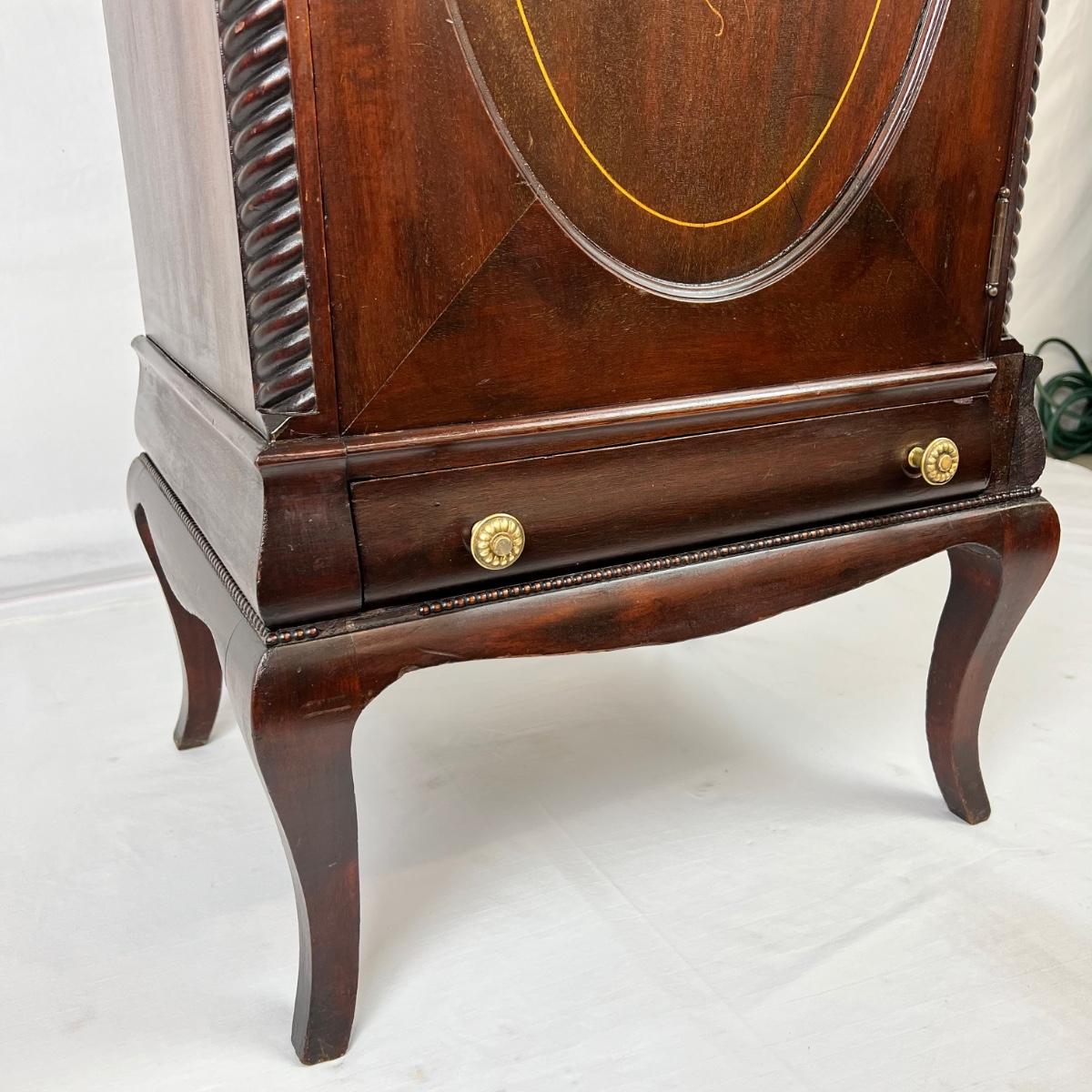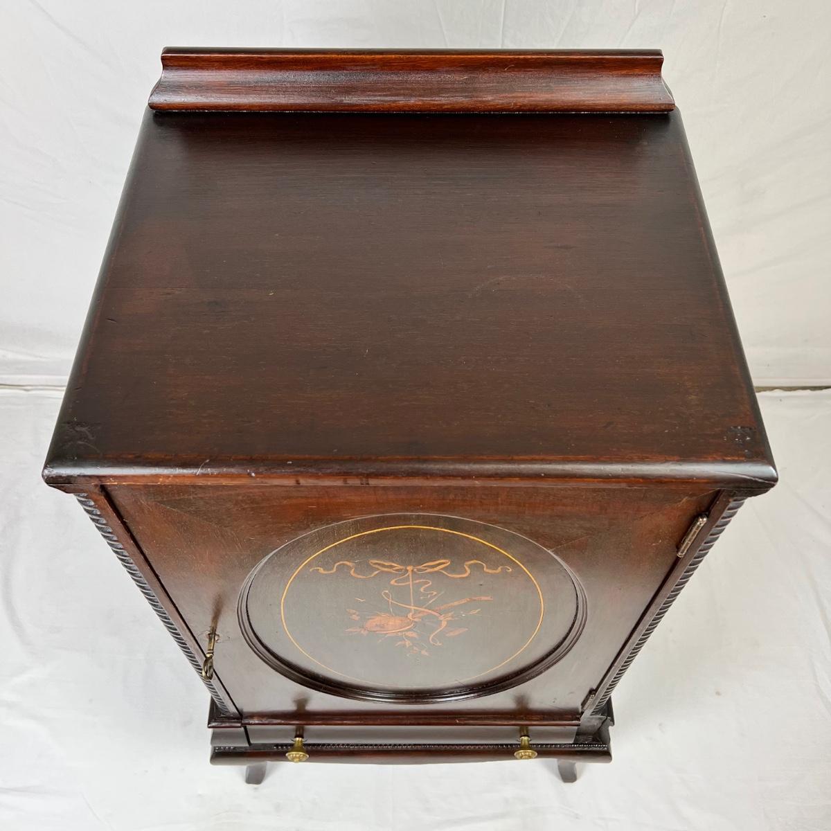 Antique Mahogany Music Cabinet w/Inlay & corner small piece missing.
