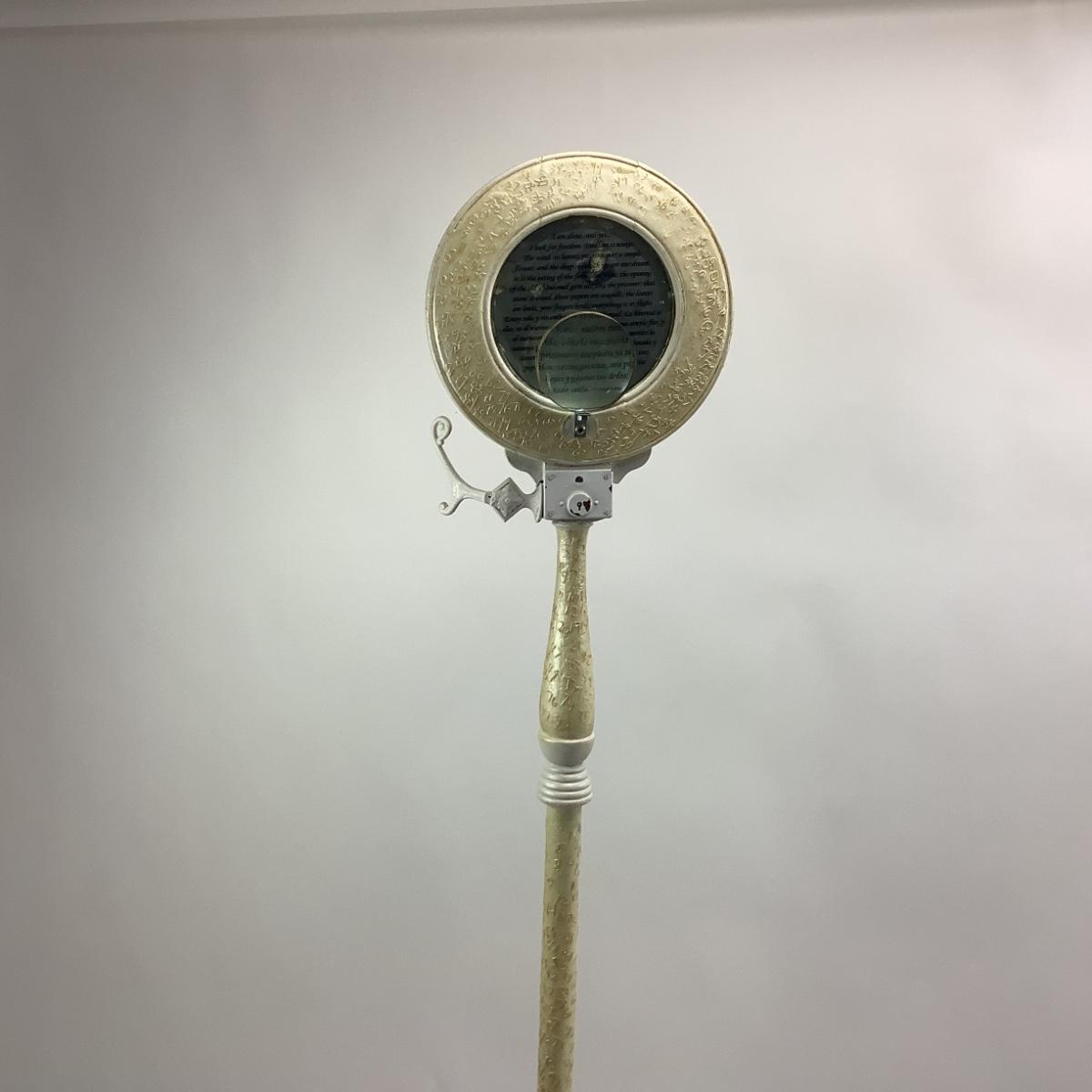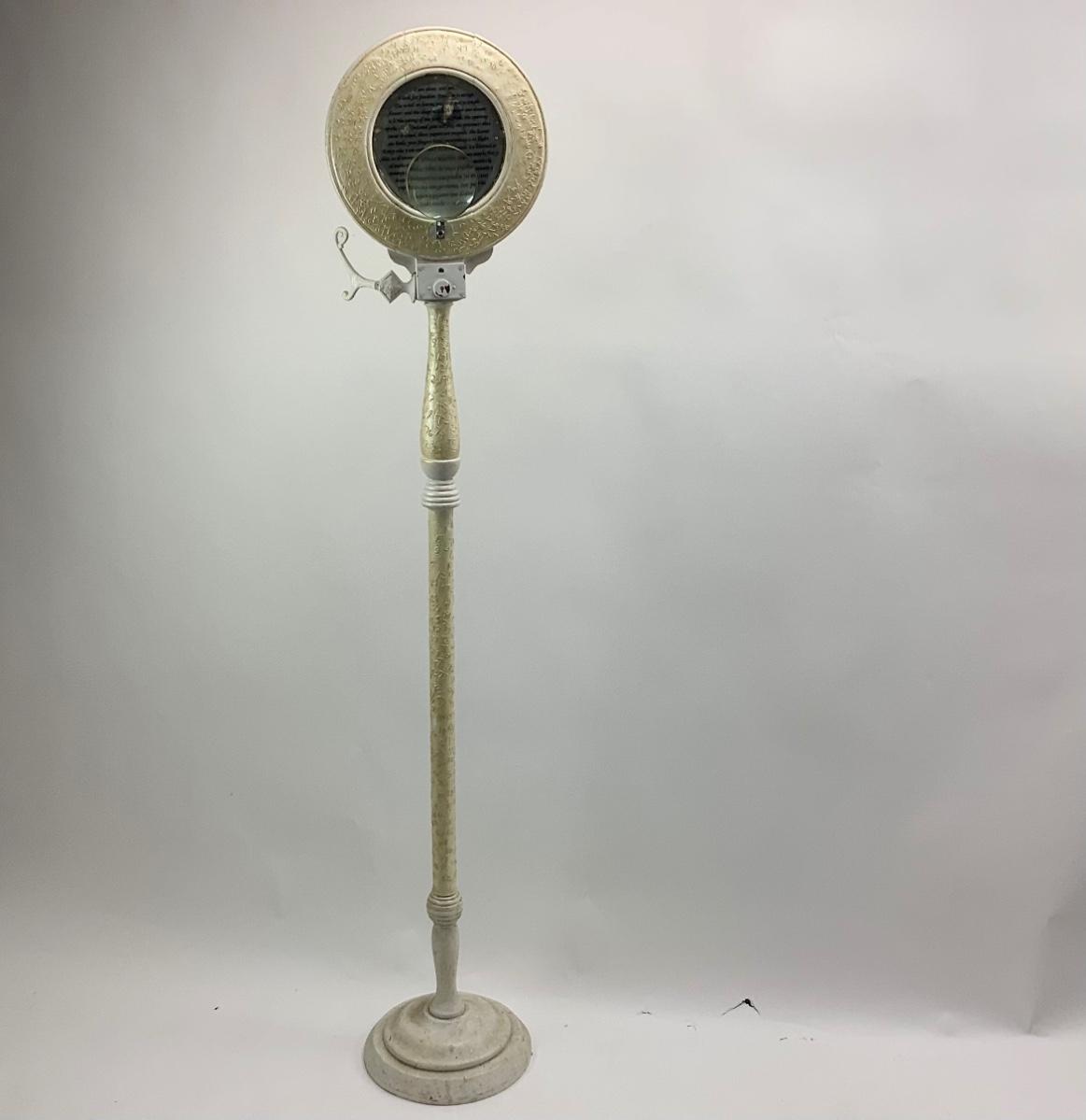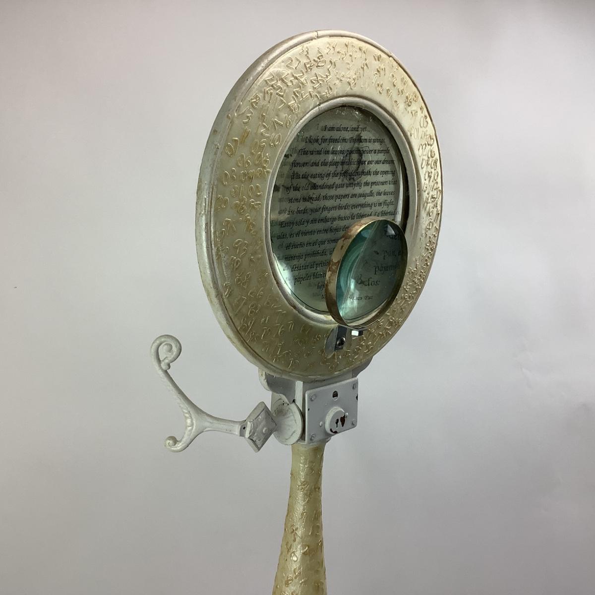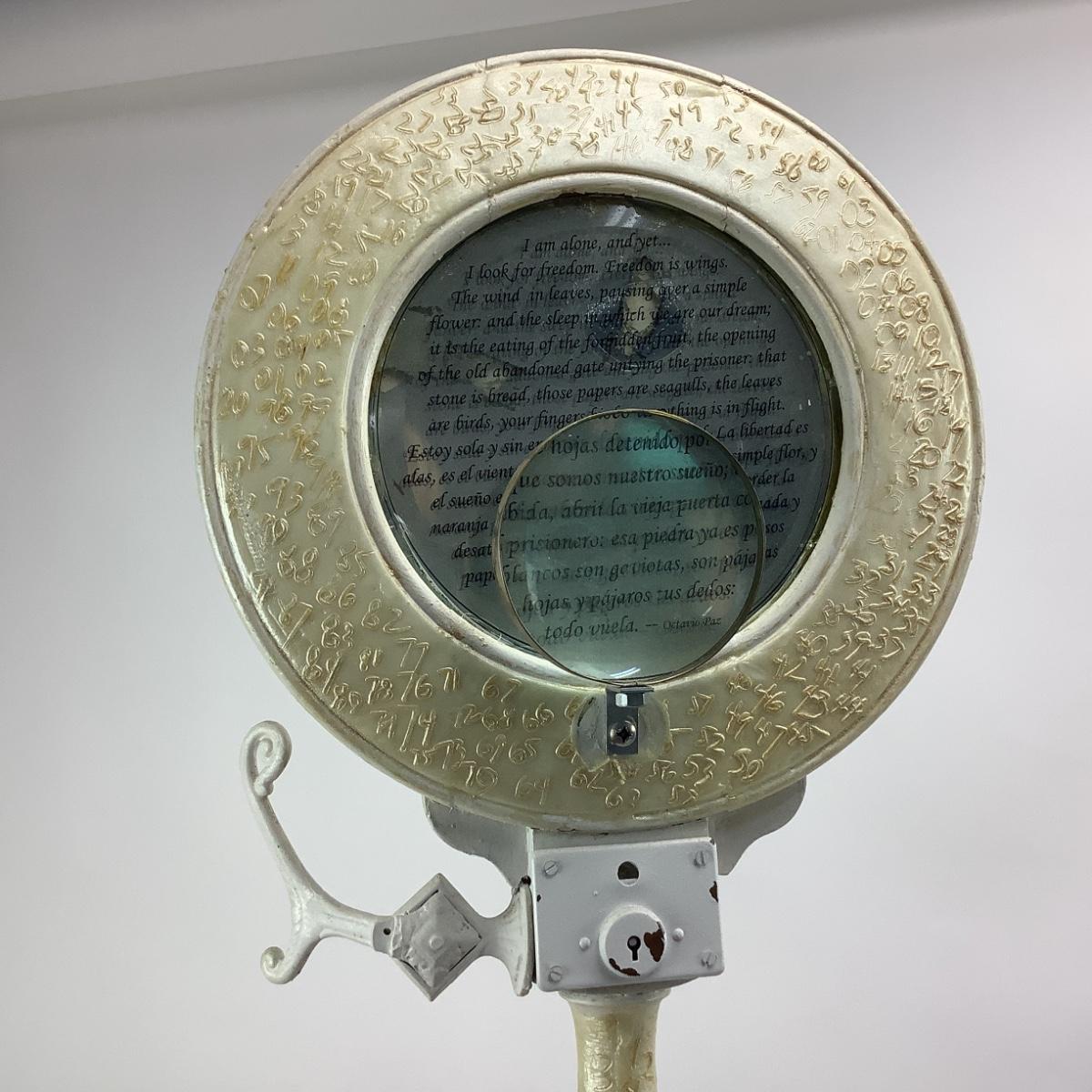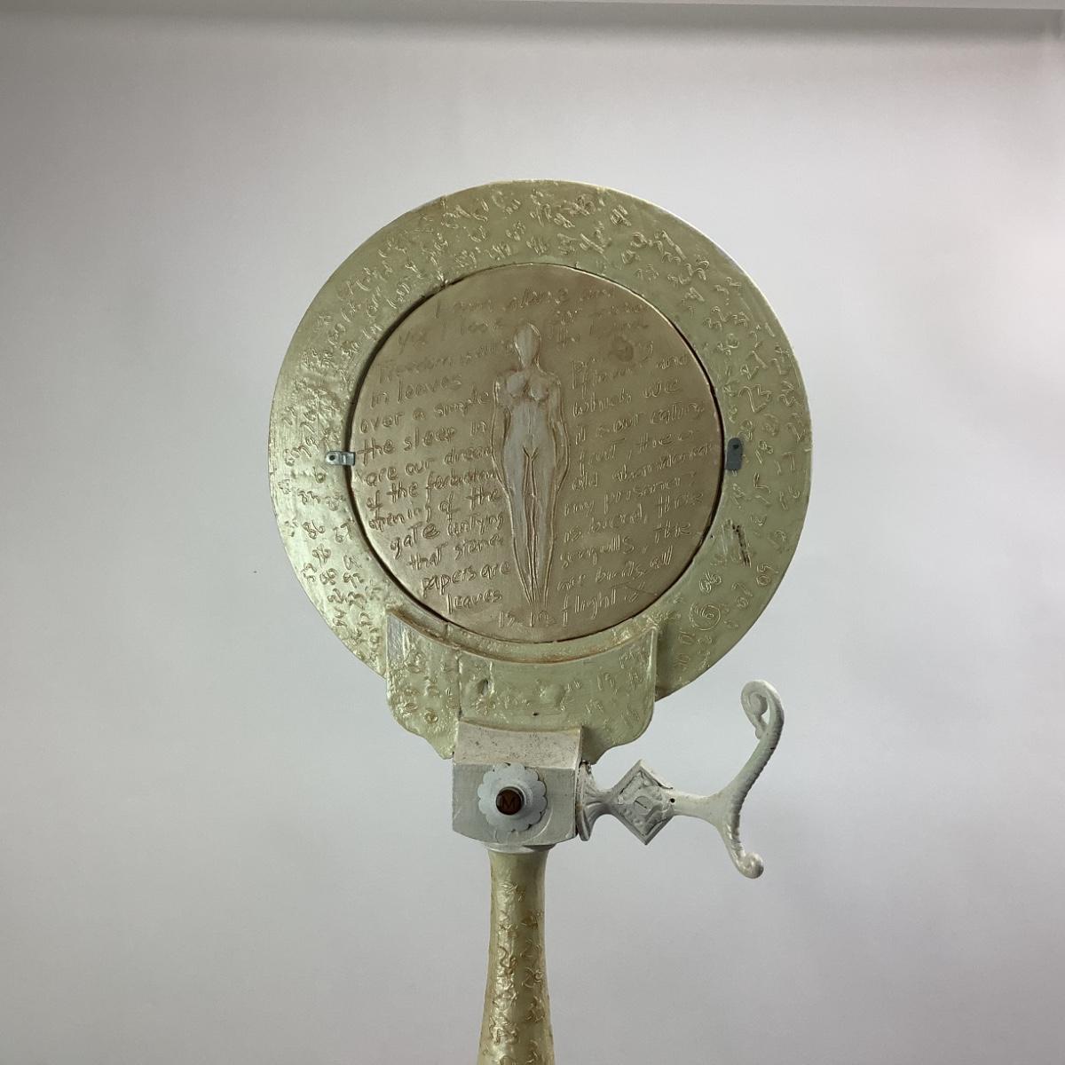 The mixed media artisan piece is signed by artist Santoyo Ruenitz-2006. It measures 65" tall and 12.5" at its widest.