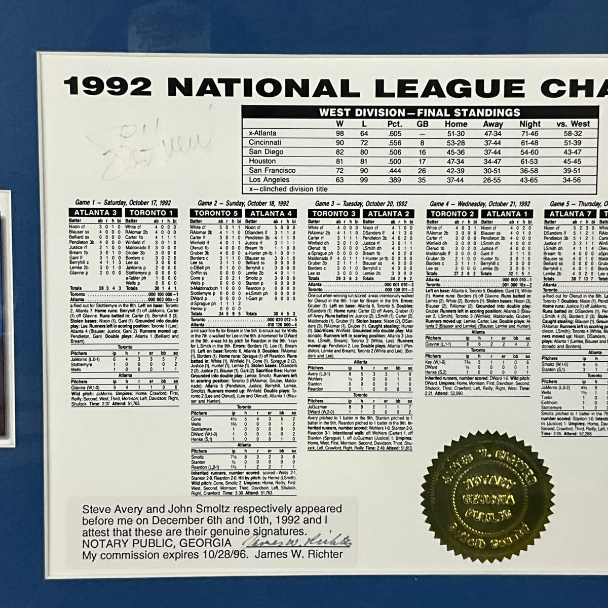 825 Framed And Signed 1992 National League Champions 86/1000 Matted