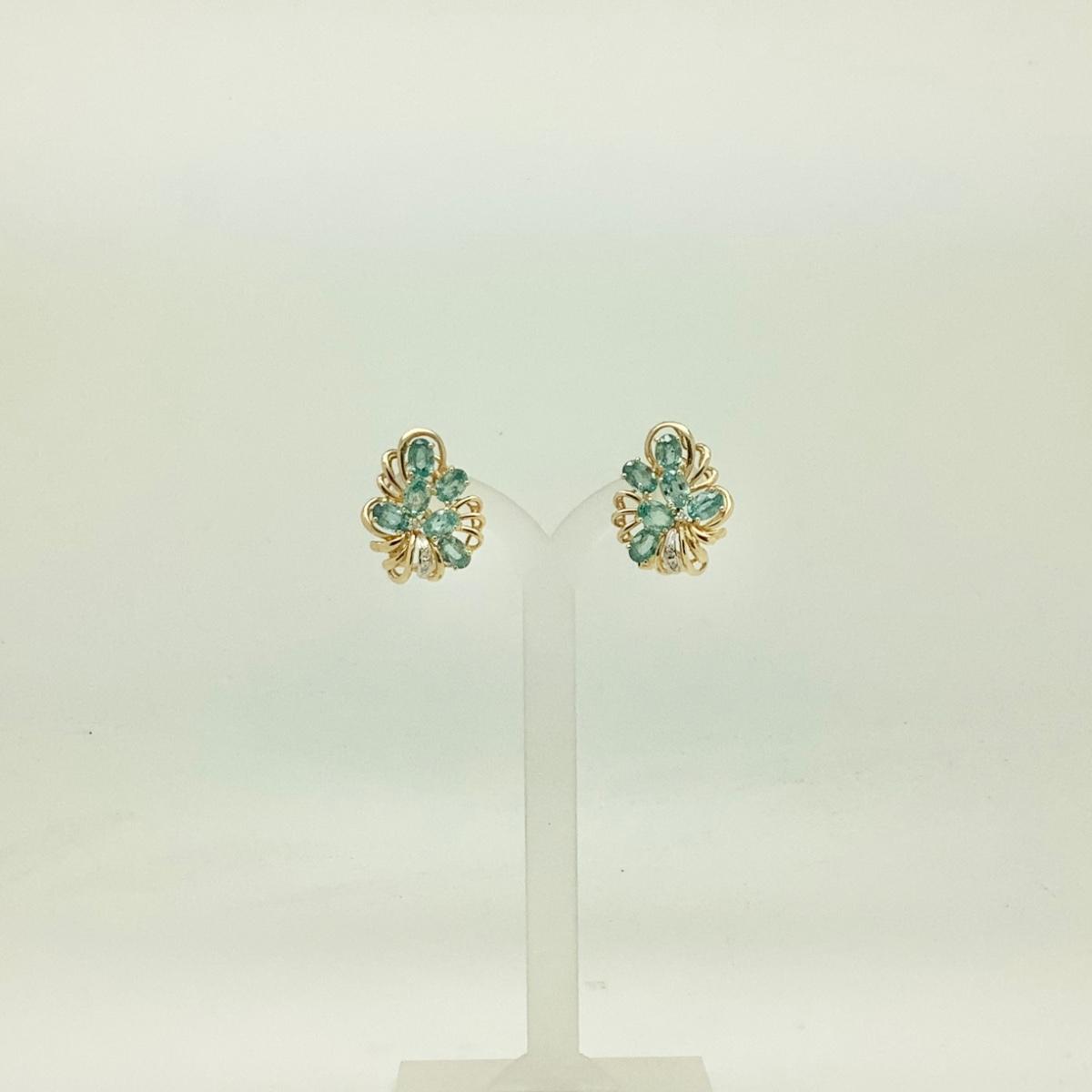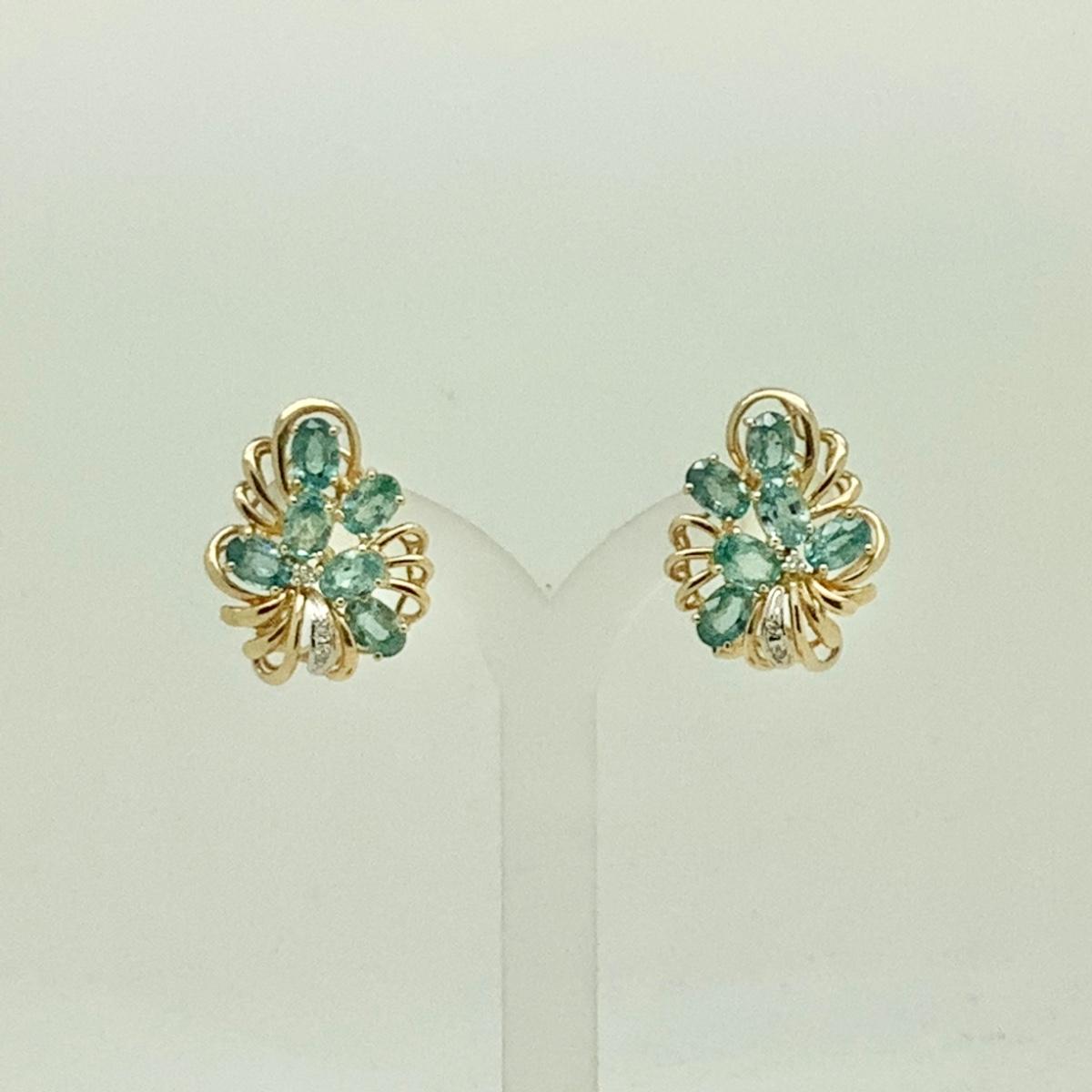 #8254 14K Yellow Gold Blue Topaz and Diamond Cluster Earrings