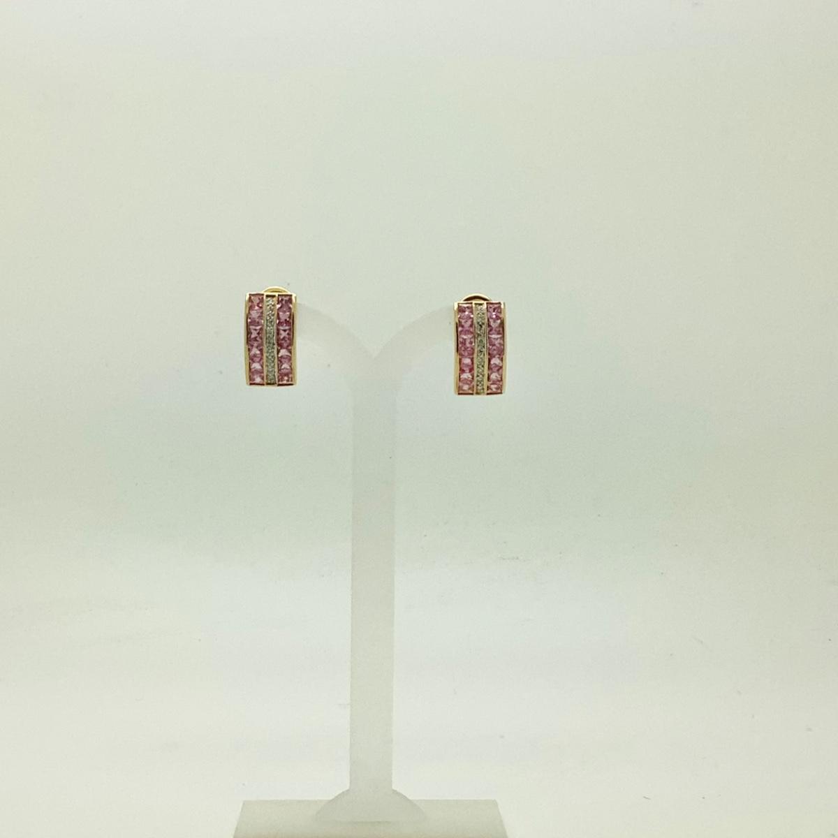 #8258 18K Yellow Gold Pink Sapphire and Diamond Earrings
