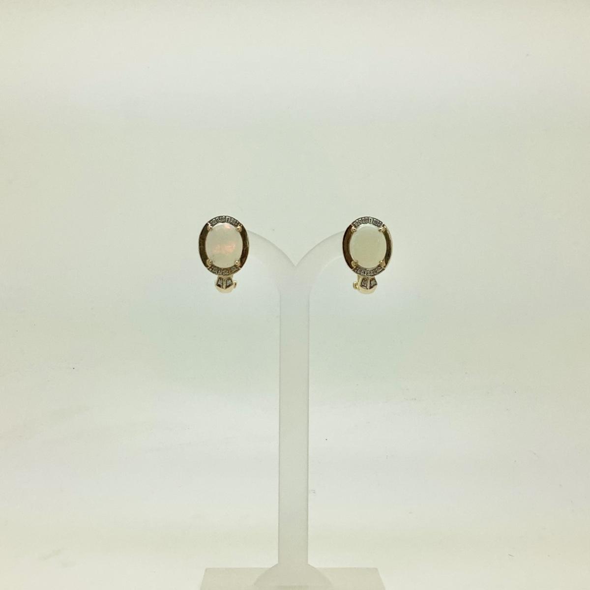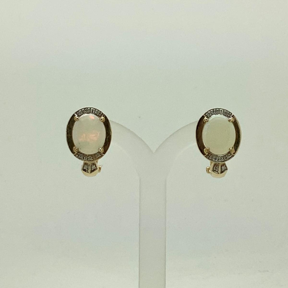 #8263 14K Yellow Gold Opal and Diamond Earrings