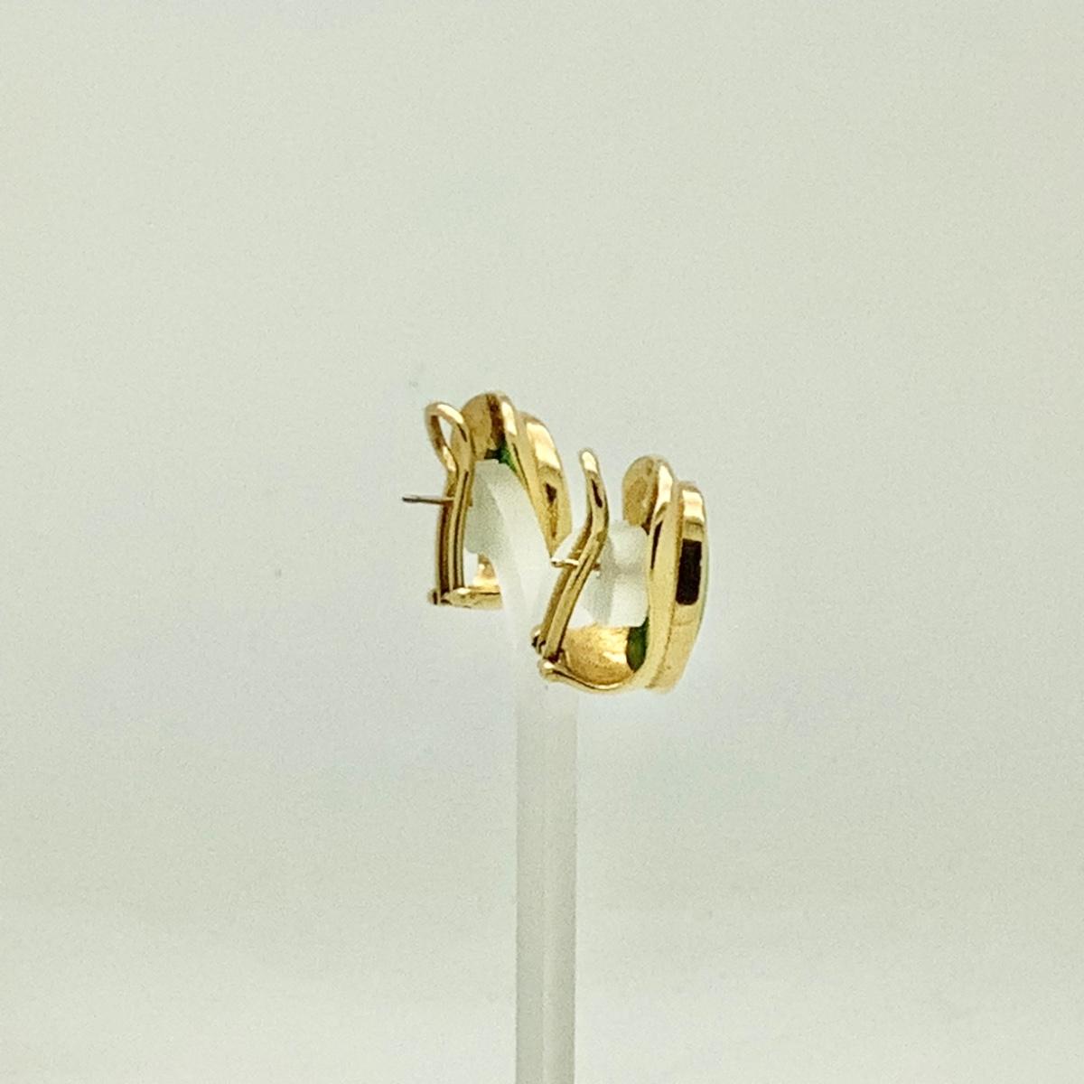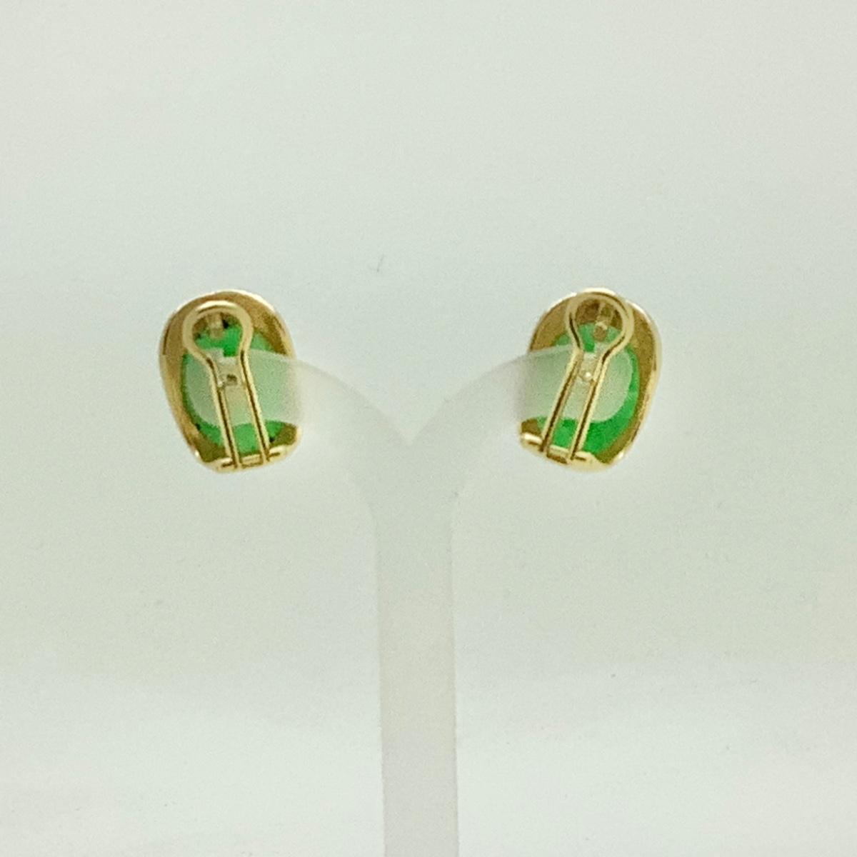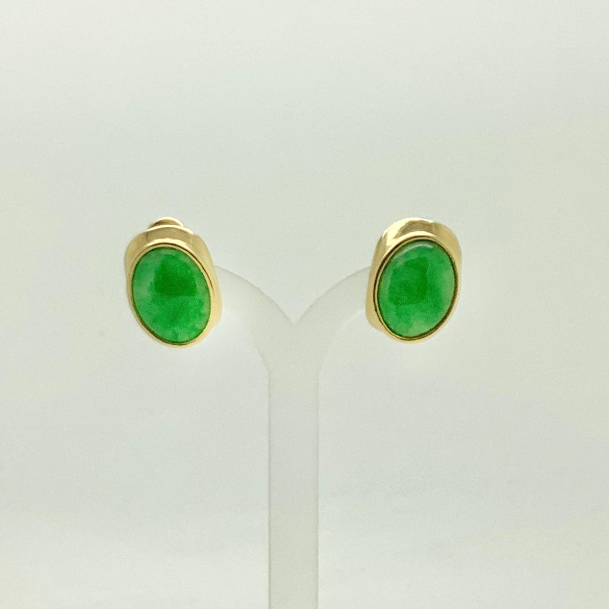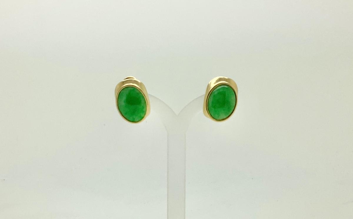 14k yellow gold post/lever back earrings with 2 bezel set oval jades, measuring 3/4" long x 1/2" wide, weighing 12.7gr.