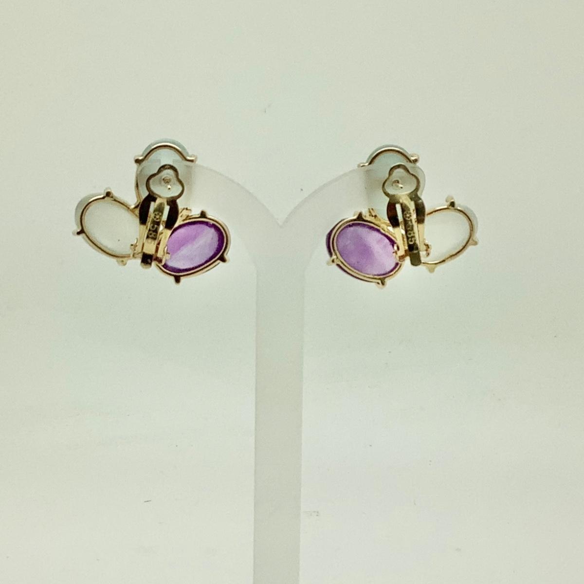 #8272 14K Yellow Gold Purple, Green, White Jade Earrings