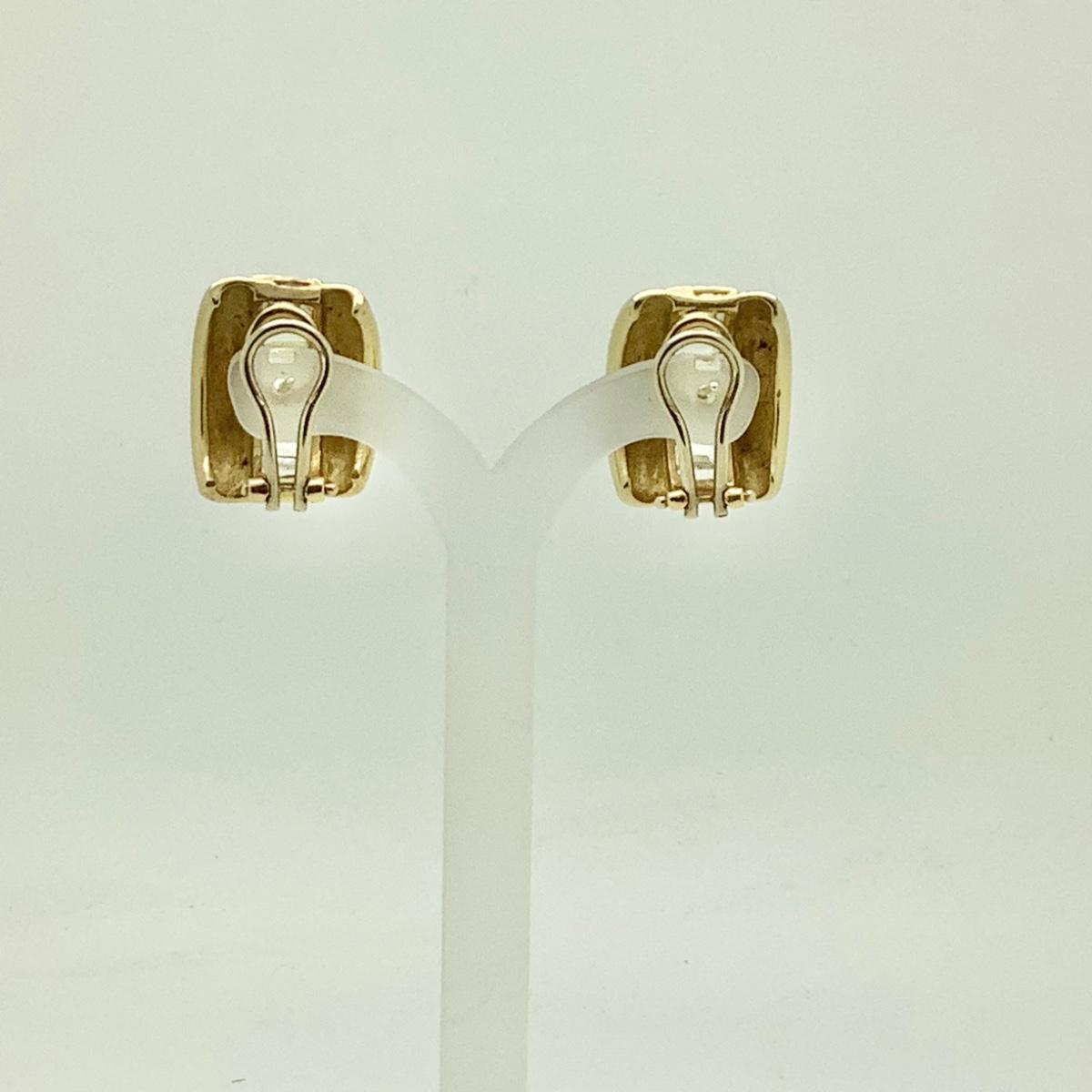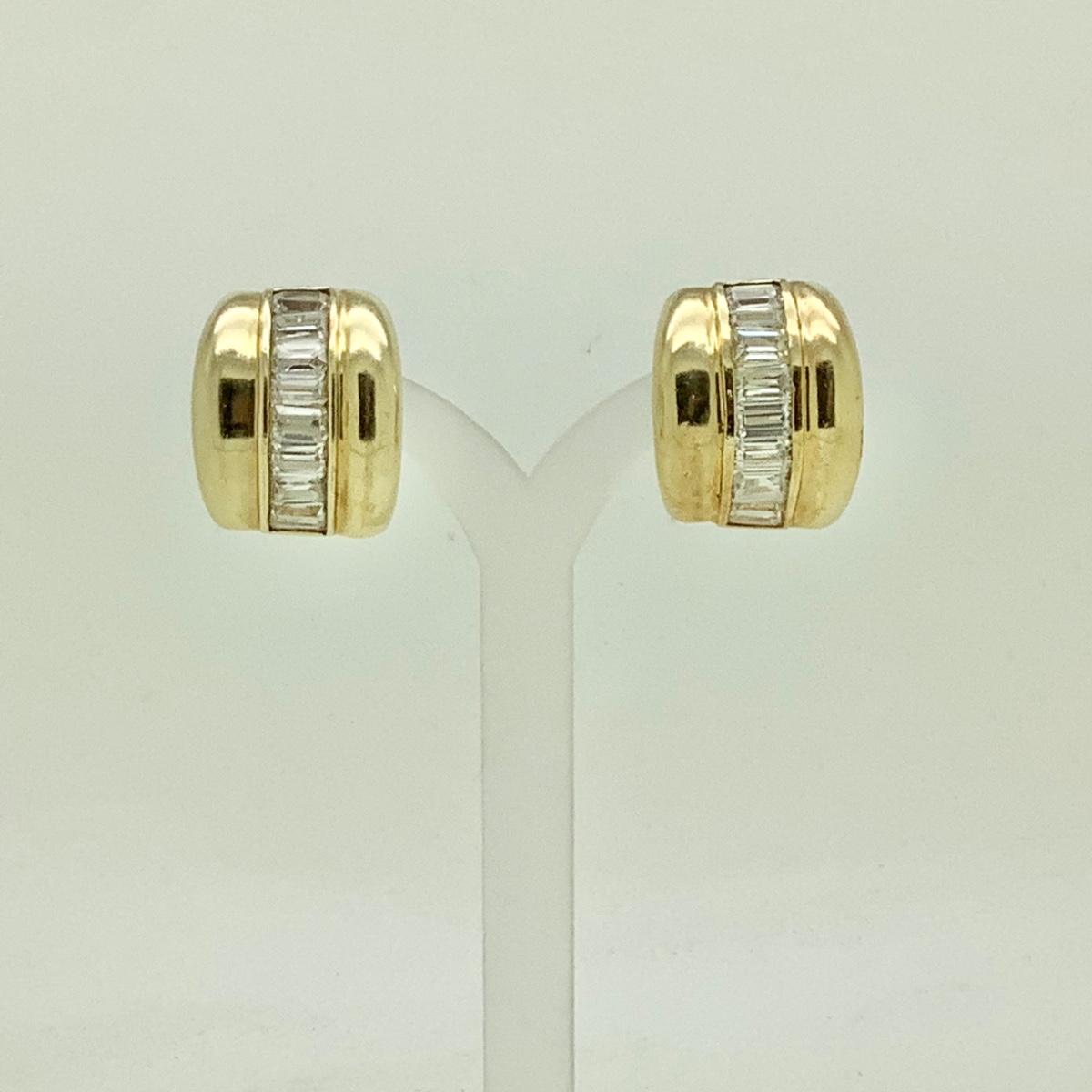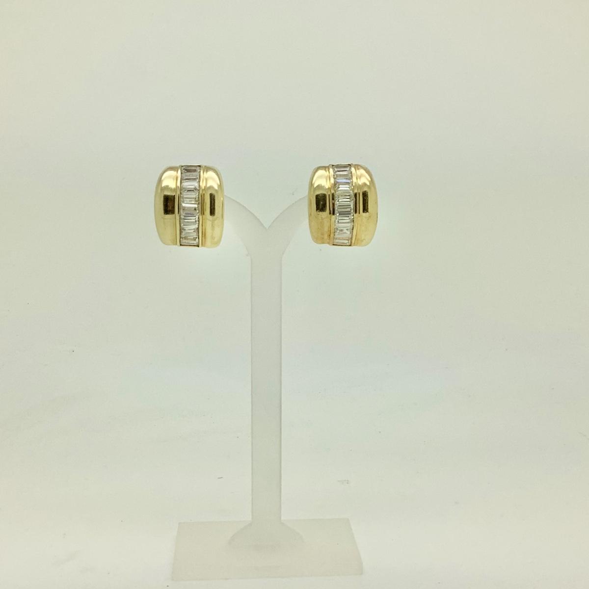 14k yellow gold wide band hoop earrings with post/lever backs, channel set rectangular cubic zirconias (16), measuring approx 13/16" long x 11/16" wide, weighing 15.3gr.