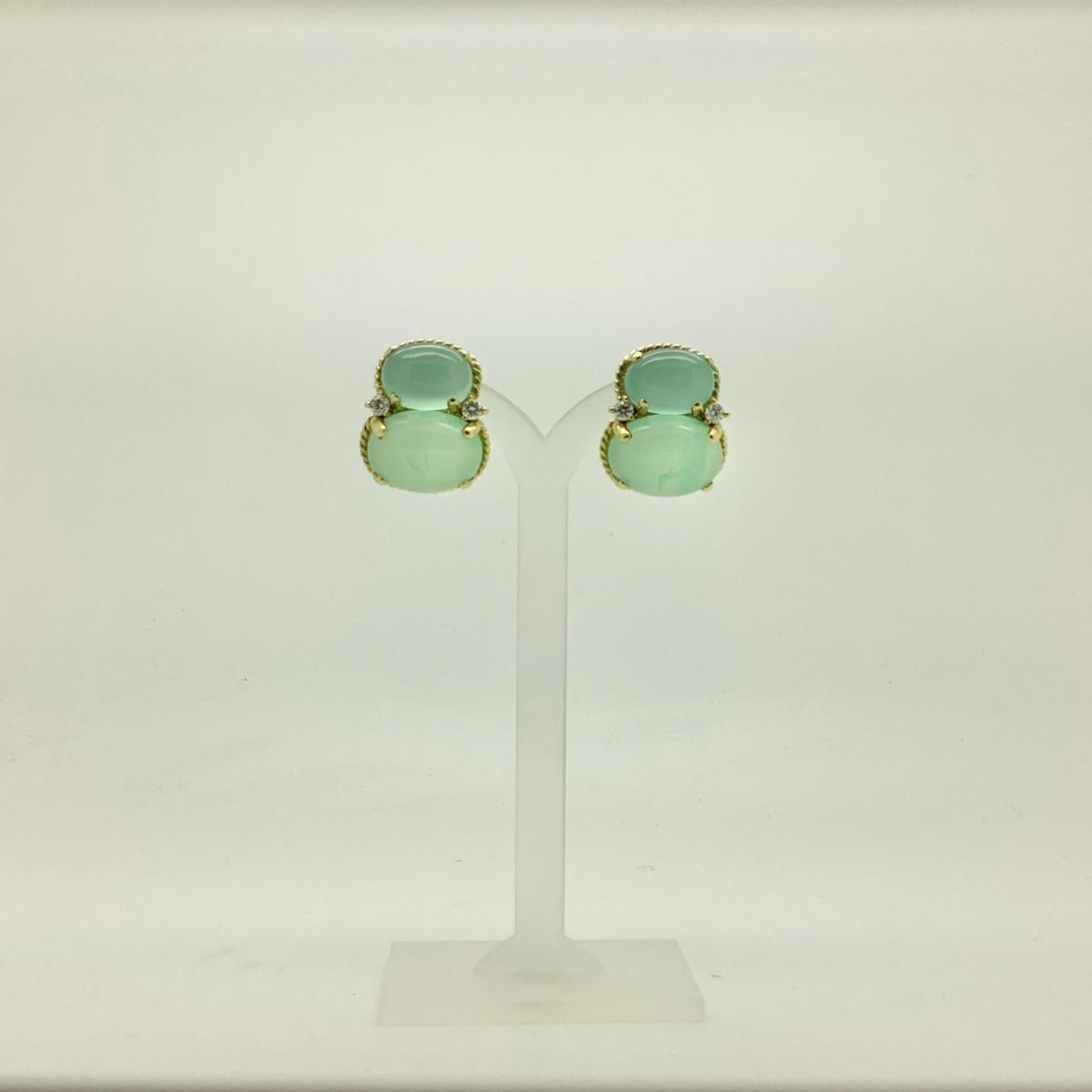 #8275 18K Yellow Gold Jade and Diamond Earrings