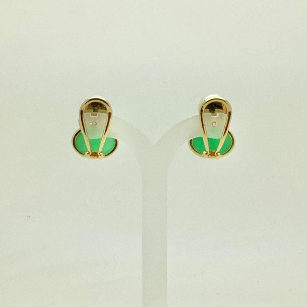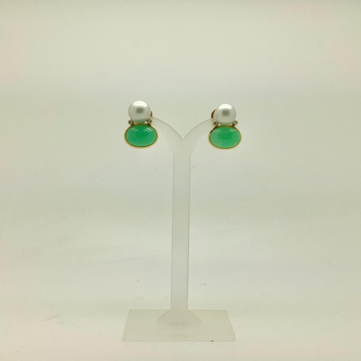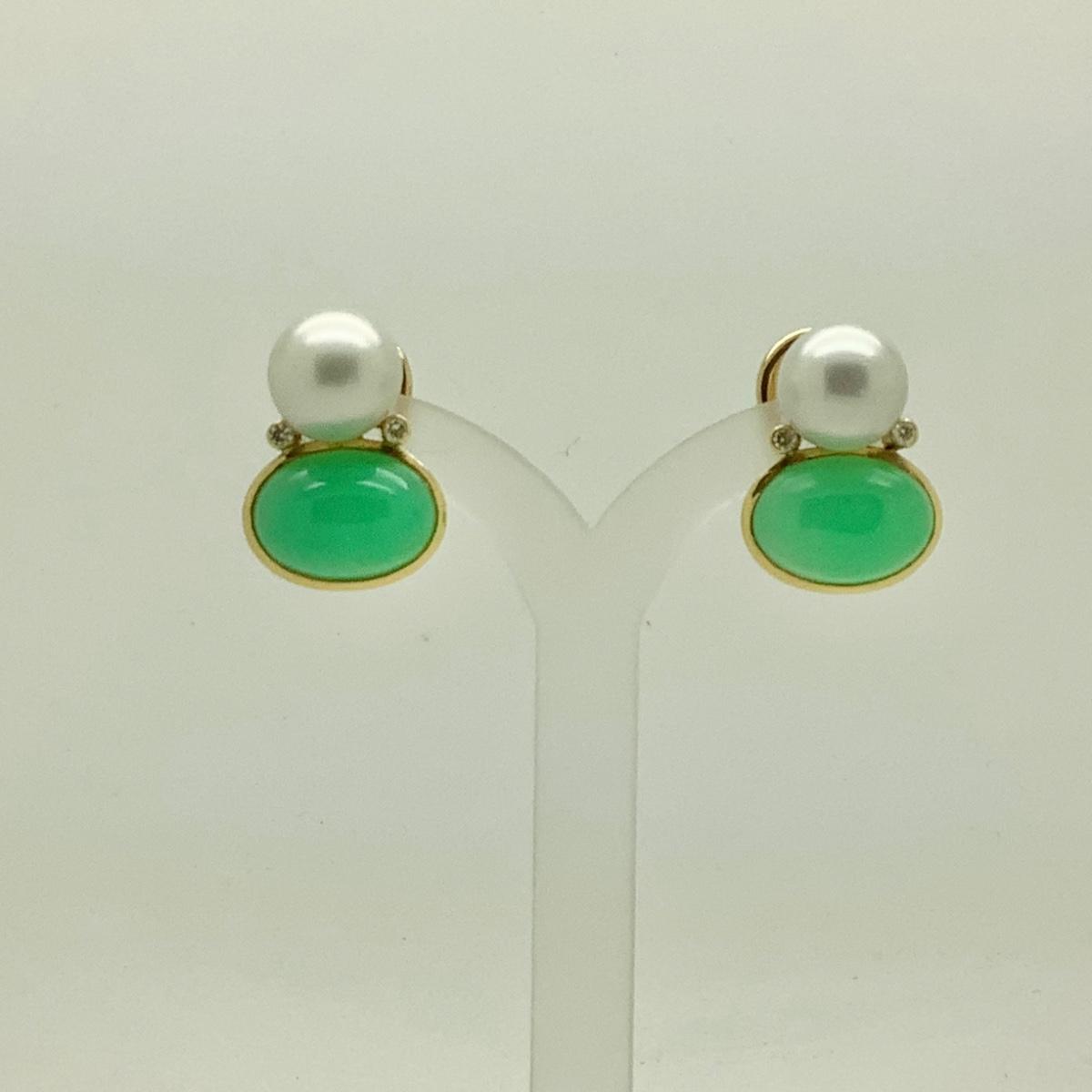 #8277 18K Yellow Gold Pearl, Jade and Diamond Earrings
