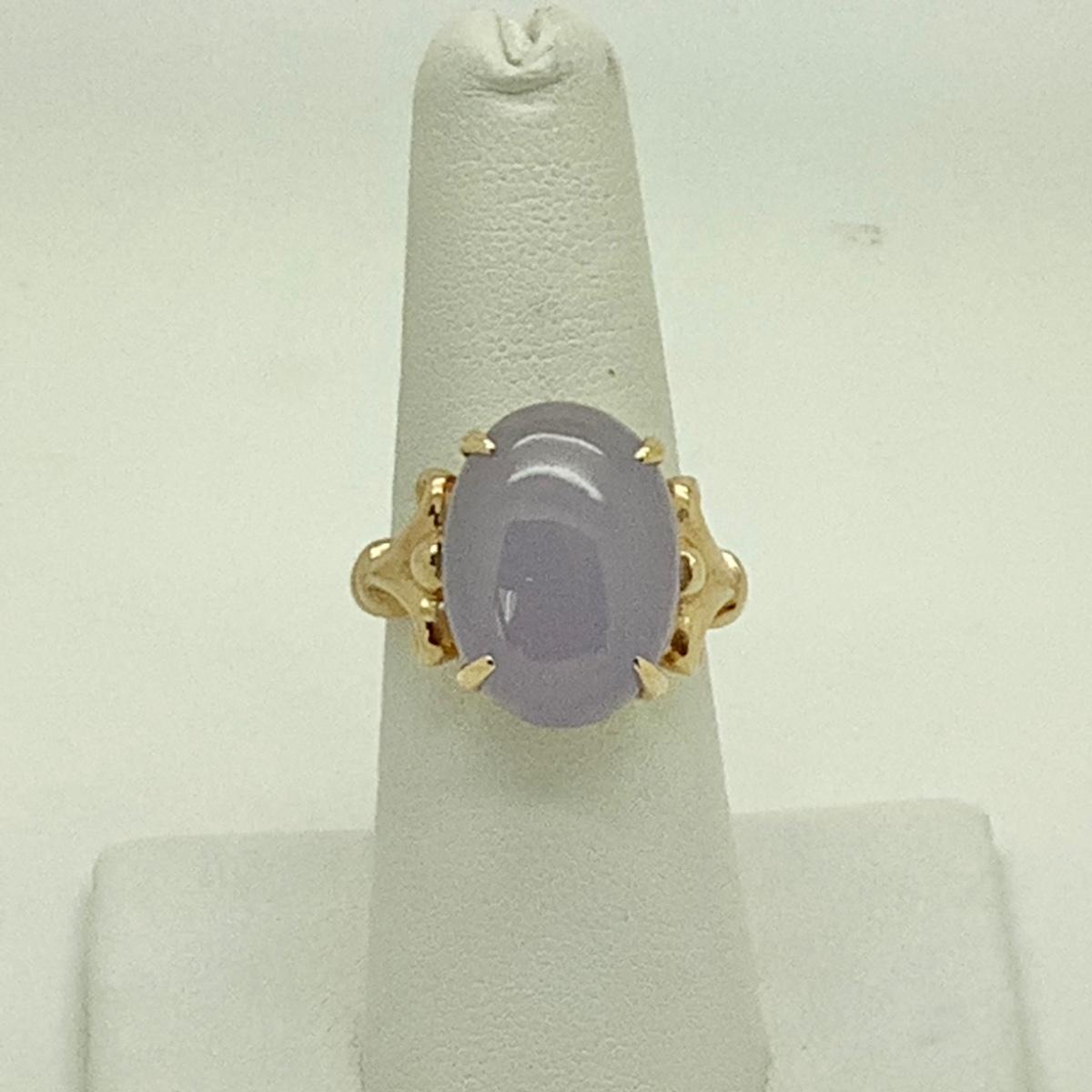 #8287 14K Yellow Gold Purple Jade Ladies Ring