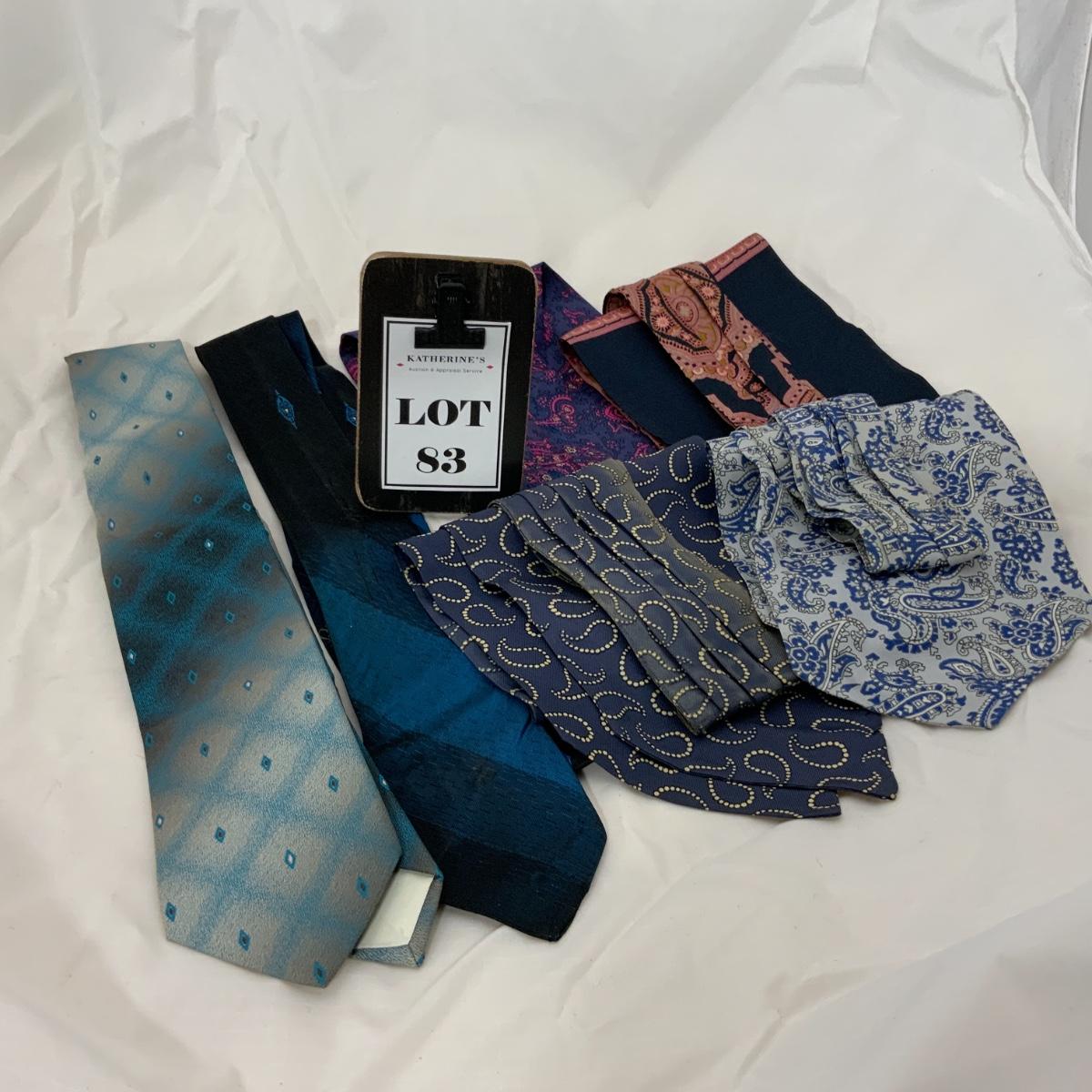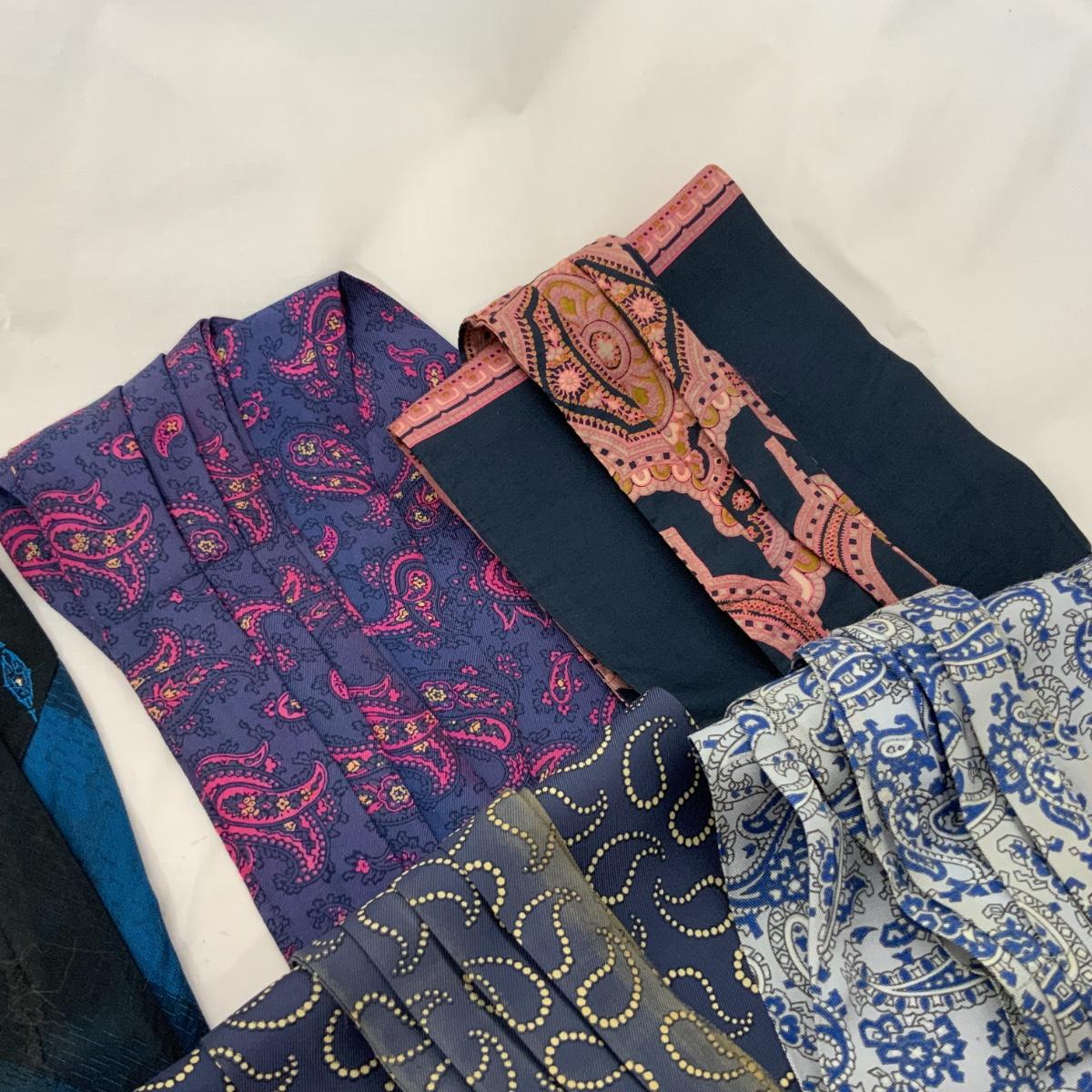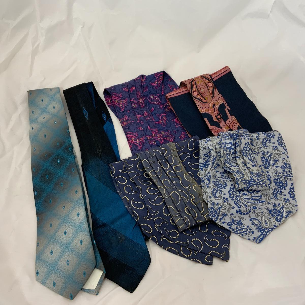 From the Estate of Peter Radovanovich: Four Vintage Silk Ascots and Two Silk Ties. There is some discoloration on the ascots from the part that goes around your neck. Overall they are in great used condition. Please see photos for details and condition. ::: Shipping is available on this lot. If you require shipping you must let us know at the close of the auction. We will coordinate with you after the item has been won. Shipping fees will include insurance up to or exceeding the value of all items being mailed. If you have any questions regarding this lot please contact the auctioneer either via this website, by direct email or by phone. PICK UP TIMES and other important information can be found in the TERMS and DESCRIPTION of the auction. Please take a look for pertinent information. Thanks!