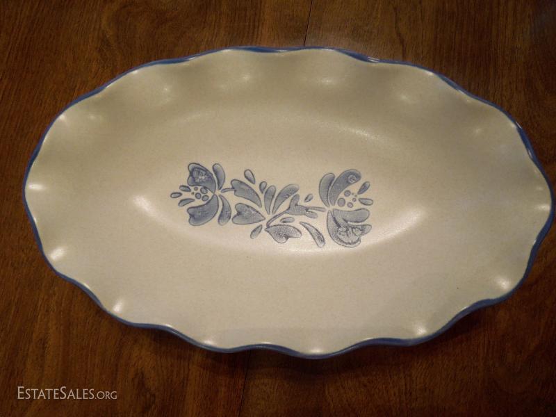12" Rectangular serving dish, 10" oval serving dish, 12" oval serving dish (stained)