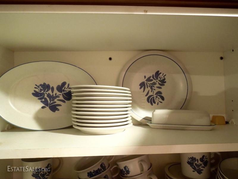 12 dinner plate, 12 smal\ll bowls, 12 saucers, 12 handled soup mugs, 12 6.5" plates, 5 bowls