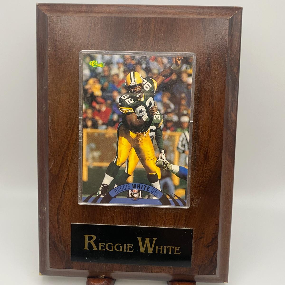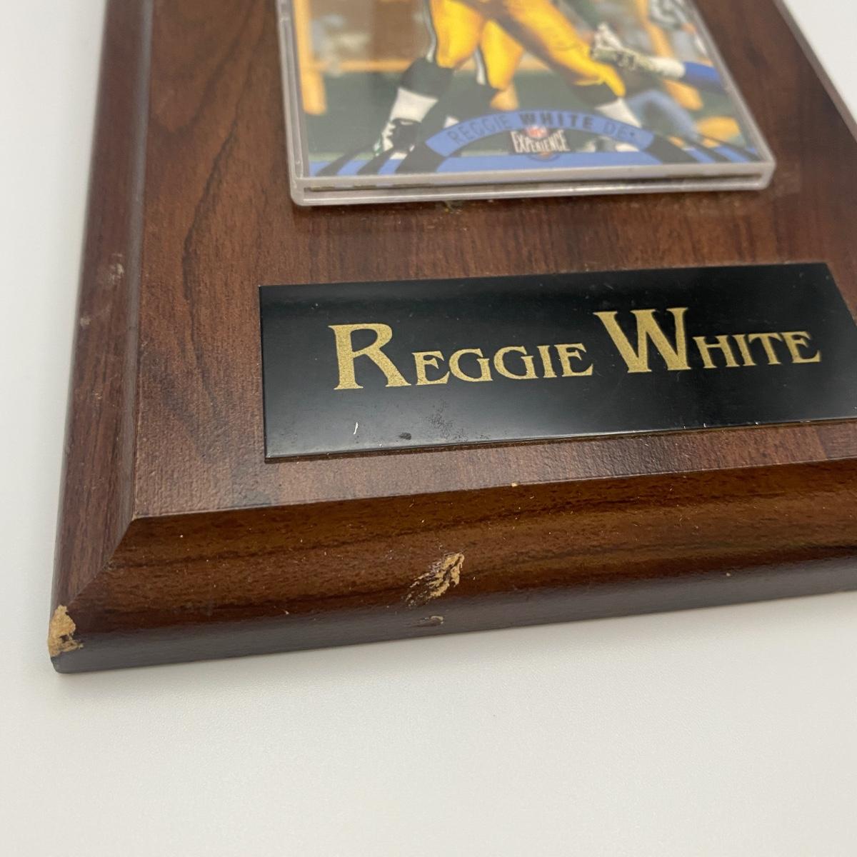 Reggie White collector card and wood plaque and some damage. Please see photos for details and condition. ::: Shipping is available on this lot. If you require shipping you must let us know at the close of the auction. We will coordinate with you after the item has been won. Shipping fees will include insurance up to or exceeding the value of all items being mailed. If you have any questions regarding this lot please contact the auctioneer either via this website, by direct email or by phone. PICK UP TIMES and other important information can be found in the TERMS and DESCRIPTION of the auction. Please take a look for pertinent information. Thanks!