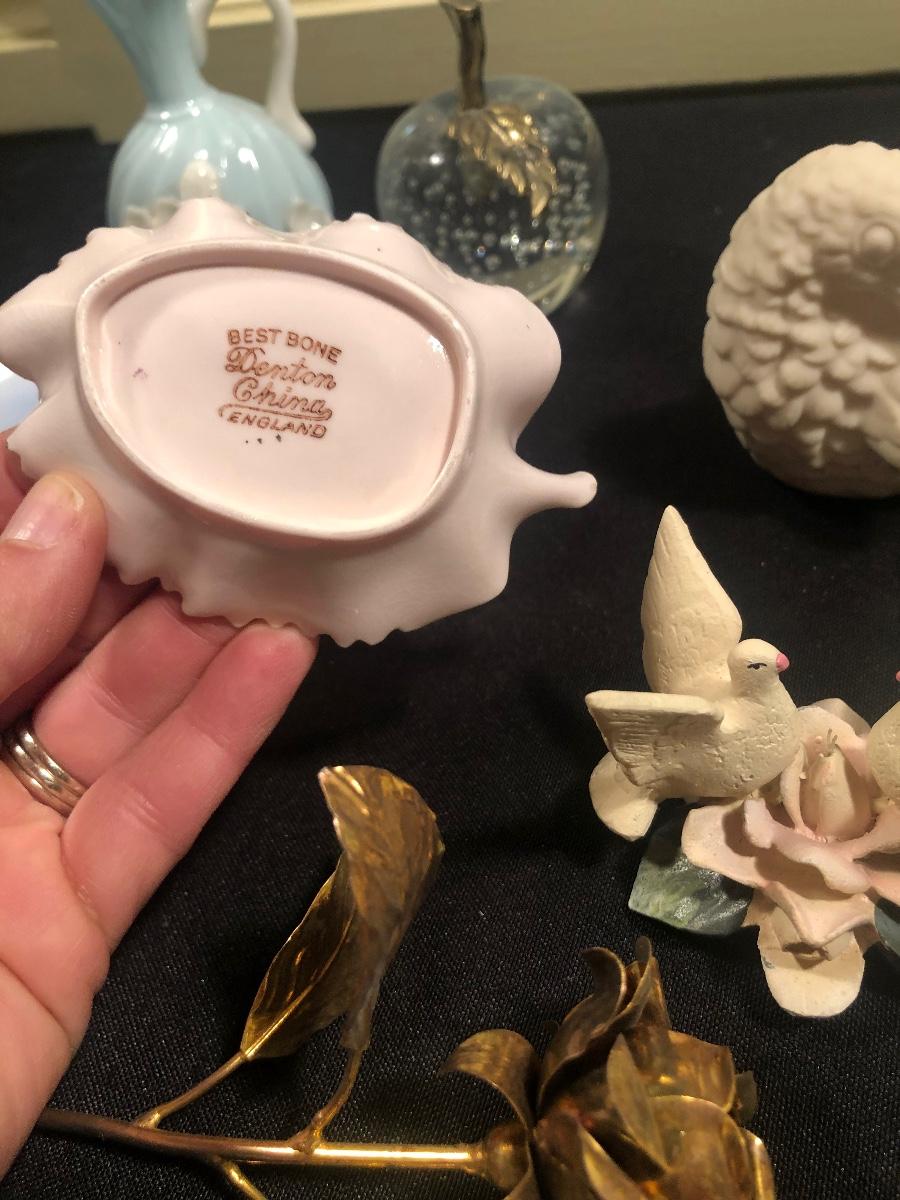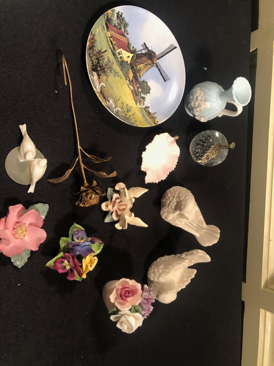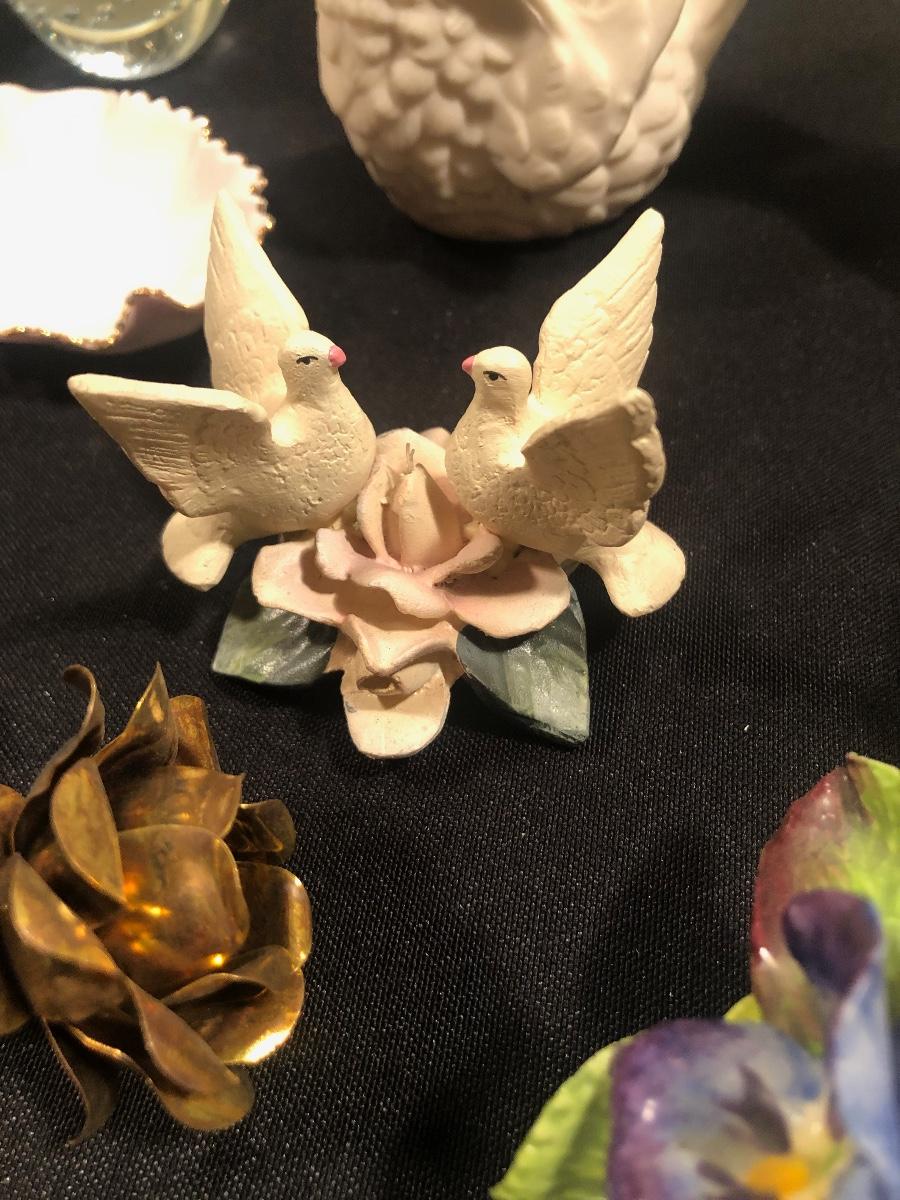 #83 Small bundle of curio cabinet knickknacks doves and flowers