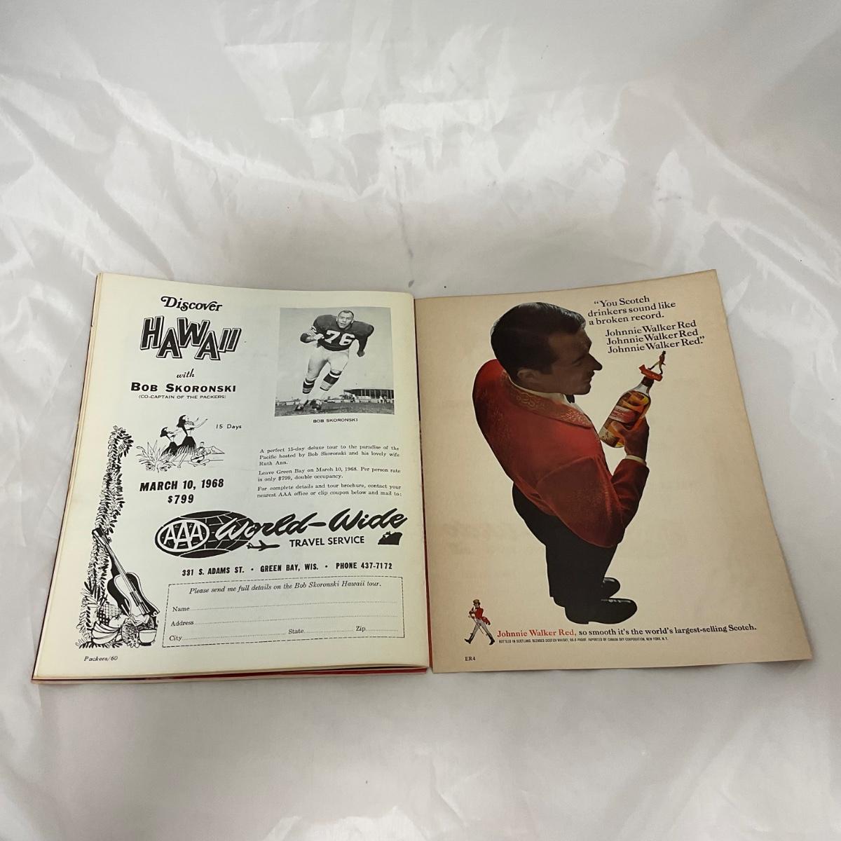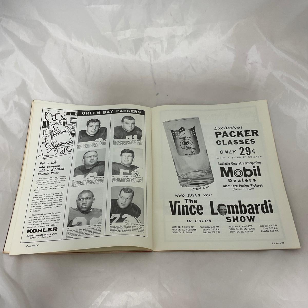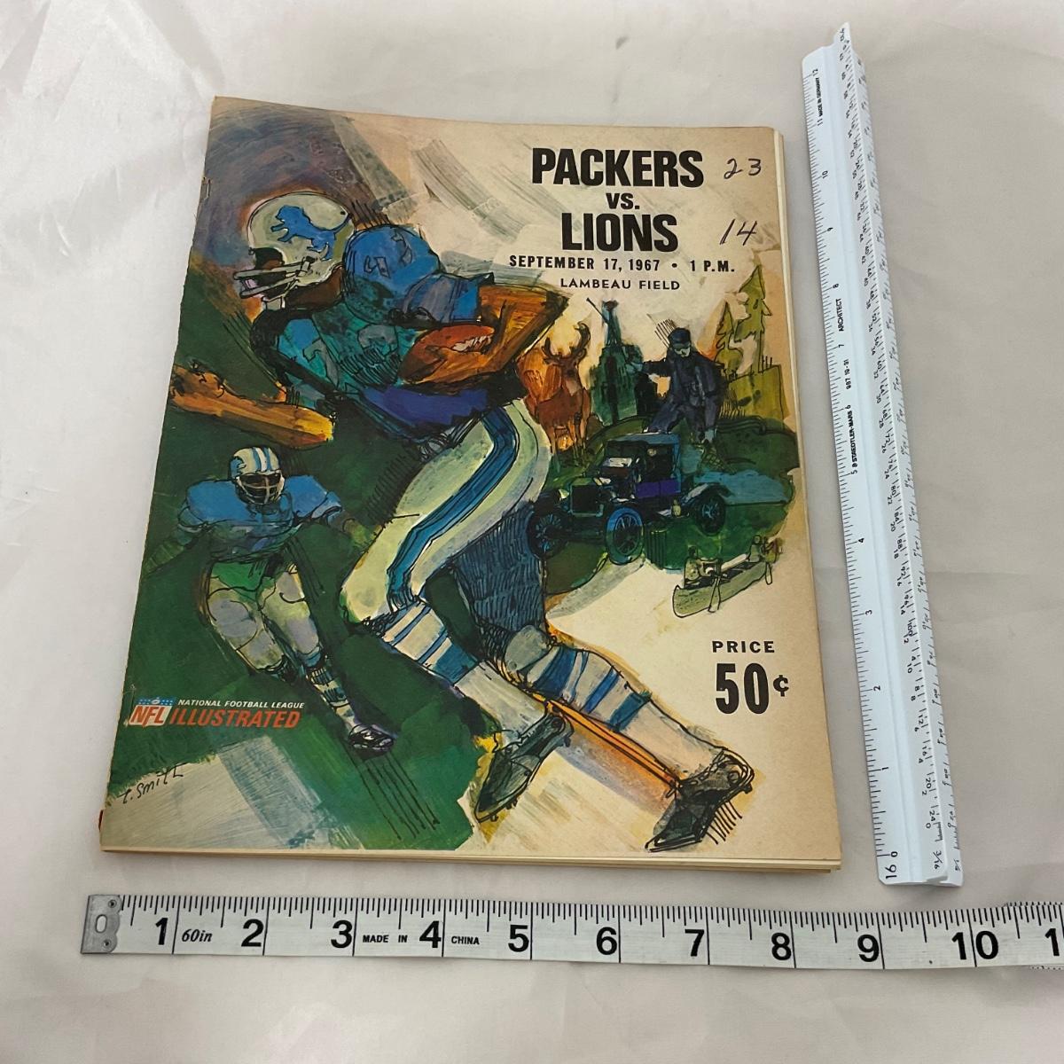 One 1967 Green Bay Packers vs The Lions program. Please see photos for details and condition. ::: Shipping is available on this lot. If you require shipping you must let us know at the close of the auction. We will coordinate with you after the item has been won. Shipping fees will include insurance up to or exceeding the value of all items being mailed. If you have any questions regarding this lot please contact the auctioneer either via this website, by direct email or by phone. PICK UP TIMES and other important information can be found in the TERMS and DESCRIPTION of the auction. Please take a look for pertinent information. Thanks!