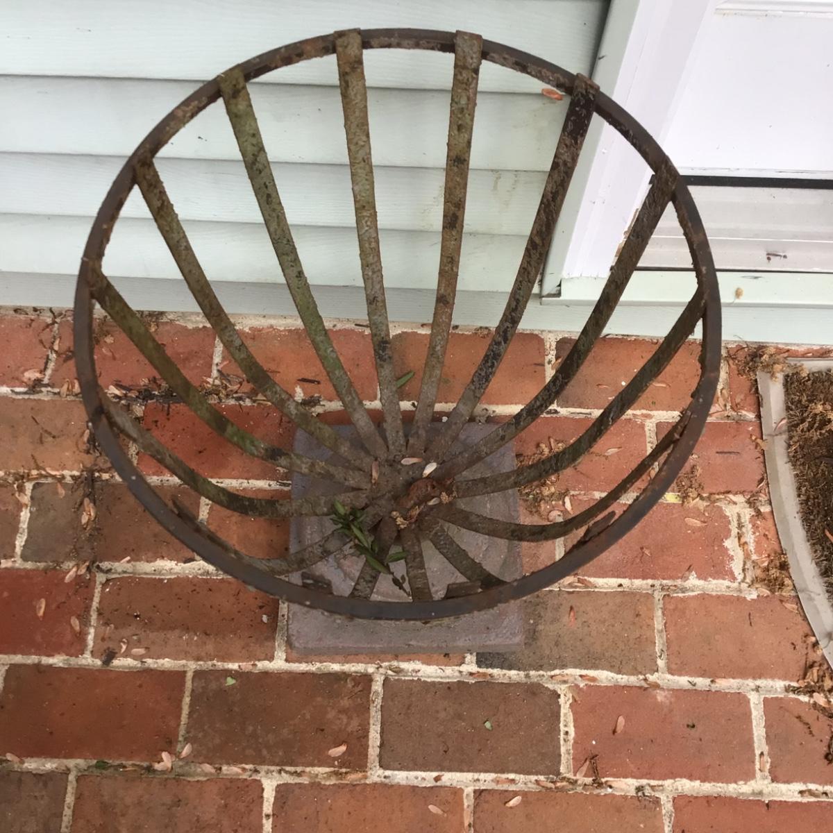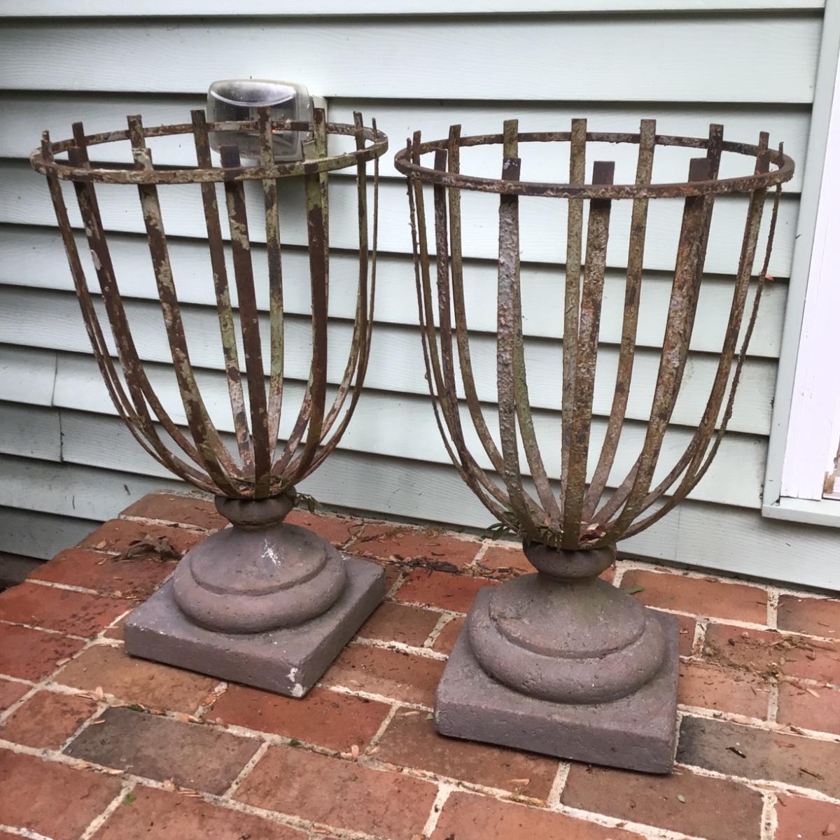 830 Pair of Metal Strap Decorative Urn Container Plant Holder